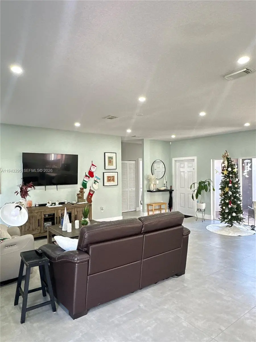 Beautifully maintained single-family home situated on a desirable corner lot in the sought-after Silver Palms community in Miami. This one-story residence offers 4 spacious bedrooms and 2 full bathrooms, ideal for families or buyers seeking comfort and functionality. The home features a large private patio, perfect for outdoor entertaining, future pool potential, or family gatherings, along with a 2-car garage and paved driveway providing ample parking. The kitchen was fully renovated in July 2022, showcasing modern quartz countertops, soft-closing wood cabinets and drawers, and brand-new stainless-steel appliances. The living areas, kitchen, and dining room are enhanced with elegant 24x24 Italian tile flooring, creating a clean and contemporary look throughout the main spaces. Major systems have been well maintained, with the AC replaced in 2019 and the water heater installed earlier this year, offering peace of mind to future owners. Located in a well-kept community with low HOA fees of only $65 per month.