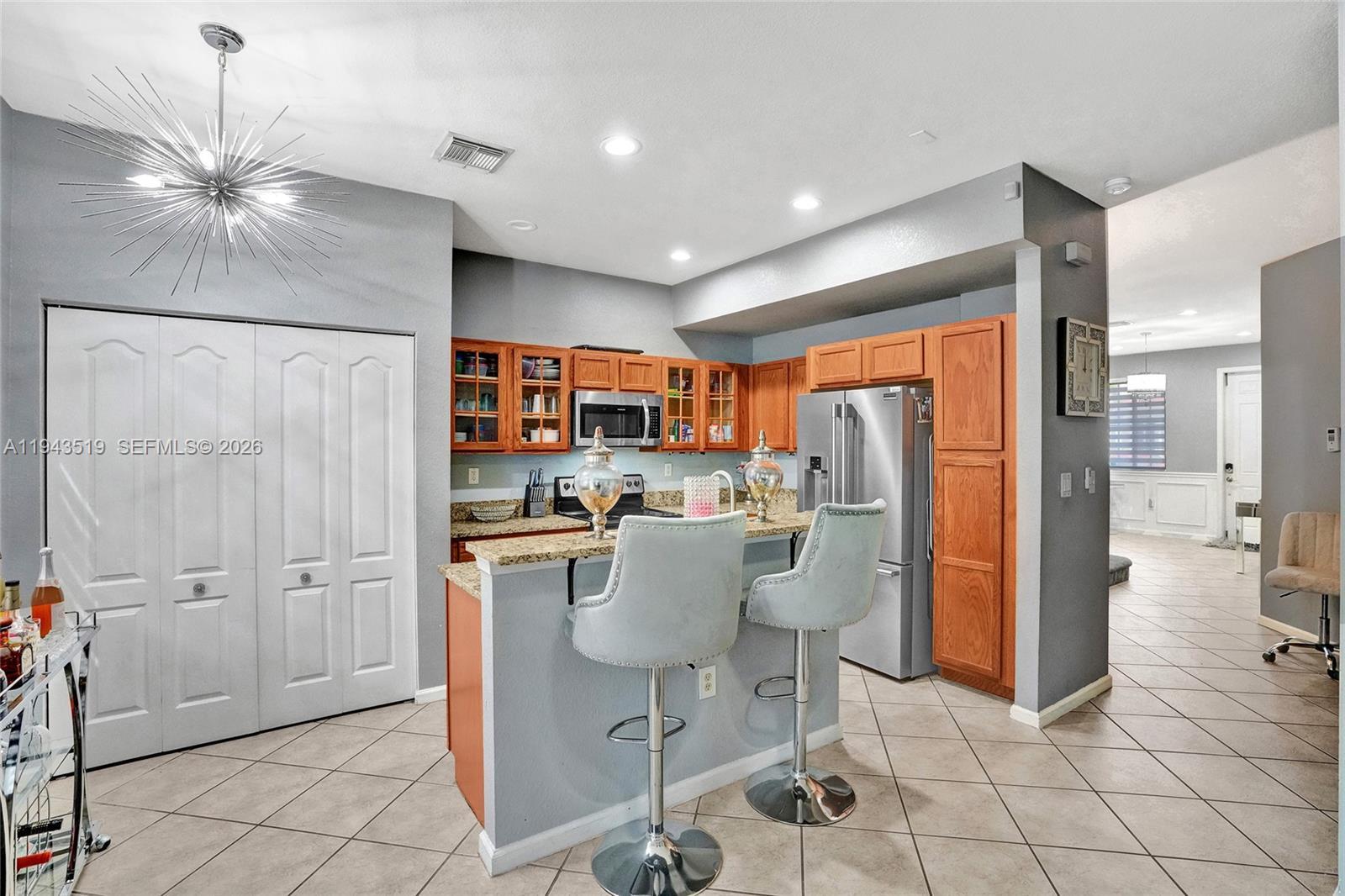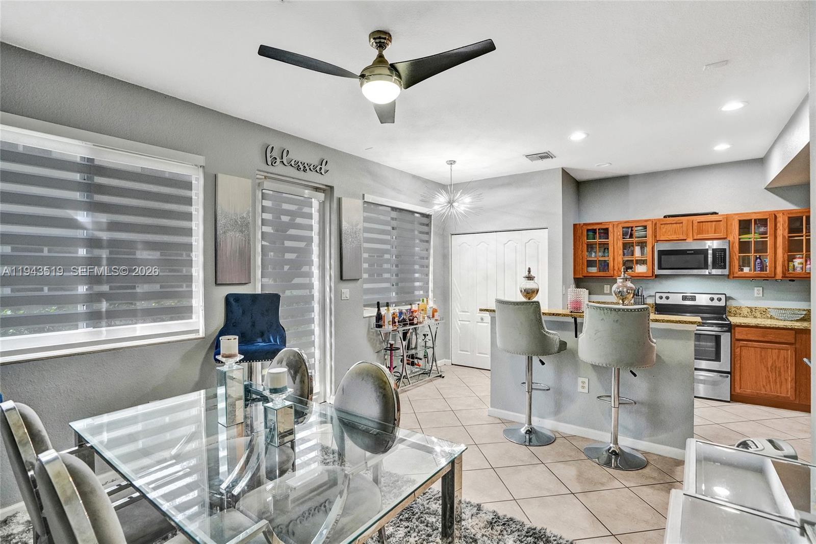 Step into this delightful residence offering a blend of style, comfort, and modern upgrades. The kitchen features elegant granite countertops, S/S appliances, including refrigerator and microwave that are just two years new. Thoughtful embellished décor and zebra shades throughout add a touch of sophistication to every room. Major improvements include a roof and A/C system only two years old, providing peace of mind and long-term value. The property also includes a garage plus two additional parking spaces, a rare convenience in the area. Perfectly situated near the Turnpike, Calder Casino, Hard Rock Stadium, shopping, parks, schools, and major highways. This home delivers exceptional accessibility while maintaining a peaceful community feel. A wonderful opportunity to own a beautifully updated home in a prime location. Text Listing Agent for showing instructions.