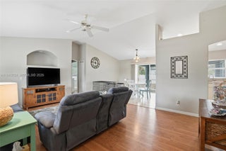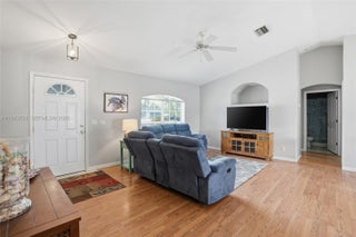 Welcome home to this move-in ready North Port gem offering comfort, space, and value. Built in 2004 and situated on a .2296-acre lot, this well-maintained home is ideal for first-time buyers, downsizers, or investors seeking rental potential. Inside, enjoy a bright, open layout with arched windows, vaulted ceilings, and abundant natural light. The family room flows seamlessly into the kitchen and dining areas, perfect for everyday living and entertaining. Laminate flooring enhances the main living spaces, with ceramic tile in the kitchen and baths. The kitchen features ample cabinetry, counter space, and a pantry. A spacious laundry room with shelving and a utility tub adds convenience. The home offers three bedrooms and two full baths, including a primary suite with a walk-in closet and private en-suite bath. Outside, enjoy the newly fenced backyard, new outdoor storage building, and a covered, screened lanai ideal for relaxing or entertaining. Additional features include a two-car attached garage and a new well pump. Located on a quiet street just minutes from US 41, shopping, dining, beaches, and all that Southwest Florida has to offer. Priced to sell and ready for immediate occupancy—schedule your showing today!