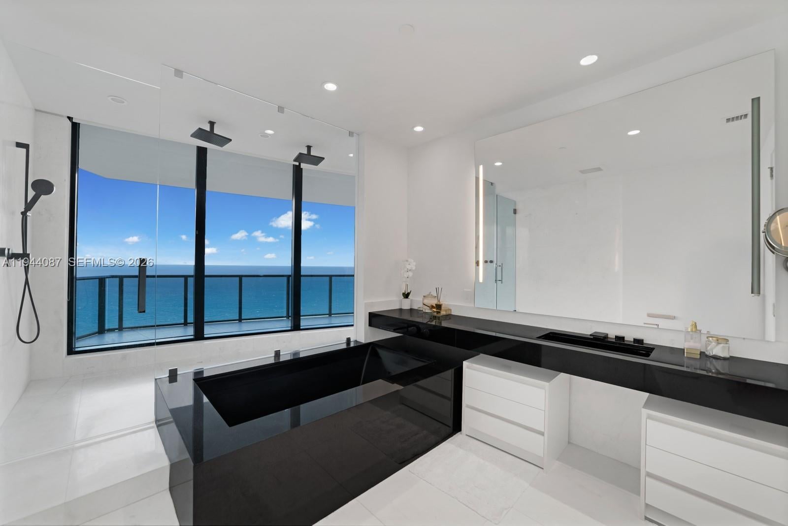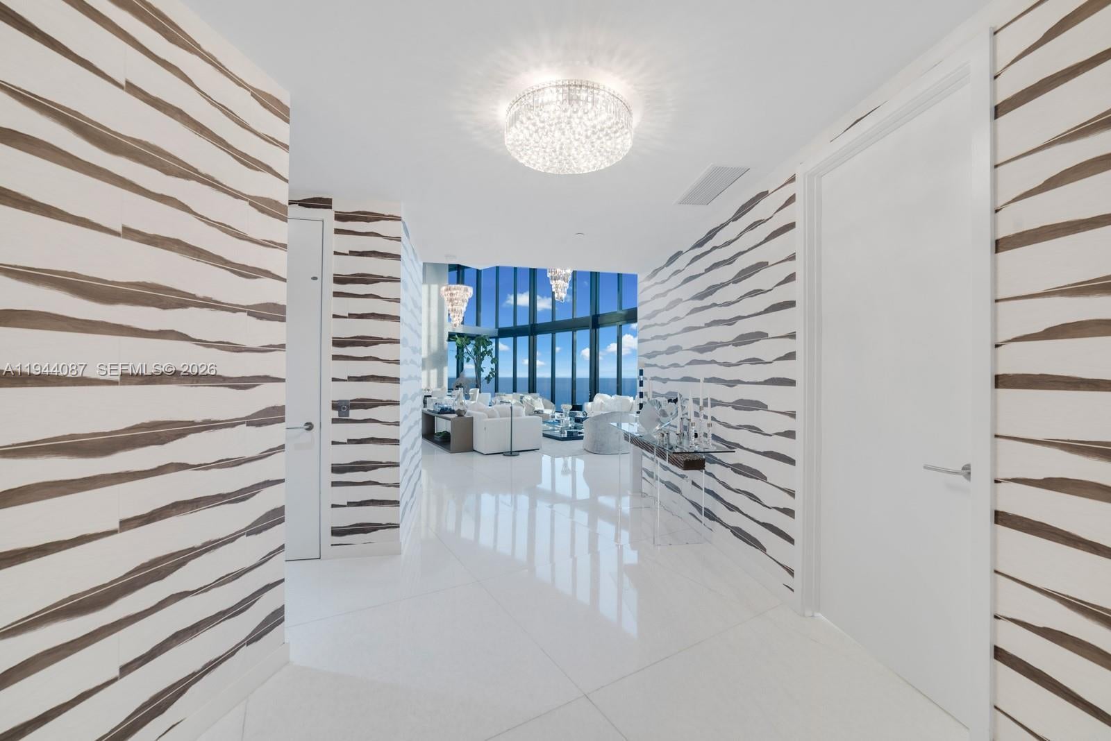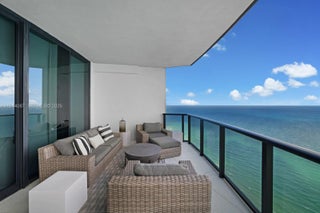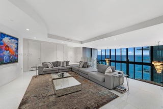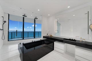 Porsche Penthouse 5201 is a true mansion in the sky offering oceanfront luxury, elegance, and sophistication. This extraordinary two-story residence features 4 bedrooms and 5.5 bathrooms across over 6,100 SF, with an open layout and dramatic 21-foot floor-to-ceiling windows showcasing breathtaking ocean views. Interiors include white marble floors, designer finishes, and two grand chandeliers. Car enthusiasts will love the elevated private 4-car garage with direct access via the iconic Dezervator car elevator. Two expansive terraces offer a private jacuzzi on the balcony, summer kitchen, and lounge areas. Residents enjoy exclusive access to a private beach, pool, spa, private restaurant with room service, pool service, beach service, car simulator, sports simulator, movie theatre, private party room, beauty salon, Vichy shower, cold plunge, concierge, car concierge and curated social events.