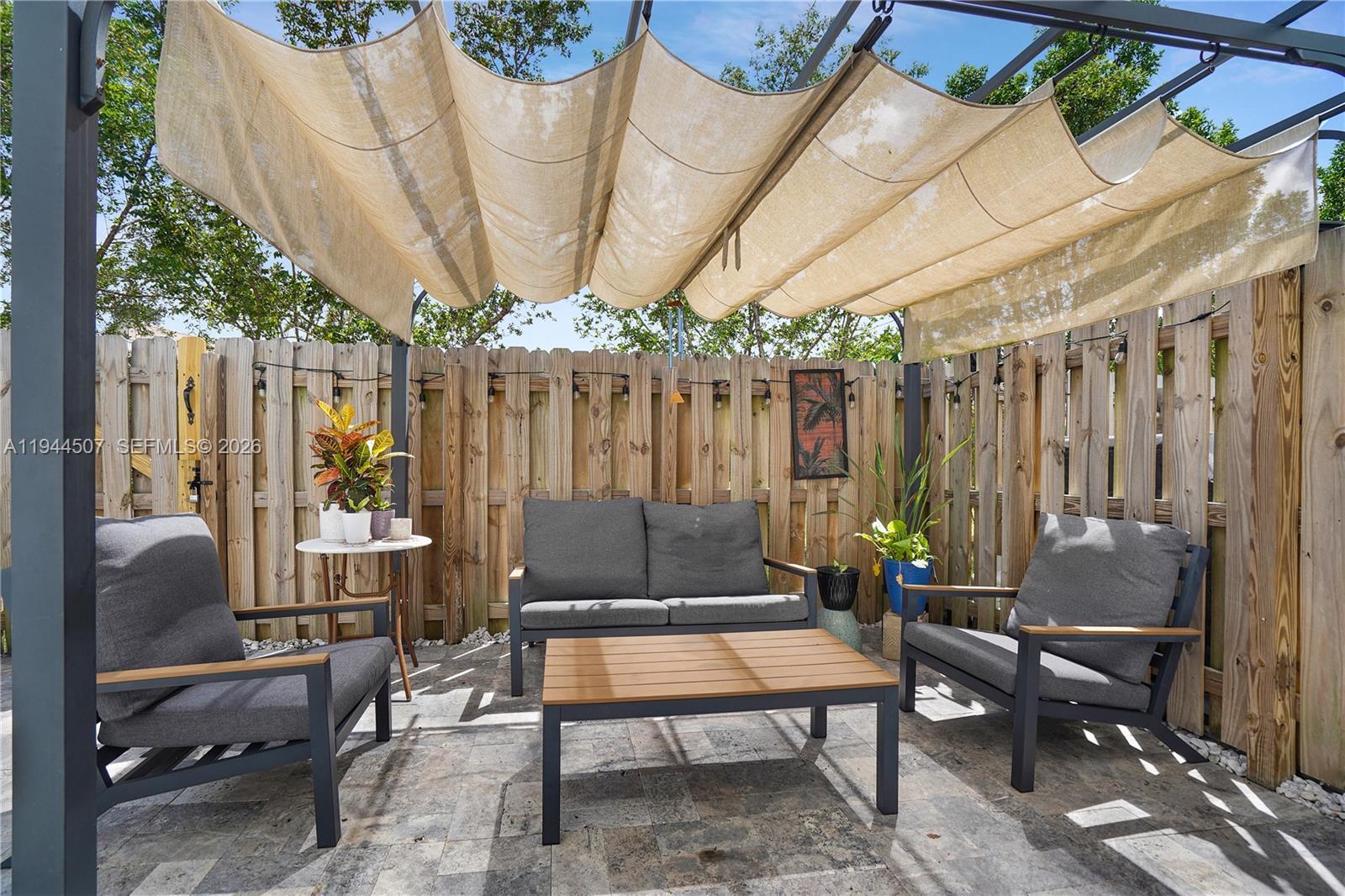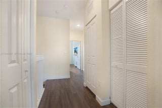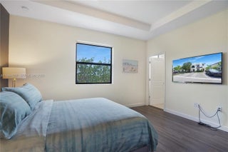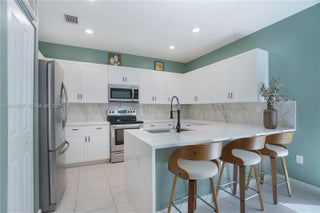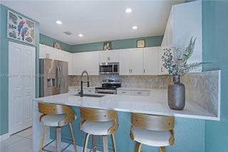 Modern townhouse in the newly developed Paseos at Via Ventura community. This property features a covered entry, second-floor balcony, and a smart home system with many upgrades, including quartz countertops, porcelain backsplash, tile and laminate flooring, remote-controlled window shades, and stainless steel appliances. The private backyard is paved and fenced. Inside, the home showcases elegant wood laminate stairs and floors. With 3 bedrooms, 2.5 bathrooms, a spacious layout, . Prime location near Brightline station, Sunny Isles Beach, Aventura Mall, airports and Stadium. The Lakeview Clubhouse features a pool, jacuzzi, exercises room, playground.