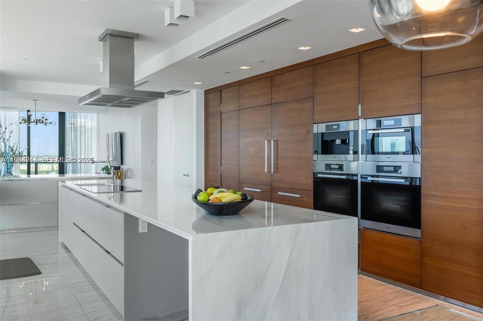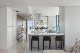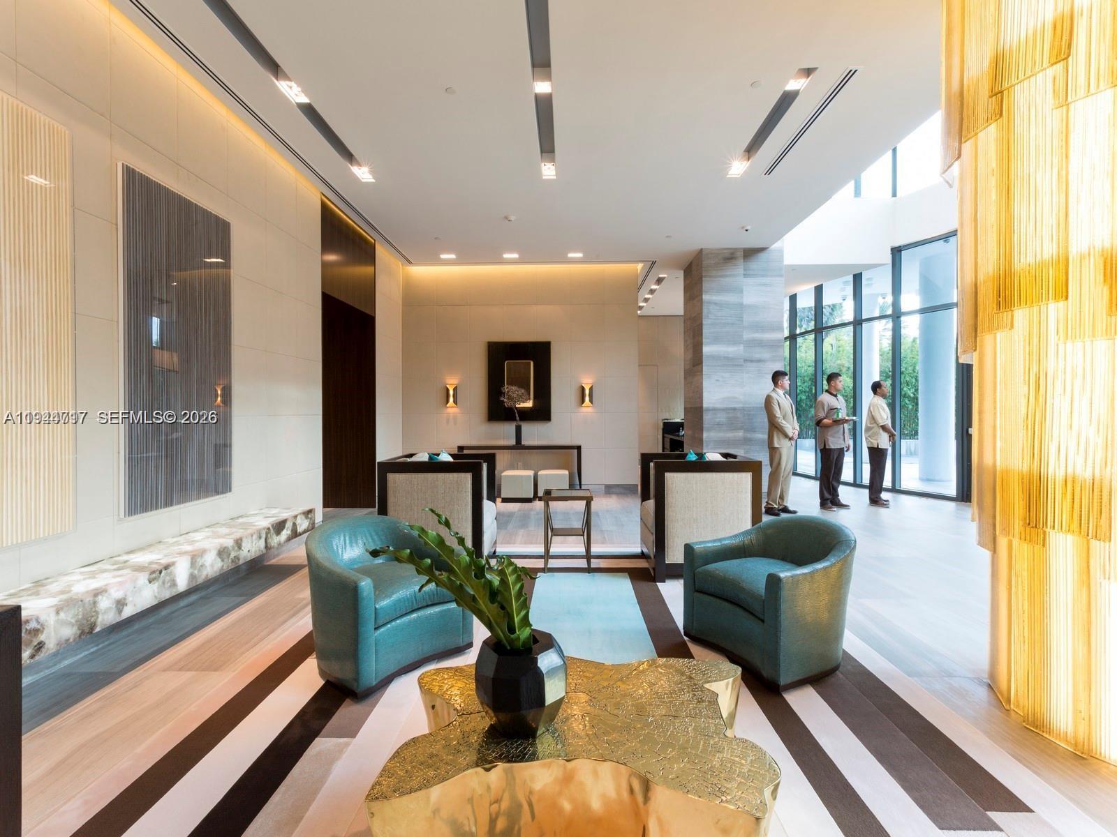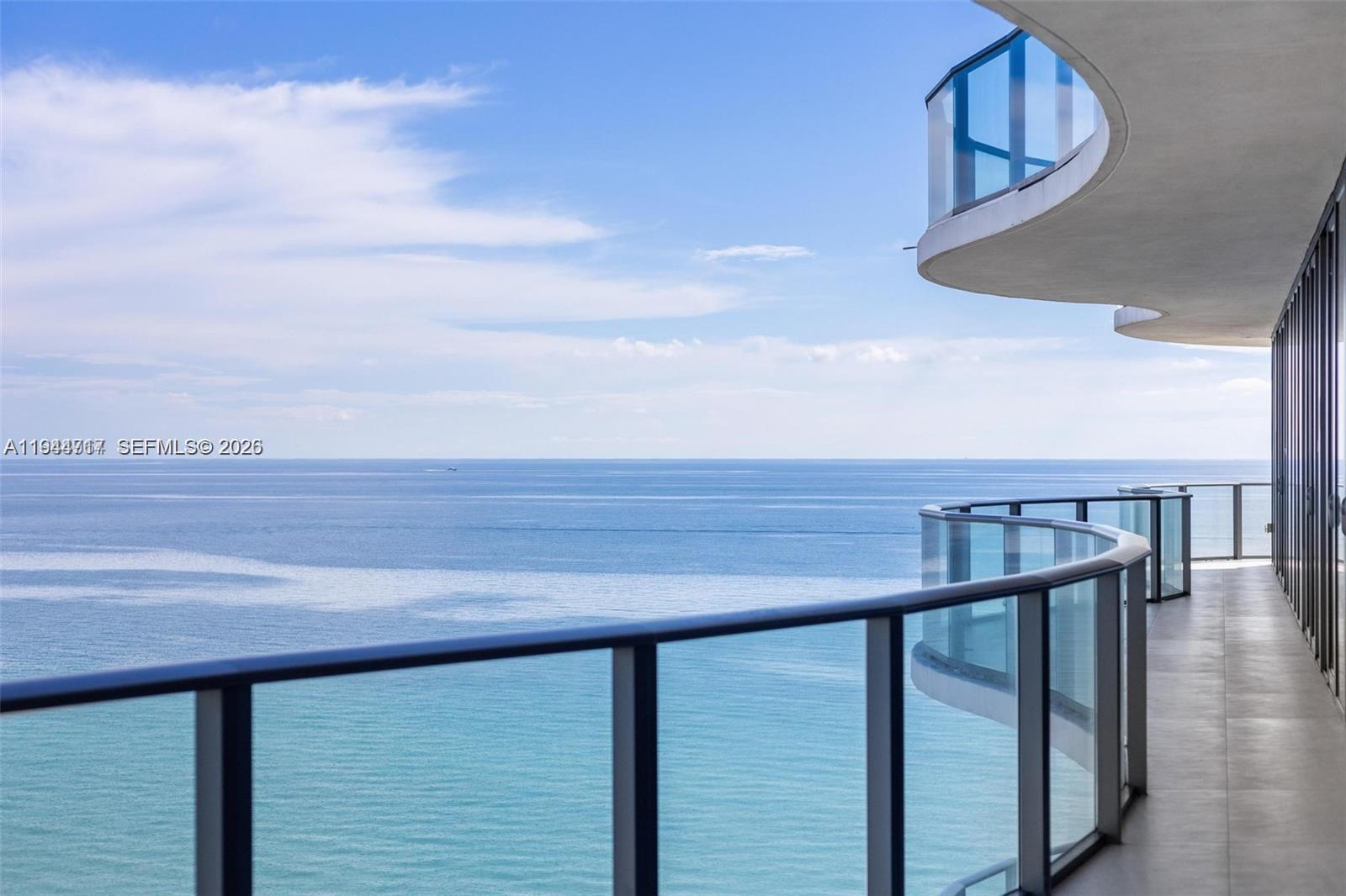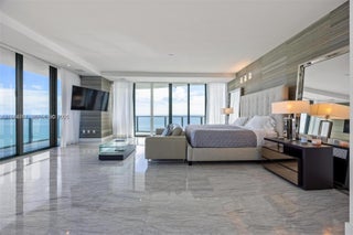 Award-winning, full-floor oceanfront residence at Regalia, offering the privacy and scale of a private home with the services of a boutique luxury condominium. Accessed via a private elevator, this all-glass residence features approximately 5,000 SF of interior living space and a 2,100 SF wraparound terrace with breathtaking 360 degree views of the Atlantic Ocean, Golden Beach, the Intracoastal Waterway, and the Miami skyline. Designed for entertaining, the expansive living and dining areas are wrapped in 10-ft floor-to-ceiling glass, filling the home with natural light and uninterrupted ocean vistas. Every room enjoys direct terrace access, creating seamless indoor-outdoor living throughout. The residence has been fully reimagined with no expense spared, showcasing grey and marble slab finishes, integrated smart lighting and automated window treatments. The chef’s kitchen features custom Italian cabinetry, exotic stone countertops, and top-of-the-line Gaggenau appliances, complemented by a summer kitchen with barbecue on the terrace. The primary suite is a private retreat with dual spa-style marble bathrooms, rain showers, soaking tub, and generous custom closets. Offered fully furnished & curated by Artefacto. Regalia offers full-service luxury amenities, including beach and pool service with cabanas, concierge, spa, fitness and yoga studios, private wine cellar, business center, library, and children’s playroom—delivering an exceptional oceanfront lifestyle.