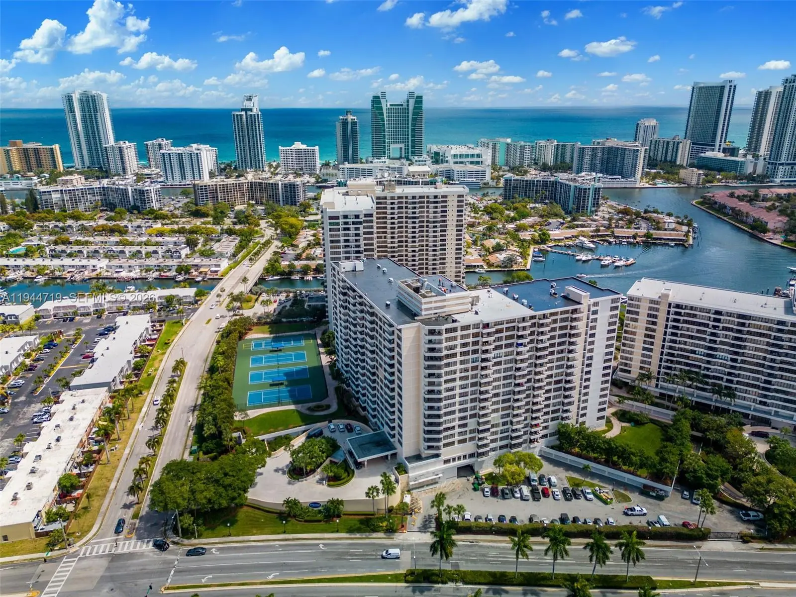 Location! Renovated 2BD/2BA condo with open park and sunset views in the heart of Three Islands. Ideal for primary residence, second home or investment, just minutes from the beach, Joseph Scavo park and shopping plazas. Renovated in 2021. Features two walk-in closets and is partially furnished (furnishings negotiable). Resort-style amenities include fitness center, marina, heated pools, tennis courts, BBQ area, sauna, shuttle bus, and walking paths. Assigned parking and storage included. Income-producing property. Tenant occupied until 09/30/2026.