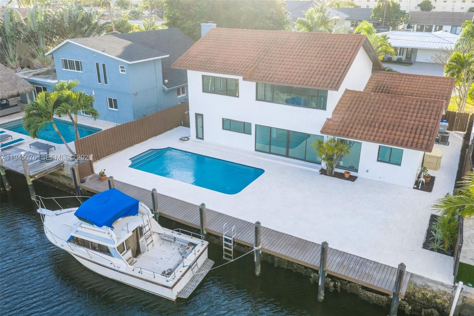 Stunning fully remodeled waterfront home in desirable Snug Harbor with ocean access via canal (1 fixed bridge – Federal Hwy). Located on a quiet dead-end street with no HOA. This move-in-ready residence features a modern open-concept layout with vaulted ceilings, brand new chef’s kitchen with granite countertops, new flooring throughout, and fully renovated spa-style bathrooms. Impact windows and doors provide security and energy efficiency. Enjoy true South Florida waterfront living with a 70' waterfrontage, and direct access to the Intracoastal and ocean. Private backyard oasis includes a resort-style pool and new pavers. Additional features include a stone-coated steel roof , office on main level, spacious primary suite with loft, walk-in closet, and 2 car garage. Conveniently located near beaches, dining, shopping, and major highways. A rare opportunity to own a turnkey waterfront home.