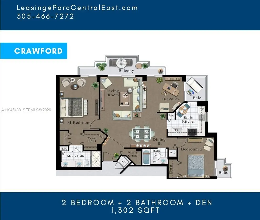- 2 Bed, 2 Bath, 1,180 SqFt