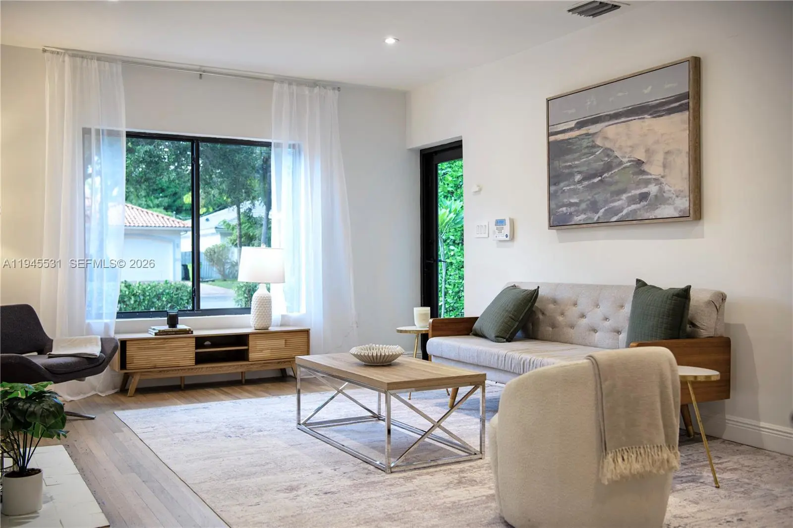 If you’re looking for the best value in El Portal, this MUST SEE home checks all the boxes! Welcome to The Astor. This smartly priced three bedroom-two bathroom designer home lives large and packs a big punch. Enter into the grand open flow plan, with two separate generous living areas, dedicated dining room, and spacious open eat-in kitchen, all opening to rear entertainment patios and expansive lush gardens. Sweet dreams await in the primary ensuite with walk-in closet, tucked away from guest rooms for extra privacy. Great features: re-finished gorgeous hardwood floors; impact windows-doors; newer kitchen; modern baths; updated electrical-plumbing; and newer AC. All in a fantastic non-flood zone location with a one-car garage, abutting El Portal’s renowned Sherwood Forest bird sanctuary.