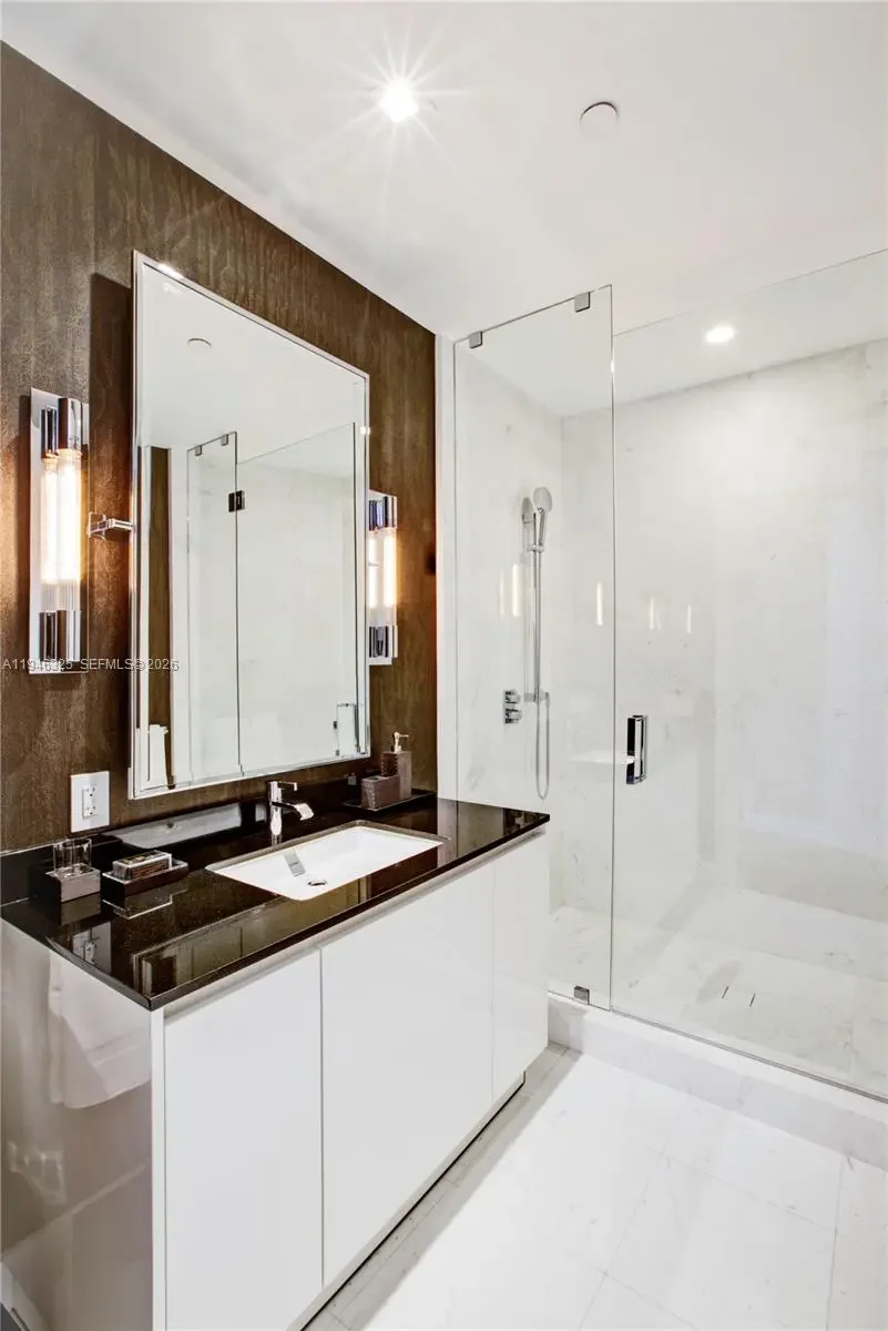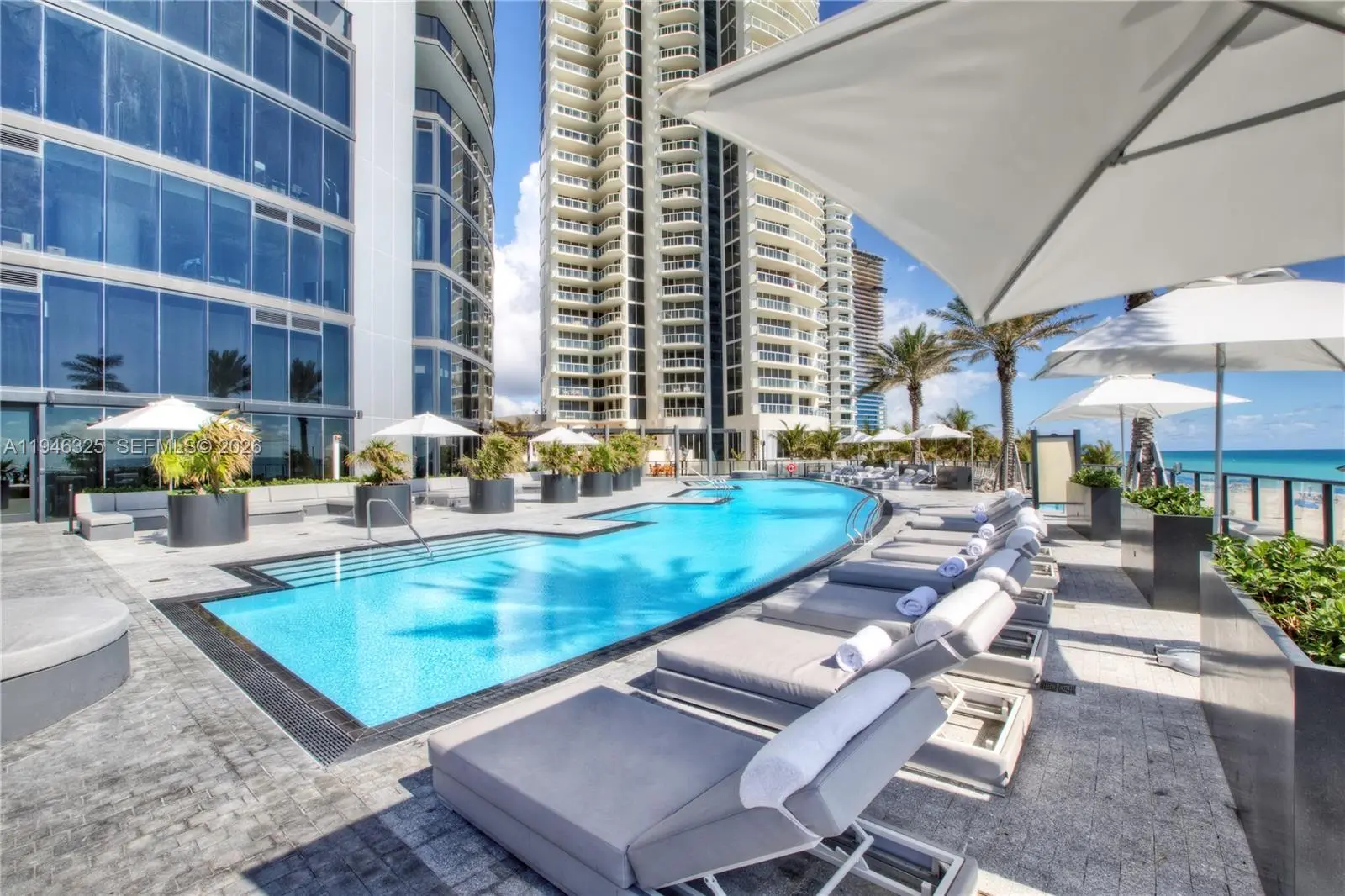 Ascend effortlessly with your vehicle directly to your private two-car sky garage where a realm of ultra-luxury coastal living awaits. Offering both Ocean and City views this exclusive 3 bed/4.5 bath residences is truly a designer masterpiece with elegantly outfitted RH furnishings and fixtures, stunning oversized Italian porcelain floors and bespoke finishes such as custom wood & mirror panelings, a one of a kind built-in fireplace and TV unit with a motorized lift ensuring uninterrupted ocean views, a sleek black carbon fiber kitchen, tailored linen curtains as well as black out blinds both on remotes and recessed lighting in every room, top line appliances, Toto toilets, maids quarters, laundry room with tub, walk in closets, separate freezer & fridge, wine cooler, double oven, and storage room. While exterior features allow you to immerse yourself in panoramic ocean views on a private balcony with a heated pool, summer kitchen, and glass enclosed outdoor dining. Indulge in exclusive amenities: oceanfront gym & weekly classes, private theater, multi-sport & race car simulators, billiards room, spa & treatment rooms, hair salon, oceanfront & sundeck pools, private restaurant that caters anywhere on premises, lobby bar & lounge, private wine storage, concierge and more. Each detail exudes a sophisticated elegance that defines a truly unparalleled lifestyle and is fully equipped with every living necessity so you can move in seamlessly and enjoy complete peace of mind.