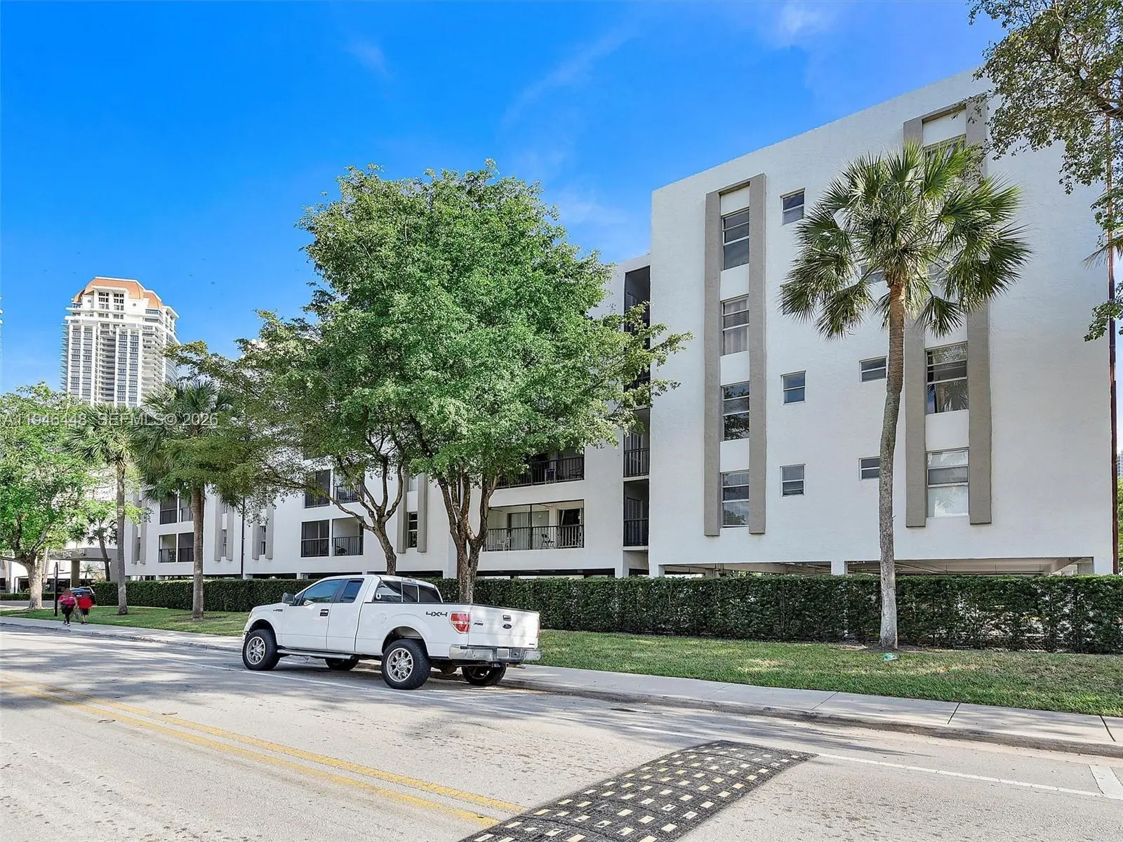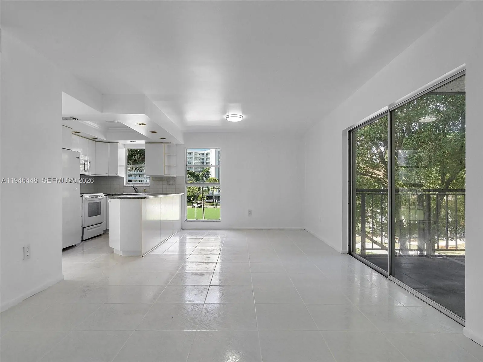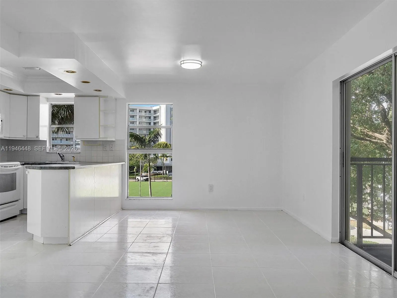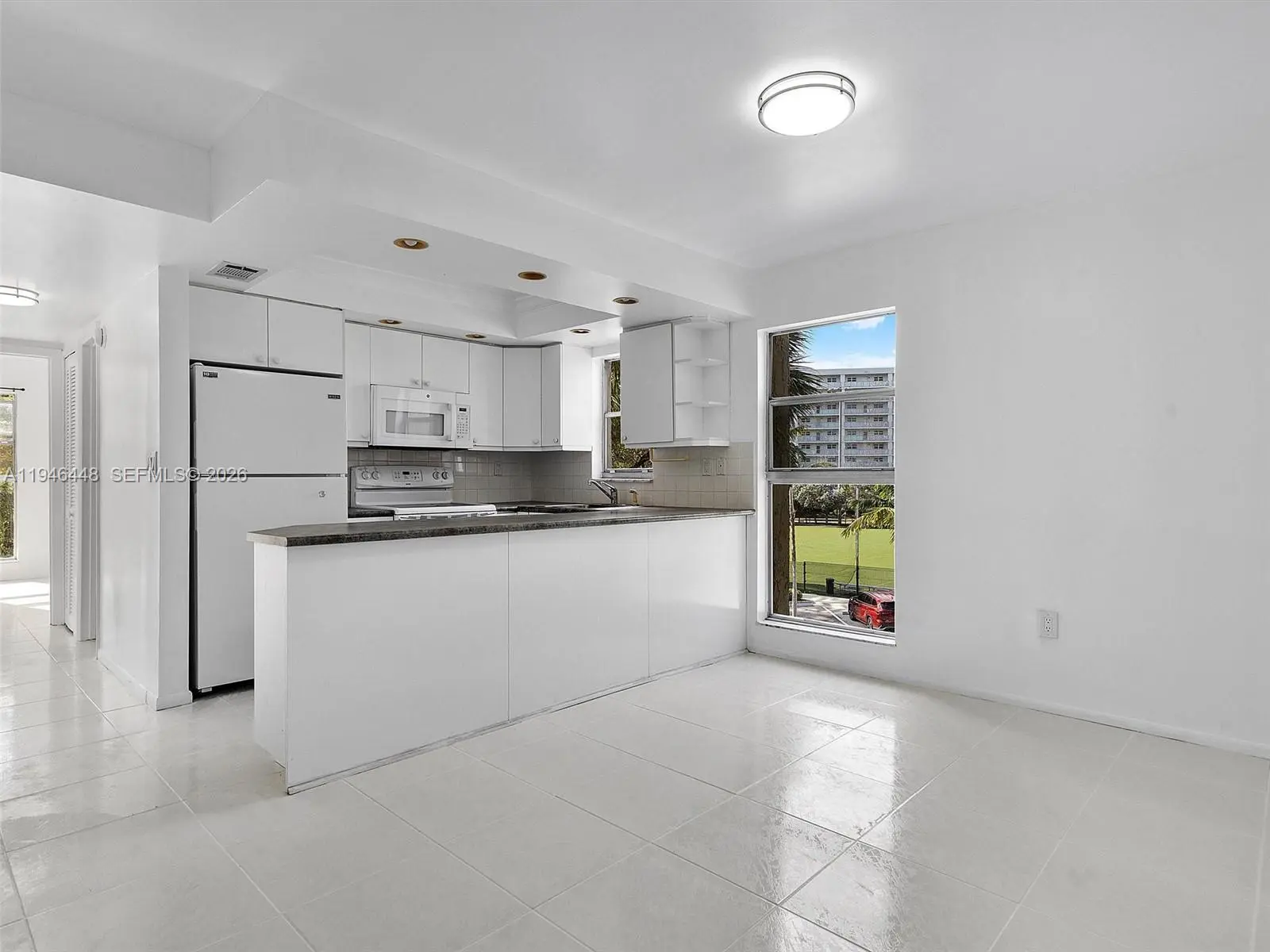 Beautiful corner 2 bedroom 2 bath condo with all white tile floors, just painted, spacious balcony with storage closet! Walk in closet in primary bdrm, open floor plan. Right across the street from Sunny Isles Park with big field. Good credit & copy of pay stubs. Easy to show.