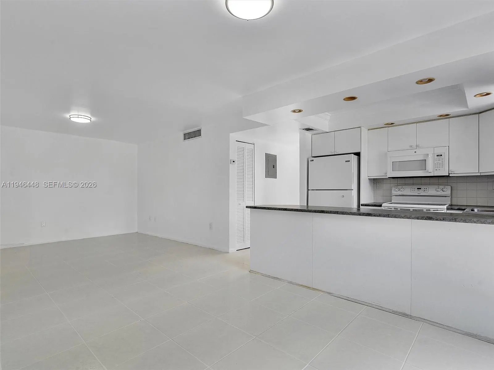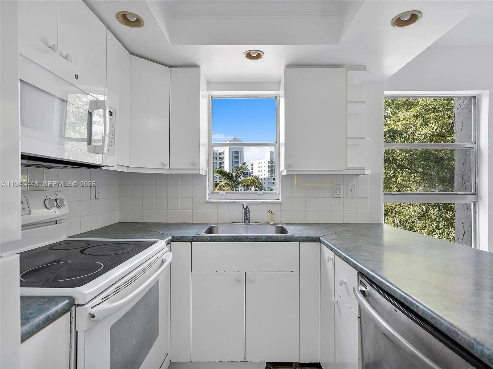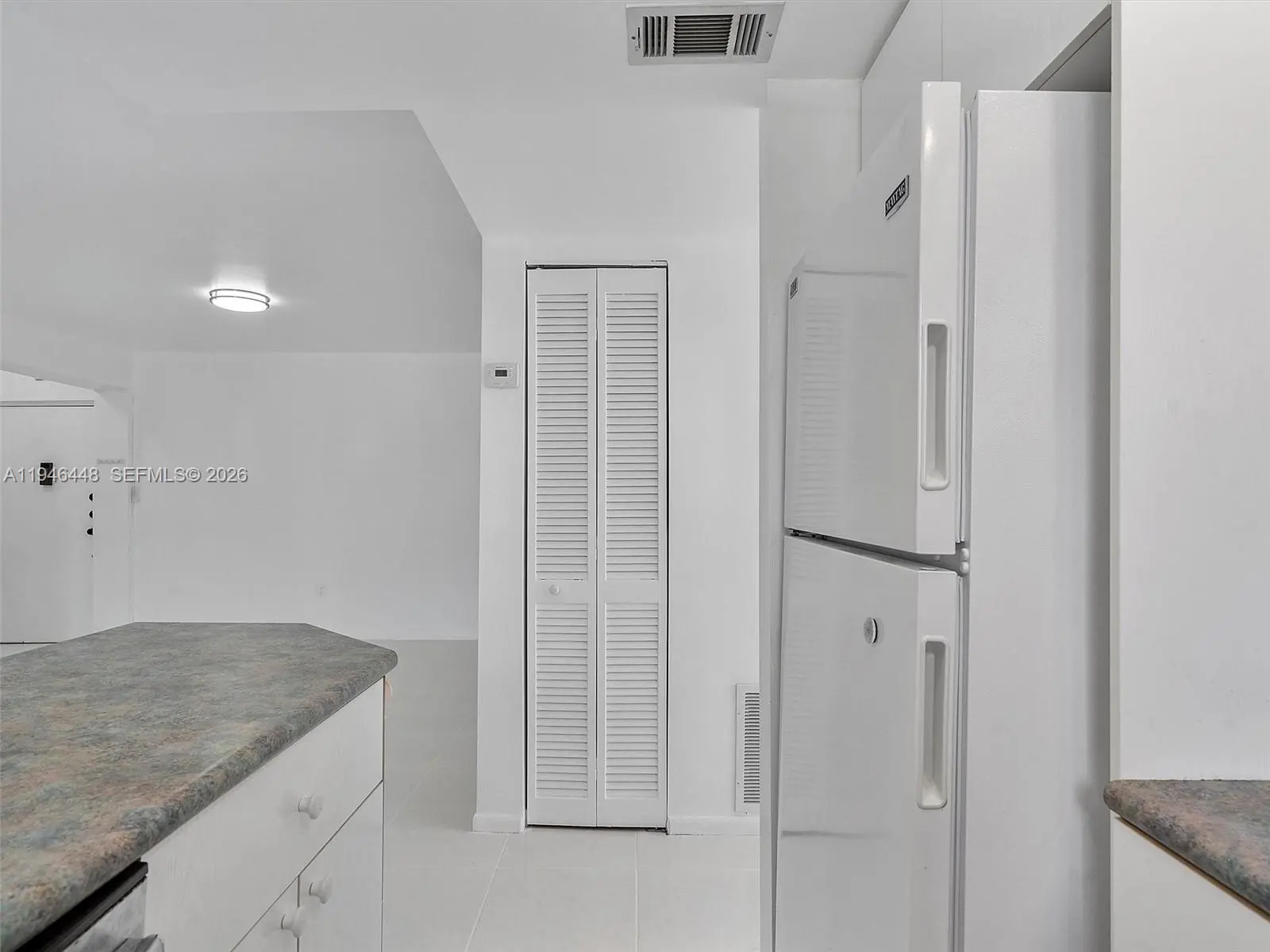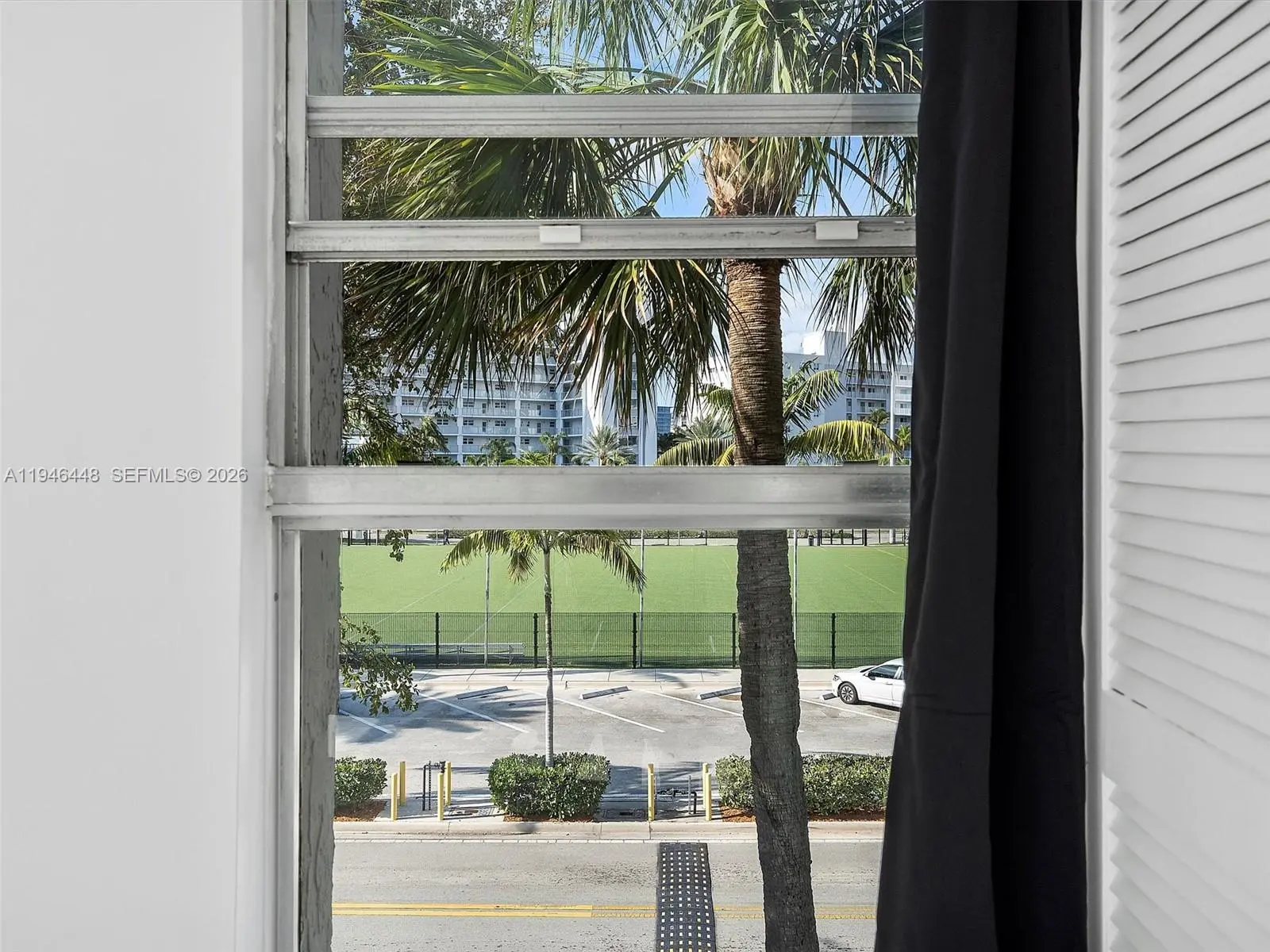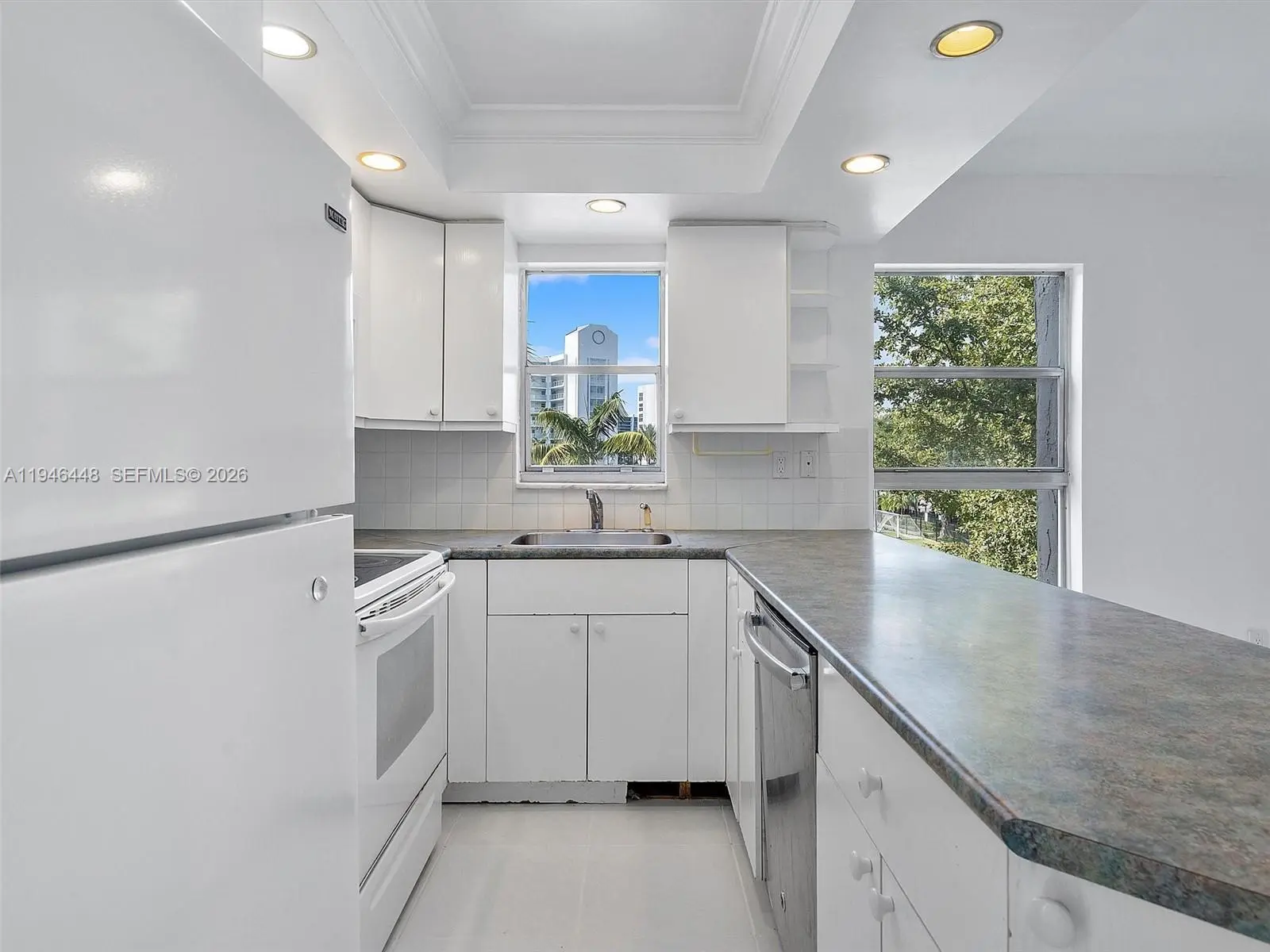 Beautiful corner 2 bedroom 2 bath condo with all white tile floors, just painted, spacious balcony with storage closet! Walk in closet in primary bdrm, open floor plan. Right across the street from Sunny Isles Park with big field. Good credit & copy of pay stubs. Easy to show.