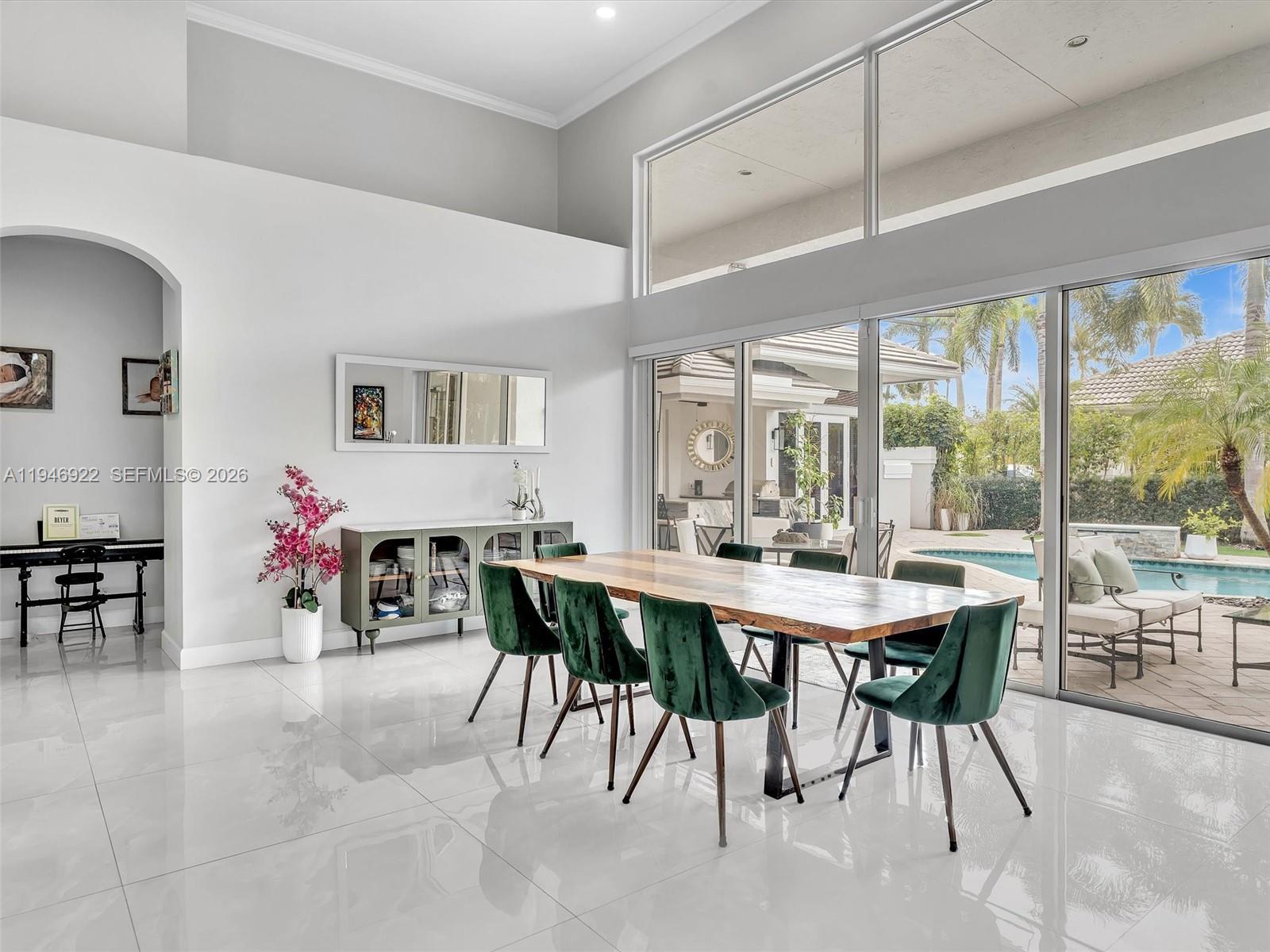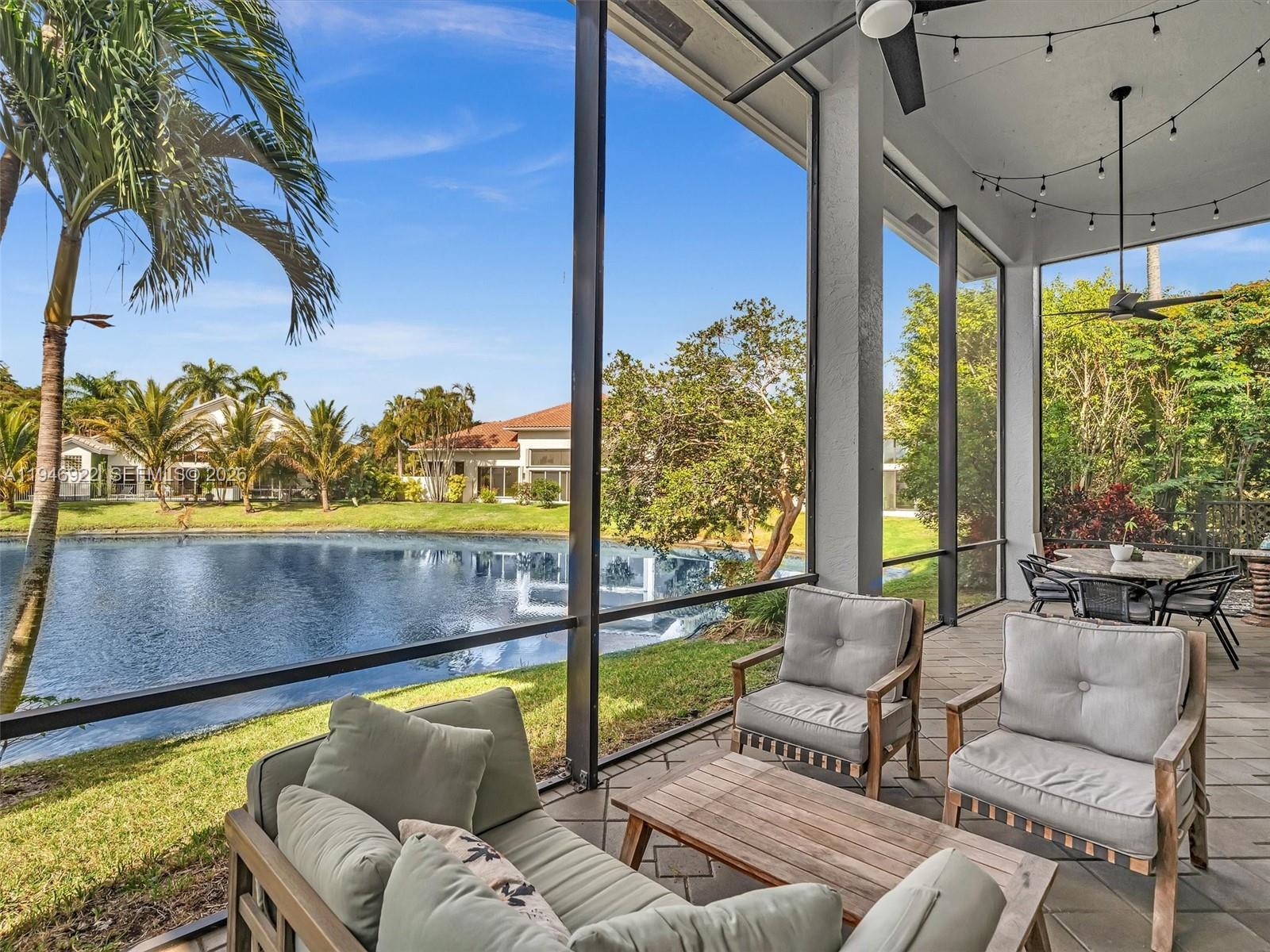 Magnificent one-story courtyard waterfront home in the exclusive gated community of Seasons, located in Central Boca Raton. Key features of the property include: Design & Interior: Soaring 16.5" ceilings, abundant natural light, smooth walls and ceilings, large 4x4 porcelain tile flooring. Layout: 4 bedrooms, 4 full en-suite baths, plus a half bath in the main house. Kitchen: A fully updated chef's dream kitchen featuring quartz countertops, a huge island, modern cabinetry, stainless steel appliances, and an induction cooktop. Exterior & Amenities: A 2-car garage, circular driveway, a saltwater pool ( resurfaced with new LED lightening and waterfall) flat tile 2020 roof, and updated AC units ( 2025, 2018, 2018) Community Amenities at Seasons: Seasons is a luxurious 24-hour gated community without equity membership. Residents have access to a newly renovated state-of-the-art fitness center, a heated resort style swimming pool, basketball courts, a spectacular playground, 8 Har-Tru tennis courts, an -n-site tennis pro, and a pro-shop. School Zoning: The community is zoned for A-rated Boca Schools: Calusa, Omni and Spanish River. It is also conveniently located near top private schools: Pine Crest, Saint Andrews, American Heritage and Donna Klein.