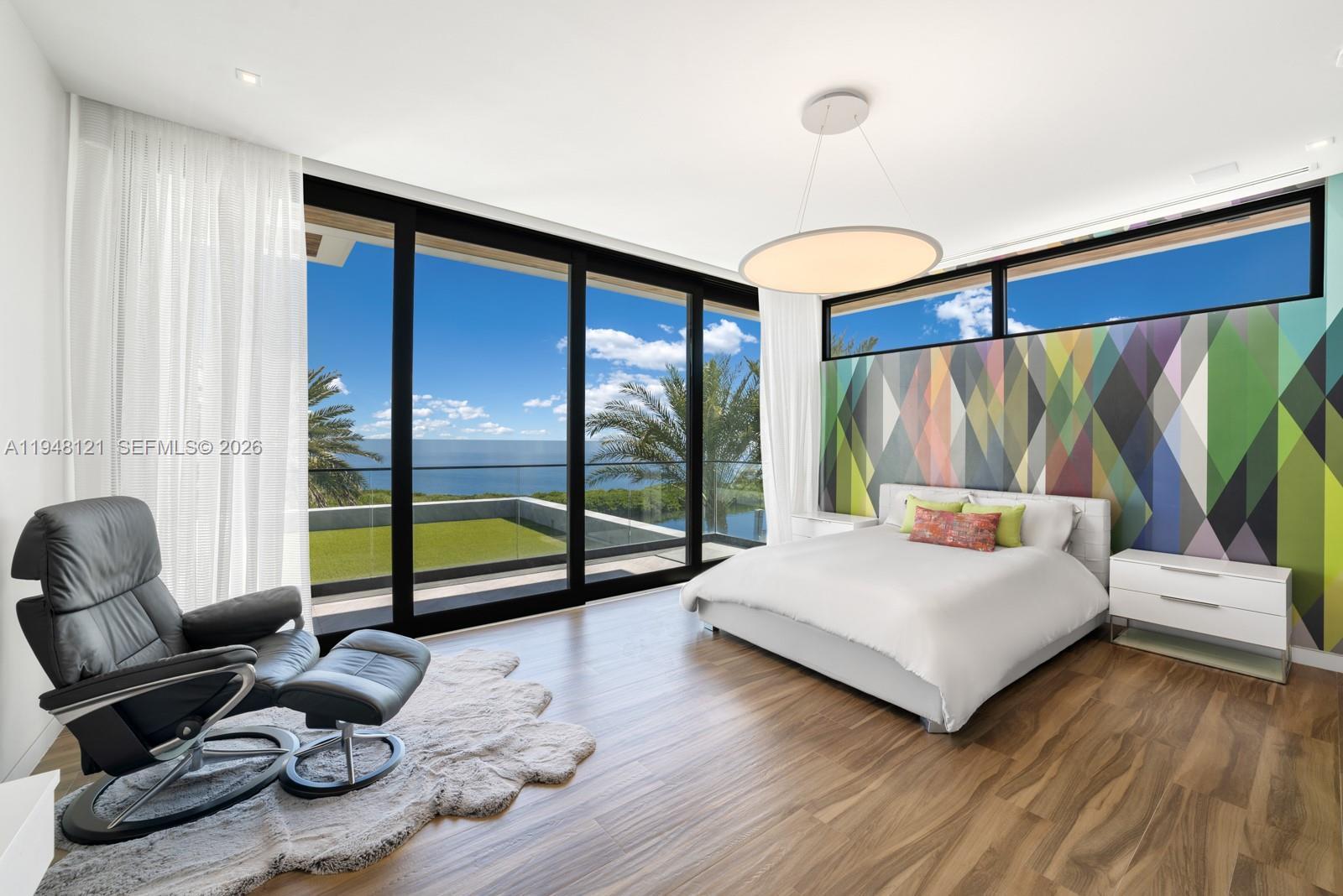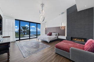 Spectacular bayfront modern family home on a rare corner-point lot with 300 feet of prime waterfront in an unbeatable location. This chic family home is perfect for entertaining, featuring a resort-style pool and spa, a built-in BBQ, fire pit lounge, outdoor kitchen, expansive waterfront terraces, and a basketball or volleyball court by the water, creating a one-of-a-kind backdrop for both relaxation and play. The property features two private docks, one accommodating over 100' boat, another with a 30,000 lb boat lift, and effortless access to Biscayne Bay and the open ocean. Inside, the home offers a gourmet kitchen with a huge island and a large waterfront-facing area for casual meals. The butler's pantry, formal dining room, and temperature-controlled custom wine wall are perfect for entertaining. There are seven bedrooms and 8.5 baths, filled with natural light and clean contemporary design. Five bedrooms are upstairs, each with a private bath, walk-in closet, and covered terrace overlooking the water. The primary bedroom and bath have fantastic views of the bay, and the bathroom features a spa sanctuary vibe, with a free-standing tub and a sauna. An elevator connects all levels for everyday ease. This is a true boater’s dream in a sought-after neighborhood close to Gulliver Prep, built in 2018 by renowned Calil Architects. Private, dramatic, and impossible to replicate—this is luxury waterfront living at its best. Gated community, and home in an unbeatable location.