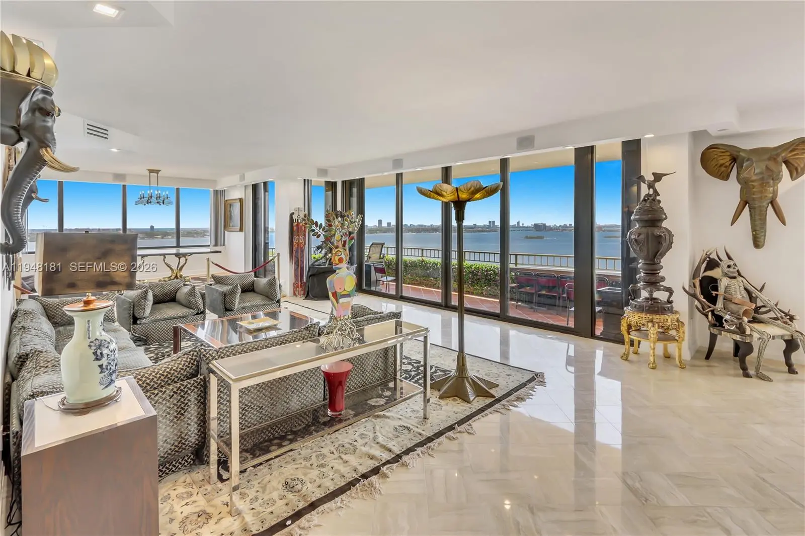 Fabulous Penthouse and guest quarters with breathtaking views of Biscayne Bay from every room! This unique property is two units combined - perfect for single family use or a pied-a-terre plus guest shome. Beautiful renovation with new bathrooms and new floor to ceiling impact windows. The living / dining area has 10' ceilings and a built in wet bar with ice maker and wine refrigerator. European kitchen with breakfast area and terrace overlooking the bay. The main en-suite bath has a steam shower and custome his/hers closets. The "guest quarters" include a large living area with new wood floors, new kitchen and large terrace. This bedroom has 2 walk in closets and a large bathroom with separate shower and tub. The building is being totally renovated with redecorated lobby , hallways, updated fitness center, entertainment room, pool and marina. Ideal location with easy access to shopping, dining, Miami Beach, Downtown and airport. No current assesments.