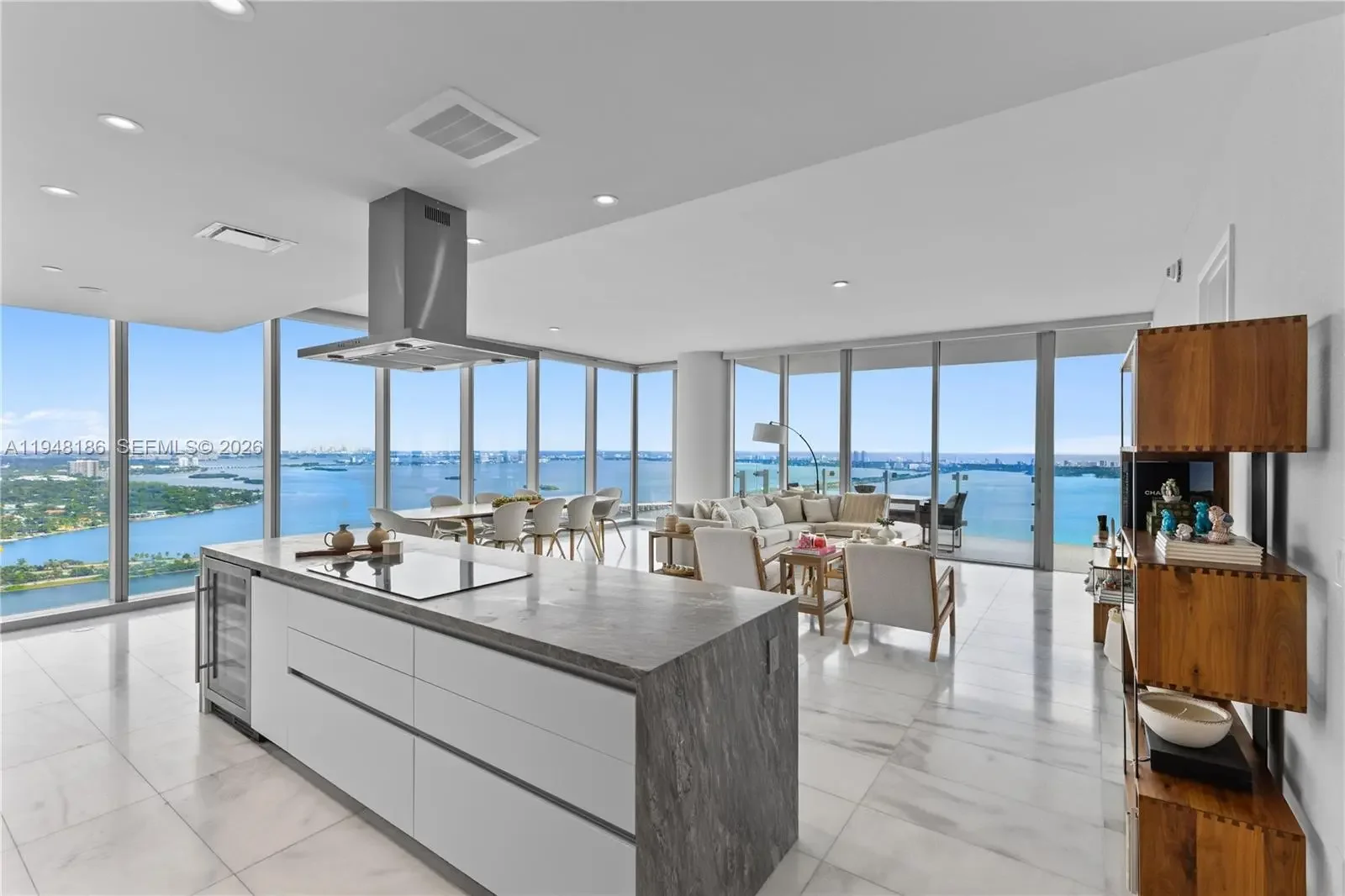 Perched on the 47th floor, this exceptional 3-bedroom, 4.5-bath residence offers 2,586 square feet of refined living with breathtaking, unobstructed views of Biscayne Bay and the Atlantic Ocean. Designed for both elegance and comfort, the residence features a spacious, light-filled layout with floor-to-ceiling glass that frames sunrise over the bay and sunset over the Miami skyline. Expansive living and dining areas flow seamlessly, creating an ideal setting for both everyday living and entertaining at scale. Each bedroom offers ensuite baths and privacy, while the primary suite delivers a true retreat in the sky. Located in a high-rise building with a boutique feel, residents enjoy an elevated lifestyle with resort-style amenities, including sunrise and sunset pools, tennis court, state-of-the-art fitness center, and thoughtfully curated common spaces designed for wellness and leisure. Ideally situated in Edgewater, just minutes from the Design District, Wynwood, Downtown Miami, and Miami Beach, this residence represents a rare opportunity to own a high-floor home combining panoramic views, generous scale, and refined amenities. Offered at $3,350,000. Private showings by appointment.