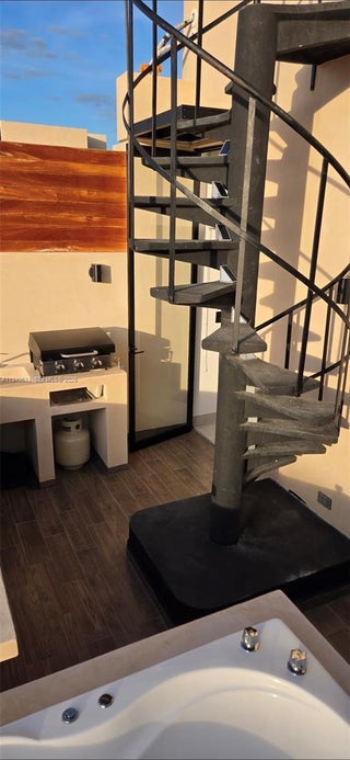 A Townhouse & Paradise Nest in Telchac Puerto - Pools, Rooftop, and Private Beach Club in the Emerald Riviera, Gulf of Mexico. This stunning, brand-new beach townhouse comes fully furnished and is located less than 100 meters from the shore. It features a pool, private jacuzzi, 3 bedrooms, and 3.5 bathrooms with a rustic-modern decor, washer/dryer, and access to an exclusive private beach club. A true oasis in Yucatan, situated just one hour from Merida International Airport and 35 minutes from Progreso. The area is surrounded by archaeological sites, a spectacular lagoon, abundant wildlife, and breathtaking sunsets. It includes a rooftop with panoramic ocean views—experience paradise in the Emerald Riviera. Enjoy an unforgettable barbecue on your private gas grill, located on the balcony right next to the jacuzzi. From there, head straight up to the rooftop to be captivated by the finest panoramic views of the sea. Contact us for more details.