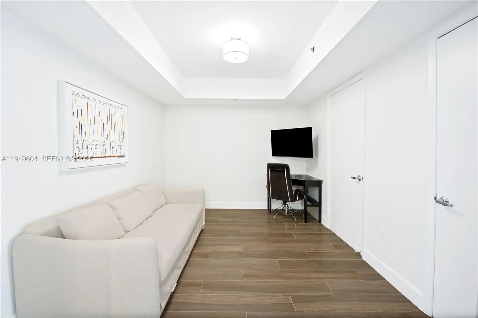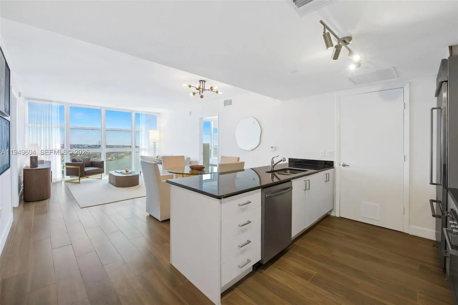 Refined Downtown Miami living awaits from this expansive 39th-floor 2 Bed + Den / 2 Bath residence at iconic 50 Biscayne, offered fully furnished for a truly turnkey opportunity. This large east-facing home is filled with natural light and framed by floor-to-ceiling impact glass showcasing sweeping views of Biscayne Bay, Bayfront Park and the Miami Beach skyline. The open-concept living and dining areas offer a seamless setting for entertaining, complemented by a sleek kitchen with black stone countertops, stainless steel appliances, and generous storage. A spacious den provides flexibility for a private home office, media lounge, or guest space, while the desirable split-bedroom layout enhances privacy and livability. The oversized primary suite features ample closet space and a spa-inspired bath with dual vanities, soaking tub, and glass-enclosed shower. Contemporary flooring, in-unit washer/dryer, and a clean neutral palette complete this move-in ready residence. 50 Biscayne offers full-service, resort-style amenities including a grand pool deck with cabanas and BBQ area, modern fitness center, sauna, steam and massage rooms, locker rooms, two resident lounges, business center, valet, 24-hour security, and concierge services. Ideally positioned just ssecondsfrom Bayfront Park, Bayside, Whole Foods, Kaseya Center, the Metromover, and minutes to Brickell City Centre with world-class dining, shopping, and nightlife.