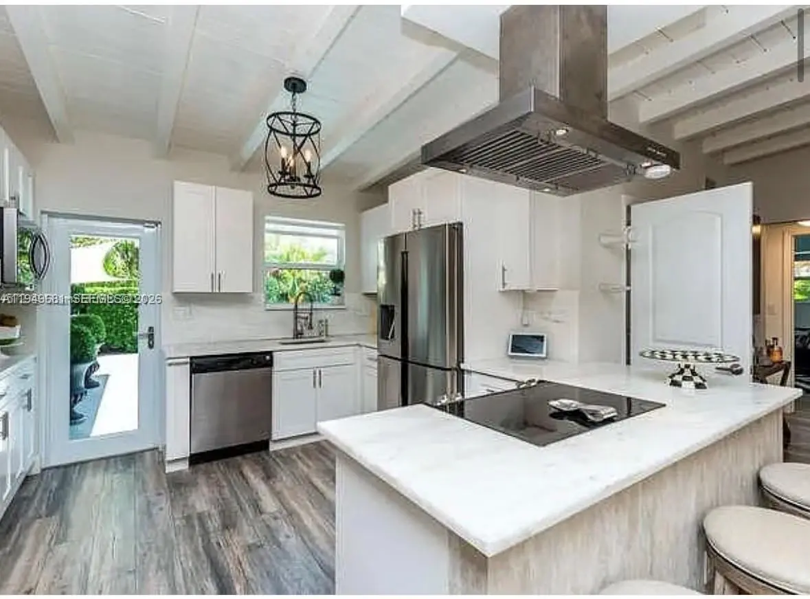 Prime development opportunity in prestigious gated Keystone Point! This spacious 3-bedroom, 3-bath pool home sits on an oversized 10,300 SF corner lot in one of North Miami’s most desirable redevelopment areas, surrounded by high-end new construction. The property features a split floor plan with vaulted ceilings, impact windows and doors, a modern kitchen with quartz countertops and stainless steel appliances, engineered wood flooring, and a flexible den easily convertible into a 4th bedroom or office. The home is tenant-occupied with a secured lease from 02/01/2026 to 01/31/2027 at $5,800/month, providing stable income while plans and permits are prepared — ideal for developers or long-term investors. Cash offers preferred. Outdoor features include a private heated pool, lush fruit trees, pizza oven, and open patio, offering both immediate rental appeal and strong redevelopment potential. Priced with future improvements or redevelopment in mind. Prime location just minutes from Bal Harbour, Aventura, beaches, and top-rated schools.