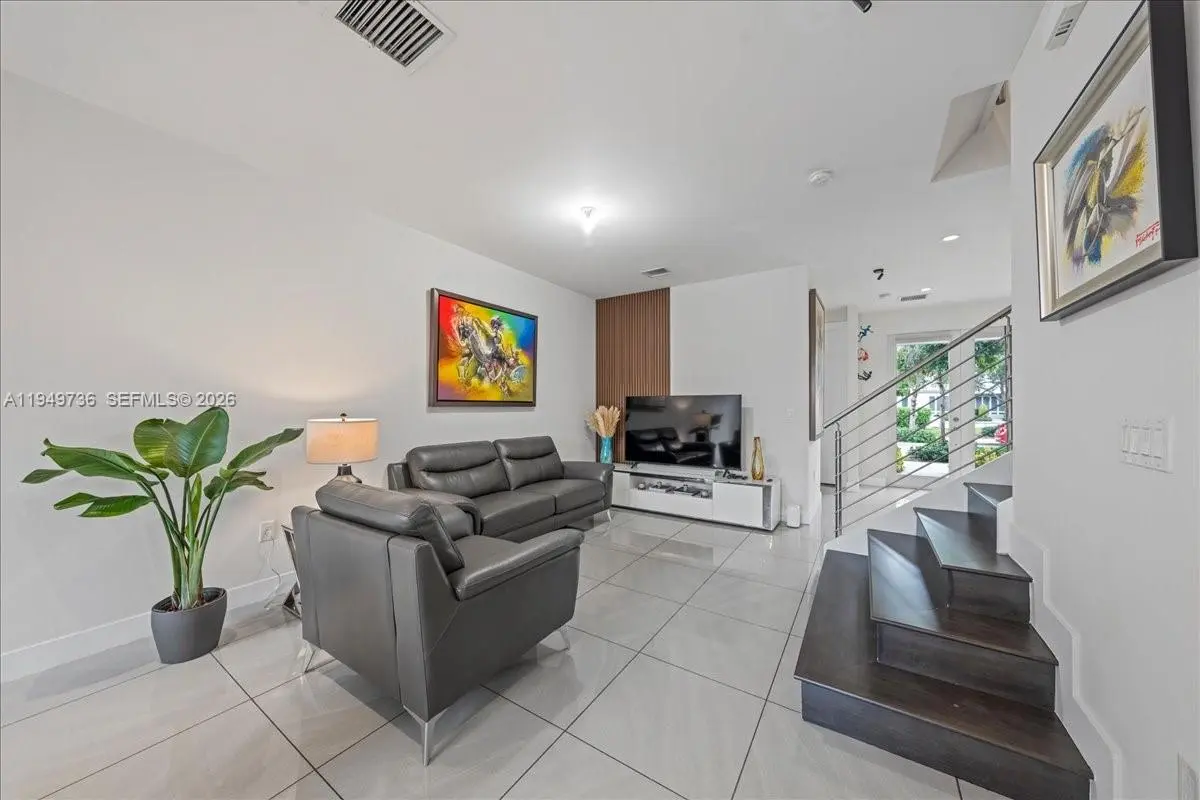 Beautiful modern townhouse in the highly desirable Landmark at Doral. Model B, 2 stories, featuring 4 bedrooms -3 full bathrooms, including 1 BEDROOM and FULL bath on the first floor—ideal for guests or multigenerational living. Open-concept layout with spacious family and dining areas. Contemporary kitchen with quartz countertops, stainless steel appliances, and sleek modern cabinetry. Luxury finishes throughout. Upstairs boasts brand-new vinyl flooring and a new A/C system. New dryer, Very low maintenance fees. Excellent floor plan filled with natural light. One-car garage plus driveway parking for 1–2 additional vehicles. Enjoy Landmark’s exclusive resort-style clubhouse, amenities, and community activities. Prime Doral location near top schools, shopping, dining, and major highways. Easy to show. Call or text listing agent or schedule via Showing Online.