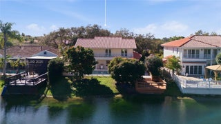 Lakefront living in the prestigious gated Royal Oaks community of Miami Lakes with a low HOA of just $32/month. This stunning 4-bedroom, 4-bath residence offers a flexible layout with 1 bedroom & full bath downstairs & 3 bedrooms upstairs, all featuring French doors opening to an expansive lake-view balcony. Highlights include stainless steel appliances, a spa flowing into the pool, an extended deck over the lake, a tiki hut entertaining area, and a full bathroom with direct access to patio/pool area. Additional features include solar panels that drastically reduce electric bills, 2 Tesla Powerwall batteries providing whole-home energy backup, an EV charger powered by the solar system, and two laundry areas- one on each floor. Furniture negotiable.
