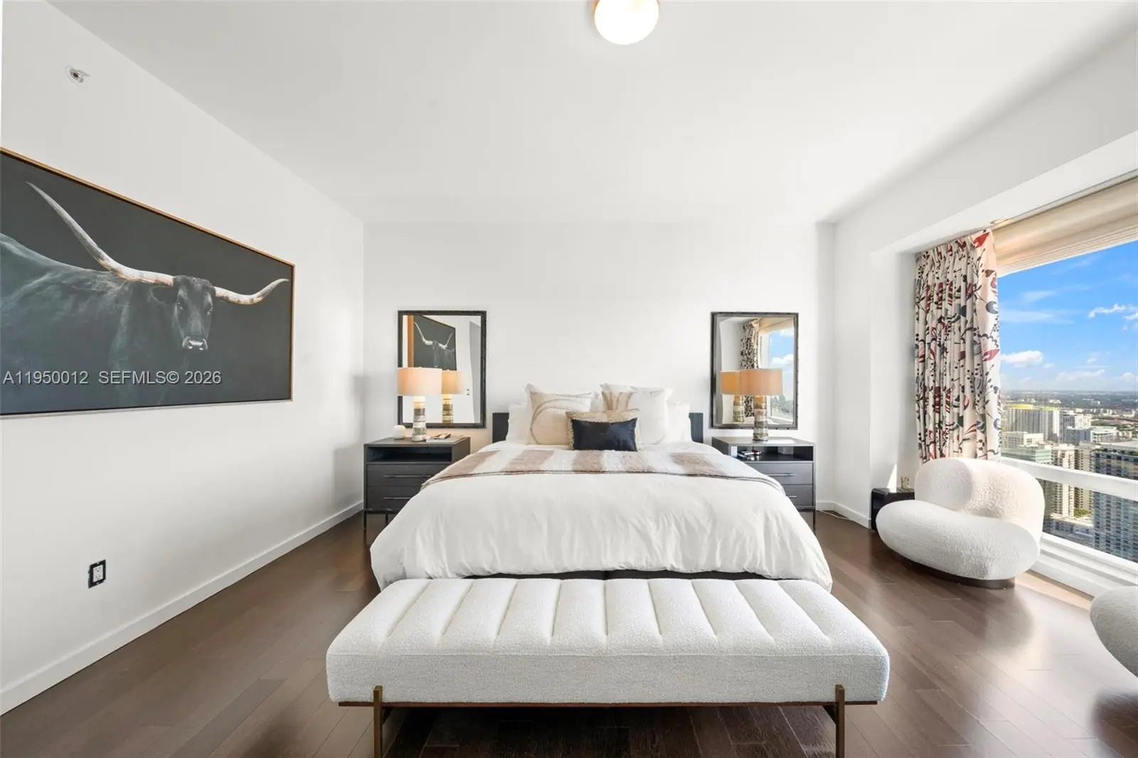 Experience unrivaled sophistication in this exceptional 3,357 square foot corner residence at the iconic Four Seasons Brickell, soaring above the city on the 58th floor. This exquisitely appointed 3-bedroom plus den, 4-bathroom home showcases sweeping panoramic views and a seamless blend of timeless elegance and modern comfort. Rich wood and marble floors flow throughout expansive open living spaces, illuminated by floor-to-ceiling glass that frames the skyline and bay beyond. Each bedroom is a serene private retreat with spa-inspired en-suite bathrooms and generous closet space. The chef’s kitchen is thoughtfully designed with top-of-the-line appliances and sleek refined finishes ideal for both intimate dining and entertaining. Residents enjoy access to an expansive 2-acre sun deck with lush landscaping, hammock gardens, a heated swimming pool, kids’ pool, whirlpool, lounge seating and poolside dining. Additional amenities include two on-site restaurants, a boutique, business center, 15,000 square feet of event space and a 50,000 square foot Equinox fitness club offering group classes, personal training and a full-service spa with a wide range of health and beauty treatments. Four Seasons services include personalized concierge, 24-hour in-room dining, valet parking, security, housekeeping, laundry and dry-cleaning services and curated activities for children.