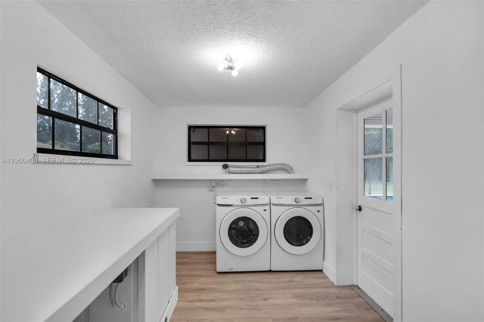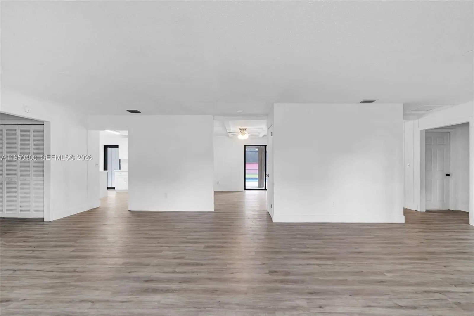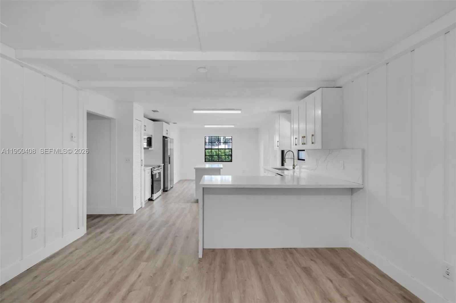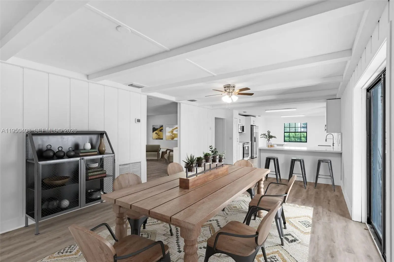 This beautiful 3 Bedroom, 2 Bath ranch-style oasis invites you into bright, open interiors set on lush, expansive grounds. Property is on almost 1 Acre of land. The sunlit living areas feature fresh white walls and luxury vinyl plank, flowing seamlessly into a modern kitchen boasting crisp white cabinetry, quartz countertops, brass finishes, and stainless-steel appliances. Step outside to a screened lanai and sparkling private pool which give you a serene retreat perfect for entertaining or relaxation. A charming outbuilding, ideal as a workshop or anything your imagination can think of, adds incredible potential. With beautifully updated finishes, generous yard space, and indoor-outdoor living that captures a tropical vibe, this home blends comfort and style into one inviting package