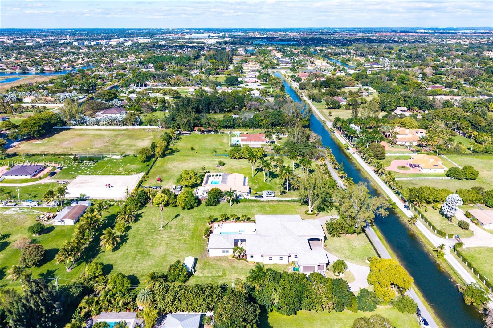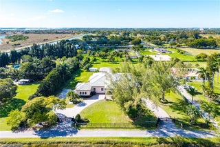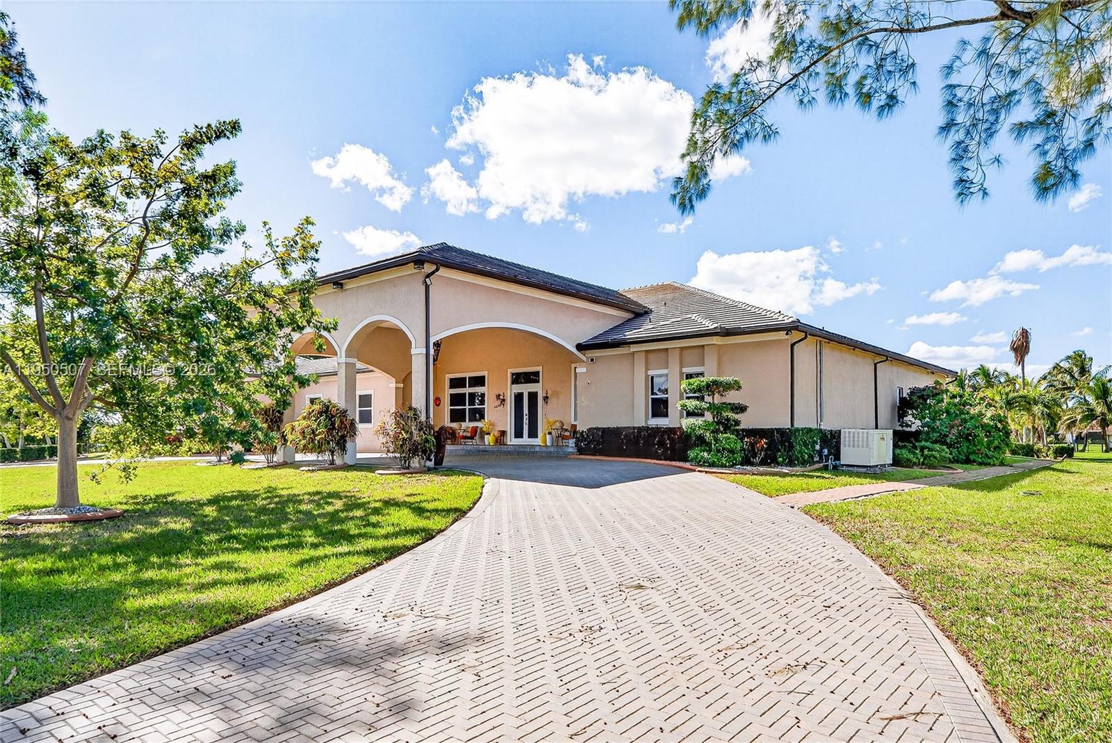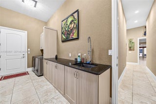 Resort-style living in the heart of Miramar, located in prestigious Country Club Ranches with no HOA. Situated on 2.5 acres, this custom-built 2017 estate offers a 6BD/5BA/2HB main home plus a private 1BD/1BA guest house with full kitchen and living area. Features include a 3-car garage with ample storage, expansive primary suite with private gym, oversized walk-in closets, and spa-like bath with soaking tub, large shower, double vanities, and bidet. Gourmet kitchen with 3 ovens and top-of-the-line appliances. Custom laundry room with built-in ironing board. Fully energy efficient with impact windows and doors and a 500-gallon generator powering the entire home up to 14 days. Backyard oasis includes gas-heated saltwater pool and jacuzzi with ample space for RV parking, horses, or agricultural use.