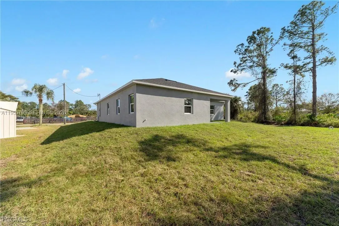 Stunning New Construction Home in Lehigh Acres, FL! this move-in-ready home an even better opportunity. This beautiful home is perfectly located near shopping, dining, and all conveniences in Lehigh Acres. Featuring 4 spacious bedrooms, 2.5 bathrooms, and a 2-car garage, the open floor plan is ideal for modern living. The luxurious master suite boasts a walk-in shower and dual sinks for comfort and convenience. The stylish kitchen with stainless steel appliances, granite countertops, and plenty of cabinet space, making it perfect for culinary enthusiasts. Elegant flooring, combining beauty and functionality. Step outside to the lanai under truss, perfect for relaxing or entertaining guests. Don’t miss this incredible chance—schedule your showing today