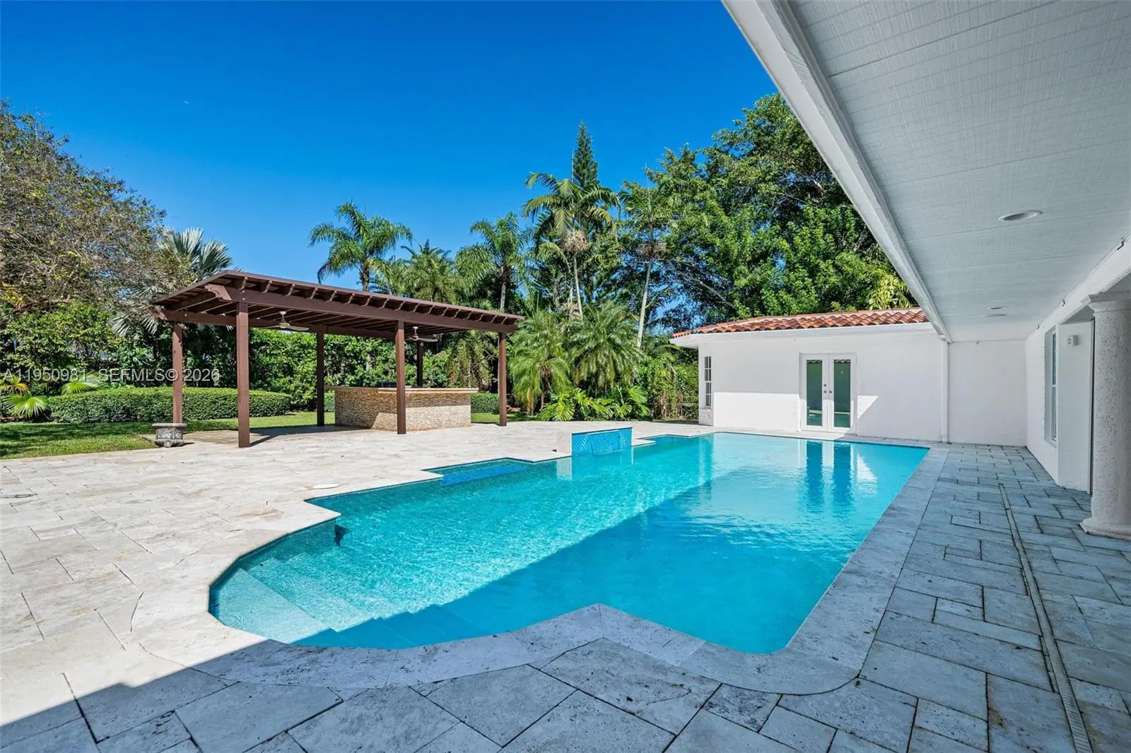 Elegant 5-bedroom estate in prestigious Pinecrest on 4,732 sq ft. Soaring ceilings & open living spaces create sophisticated flow throughout. Chef's kitchen boasts premium appliances & custom cabinetry. Primary suite offers spa-like bath & direct pool access. Expansive glass doors create seamless indoor-outdoor flow to resort-style yard w/ pool, spa, covered terrace & lush landscaping. Clean architectural lines, refined textures & designer finishes throughout. Three-car garage. Minutes from A-rated public & private schools, Pinecrest Gardens, scenic bike paths, parks & sports fields. Close to acclaimed restaurants, boutique cafés & cultural venues. Perfect for families seeking exceptional educational opportunities in one of Miami's most desirable enclaves. A statement of modern living combining prestige, community & sophisticated design.