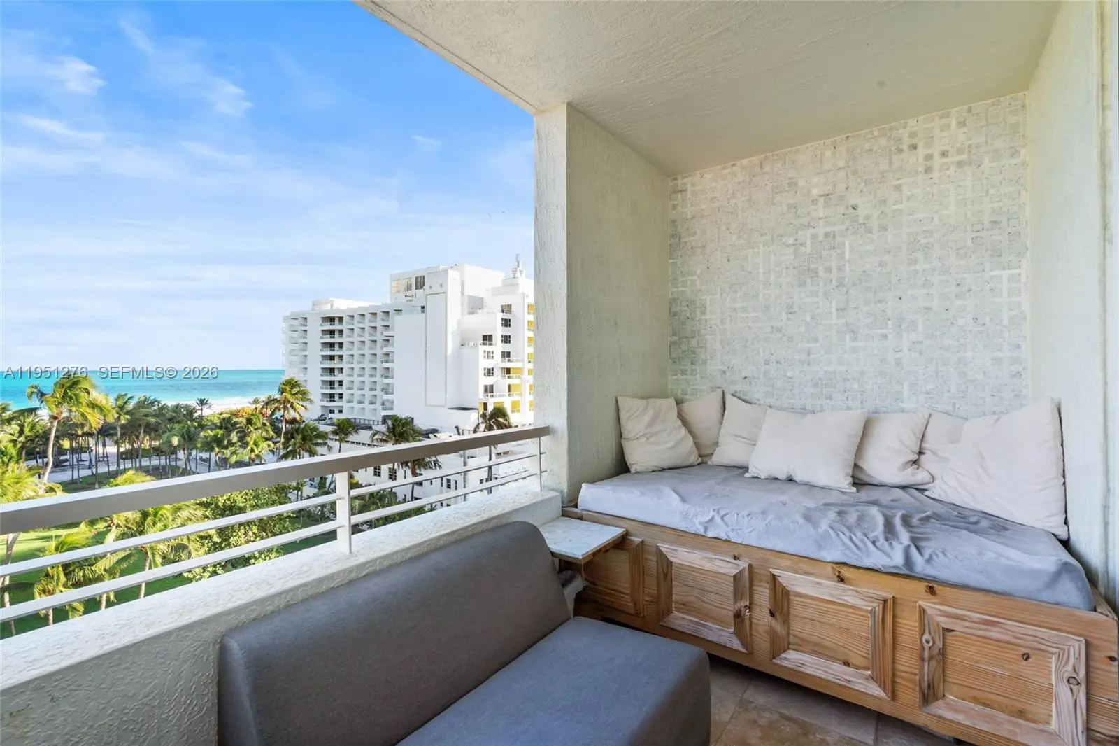 Experience elevated living in this upgraded 2-bed, 2-bath apartment in the heart of South of Fifth. This beautifully decorated unit boasts a spacious layout, perfect for entertaining, and offers breathtaking beach views. The private wrap-around balcony on the 8th floor provides stunning direct ocean view, creating the perfect retreat. Elegant features include new hurricane-impact doors and windows, a designer kitchen and baths, ample closet space, and sophisticated travertine marble floors. This boutique 20-unit building offers luxurious amenities, including an oceanfront pool and spa, fitness center, secure lobby, and dedicated parking. Located on Ocean Drive, you're steps away from world-class dining, shopping, entertainment, and pristine beaches.