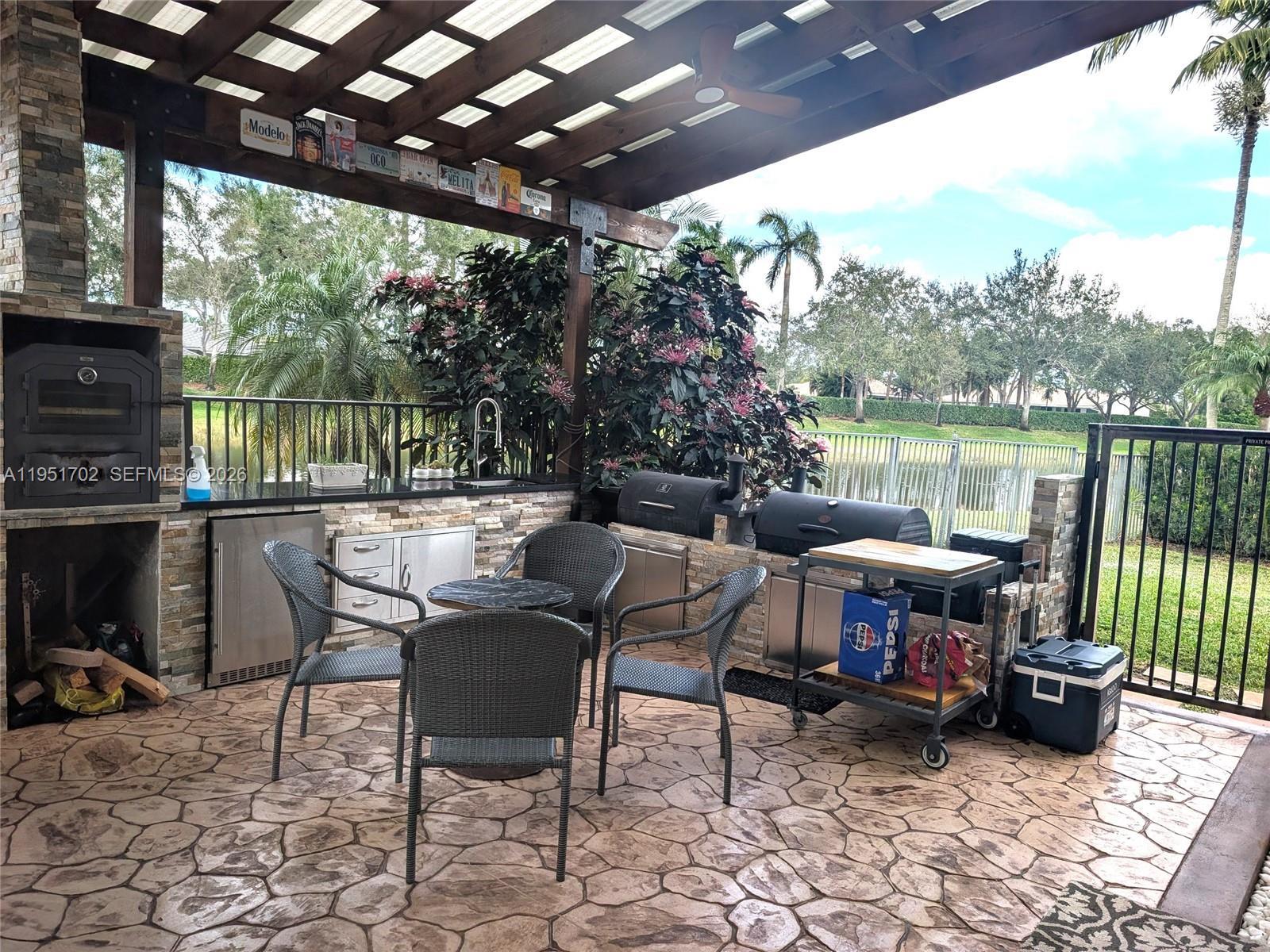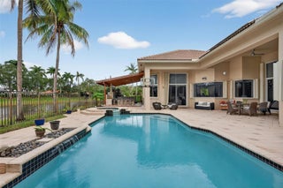 Spectacular waterfront home in the heart of Weston featuring 5 bedrooms 5.5 bathrooms plus office, 3 car garage, circular driveway and approximately 4,500 sq ft of beautifully updated living space on. This impressive residence offers soaring high ceilings, an open and airy floor plan, and abundant natural light throughout. Principal room with exercise room/office plus sitting area. The updated kitchen and renovated bathrooms provide modern comfort, while expansive living and entertaining areas make this home ideal for both family living and hosting. Step outside to your private resort-style backyard with pool, jacuzzi, tranquil water views, an amazing fully equipped outdoor kitchen and entertaining pavilion—perfect for gatherings and sunset evenings. Located in a well-maintained community The Landings close to A-rated schools, parks, shopping, dining, and major highways. A rare opportunity to own a move-in-ready waterfront home in one of Weston’s most desirable neighborhoods. Solar panels included in the sale.