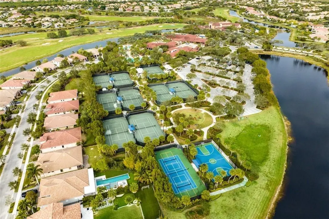 Parkland Golf & Country Club – Parkland – Luxury Tuscany-style lake - view home with 5 bedrooms and 3 bathrooms (5th bedroom currently used as an office/multi-purpose room) plus a huge playroom. Wake up to serene water views and enjoy true Florida indoor-outdoor living. The home features a beautiful pool and an entertainer’s lanai with built-in sound system. Additional highlights include two brand-new A/C units, an indoor security system, crown molding throughout, fenced-in yard, and an open-concept floor plan ideal for gatherings. Kitchen with stainless steel appliances, espresso cabinetry, granite countertops, and breakfast bar. Diagonal tile flooring throughout main living areas. Stunning staircase with wrought iron and immaculate espresso hardwood floors in the loft (upper level). Impact windows. Exterior painted in 2019. Located in Parkland, Florida within the prestigious Parkland Golf & Country Club community.