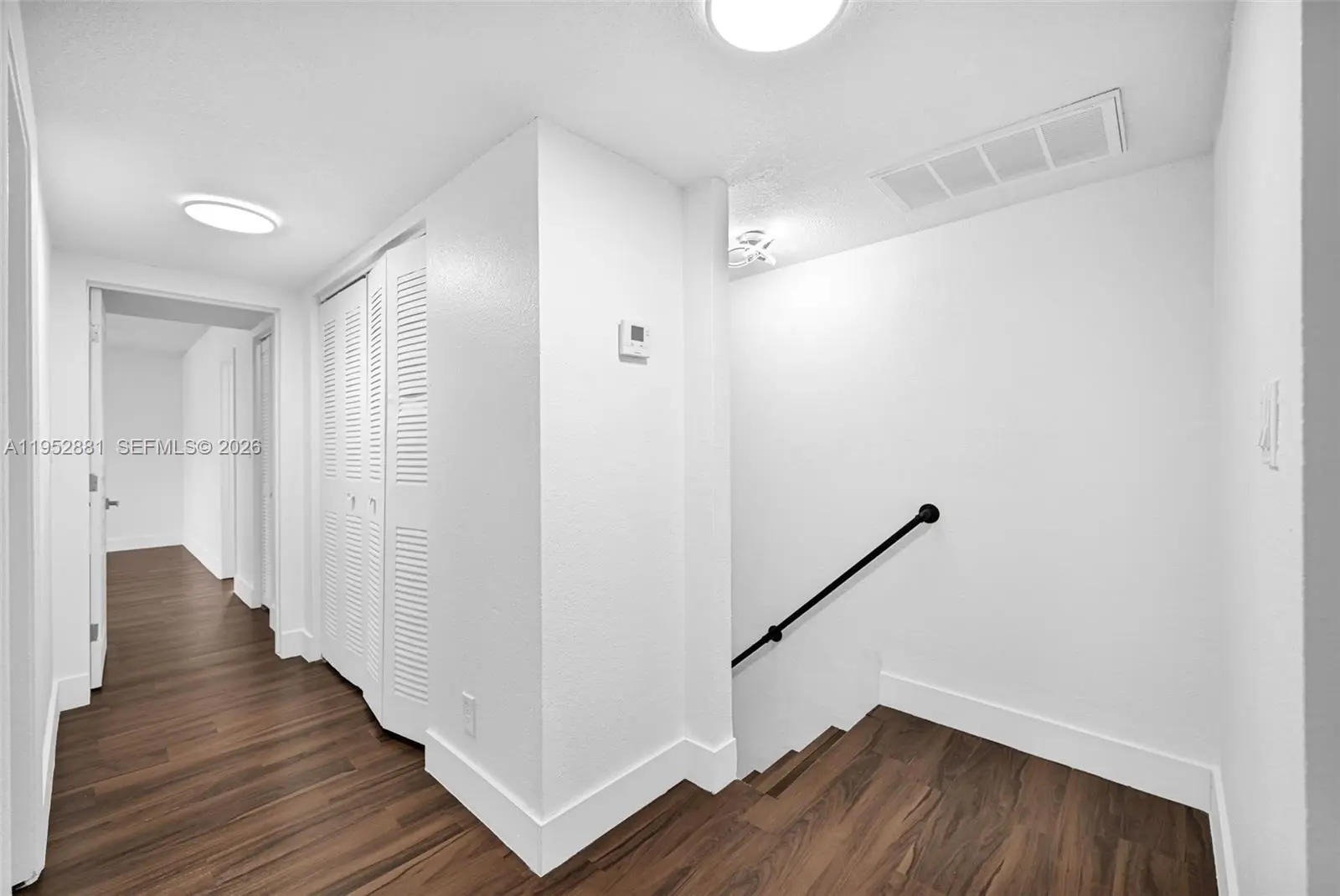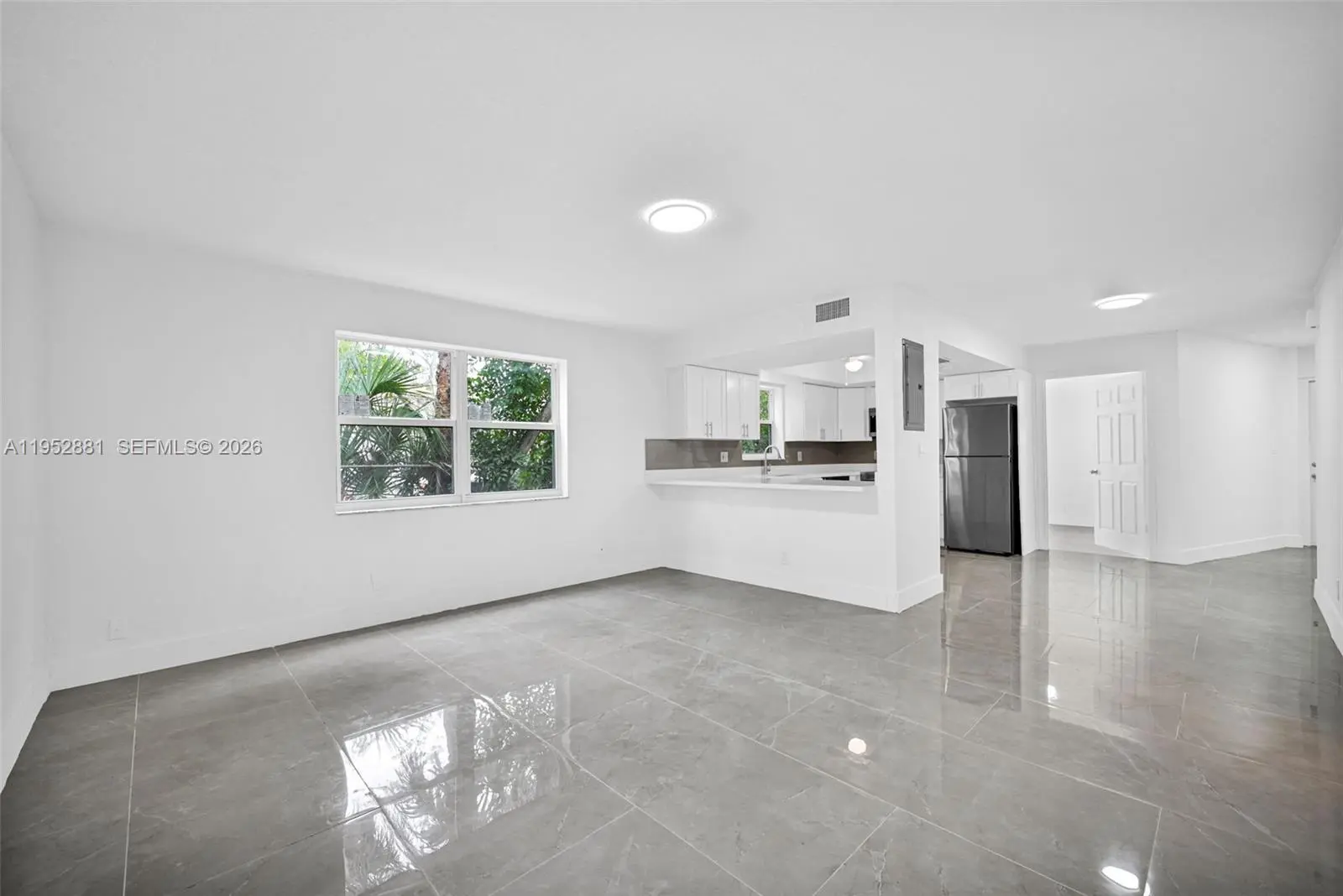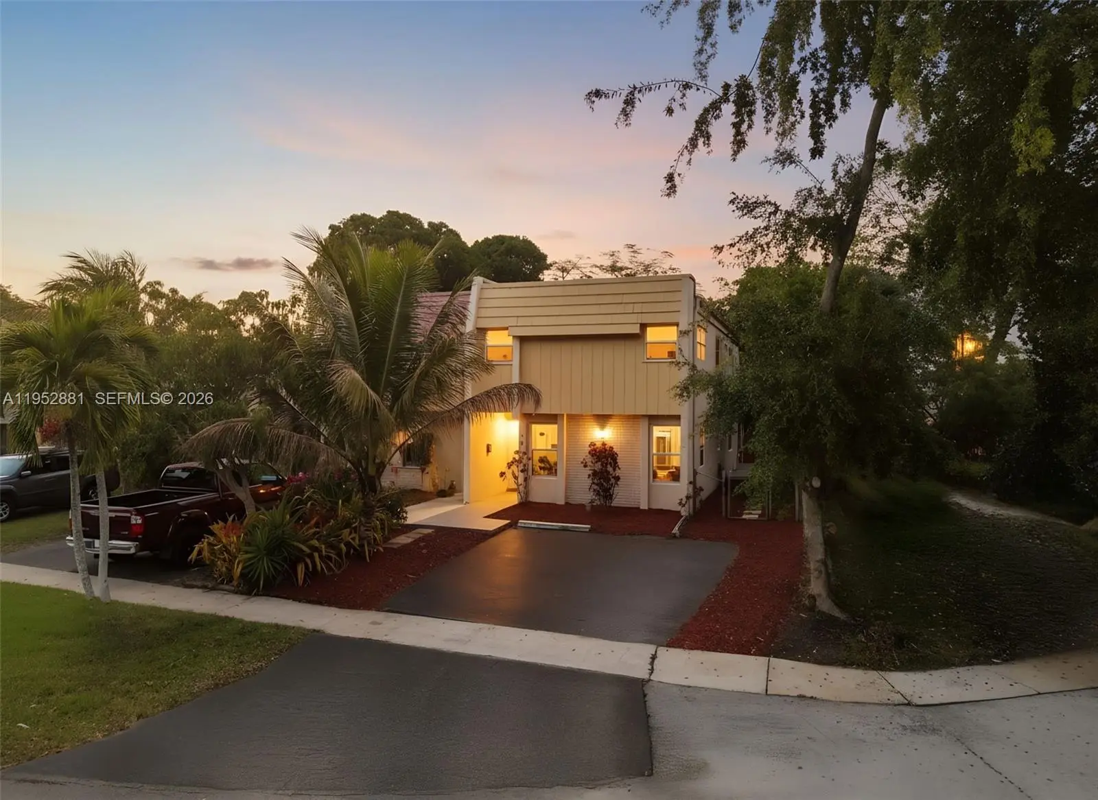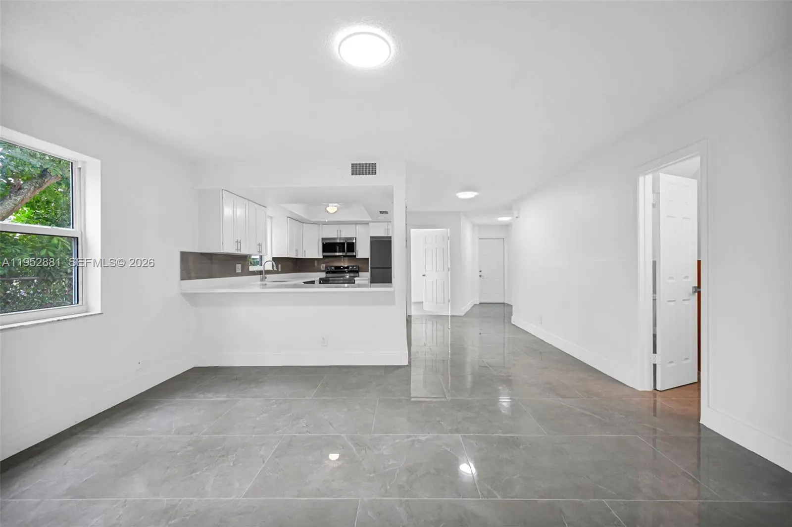Welcome home to this beautifully remodeled and upgraded 4-bedroom, 2.5-bath residence offering 1,840 total sq ft, tucked away on a quiet cul-de-sac for added privacy. Enjoy peace of mind with hurricane impact windows and sliders (2025), a newer HVAC (2024), and the convenience of an in-unit washer & dryer. The renovated open-concept kitchen features quartz countertops, shaker cabinets, modern finishes, and Samsung appliances including stove, microwave, refrigerator, and dishwasher—perfect for both everyday living and entertaining. Ceramic tile flooring runs throughout the main level for easy maintenance, while laminate wood flooring adds warmth upstairs. The spacious layout includes a large living room, storage room, and dedicated laundry area. One oversized bedroom is located downstairs, ideal for guests, a home office, or multi-generational living. Upstairs, the primary suite offers a generous walk-in closet and a beautifully updated ensuite bath with a frameless glass shower. The second full bathroom includes a tub for added functionality. Step outside to a fenced private backyard with endless potential—create your dream outdoor oasis with space for a patio, play area, garden, and more. Fee simple ownership with NO HOA, making this an excellent opportunity for first-time buyers, homeowners, or investors. Conveniently located near schools, shopping, dining, and major roadways.