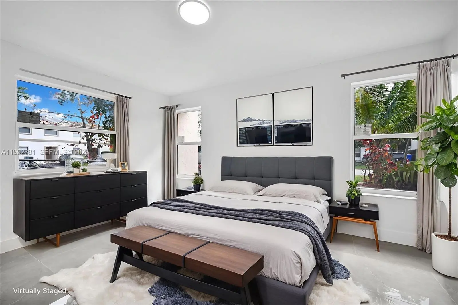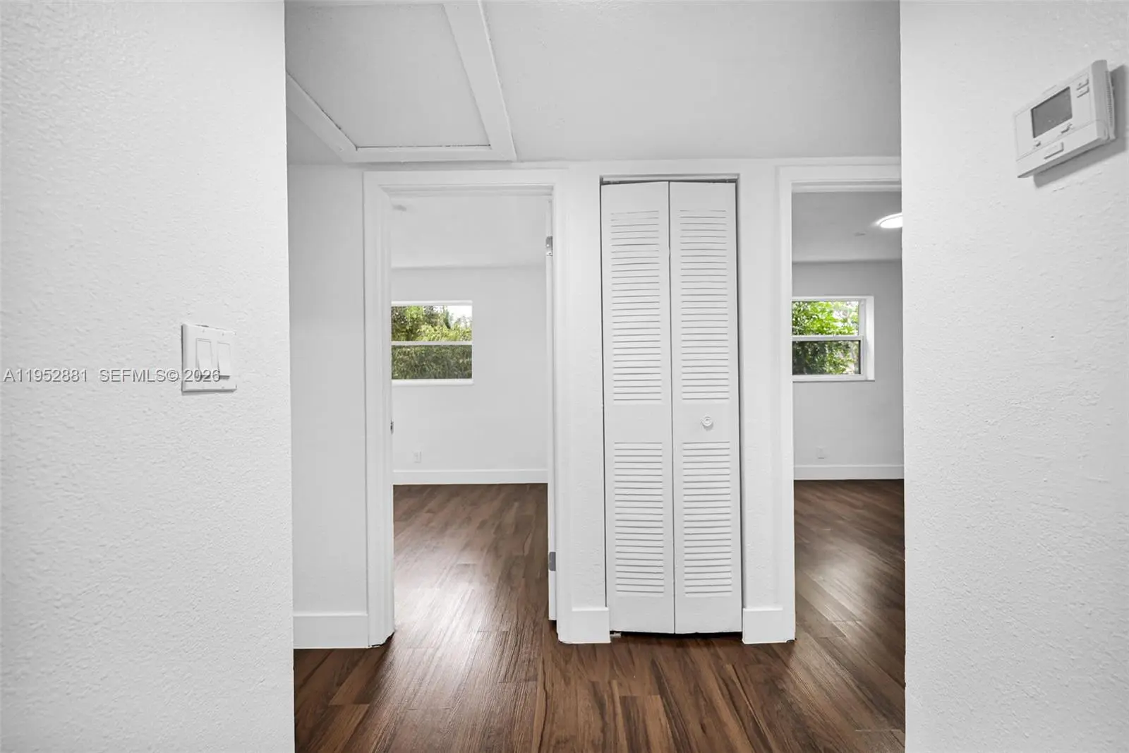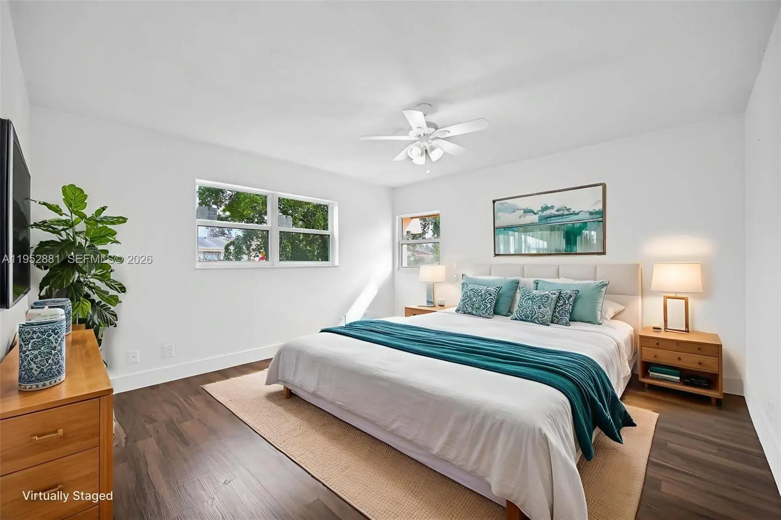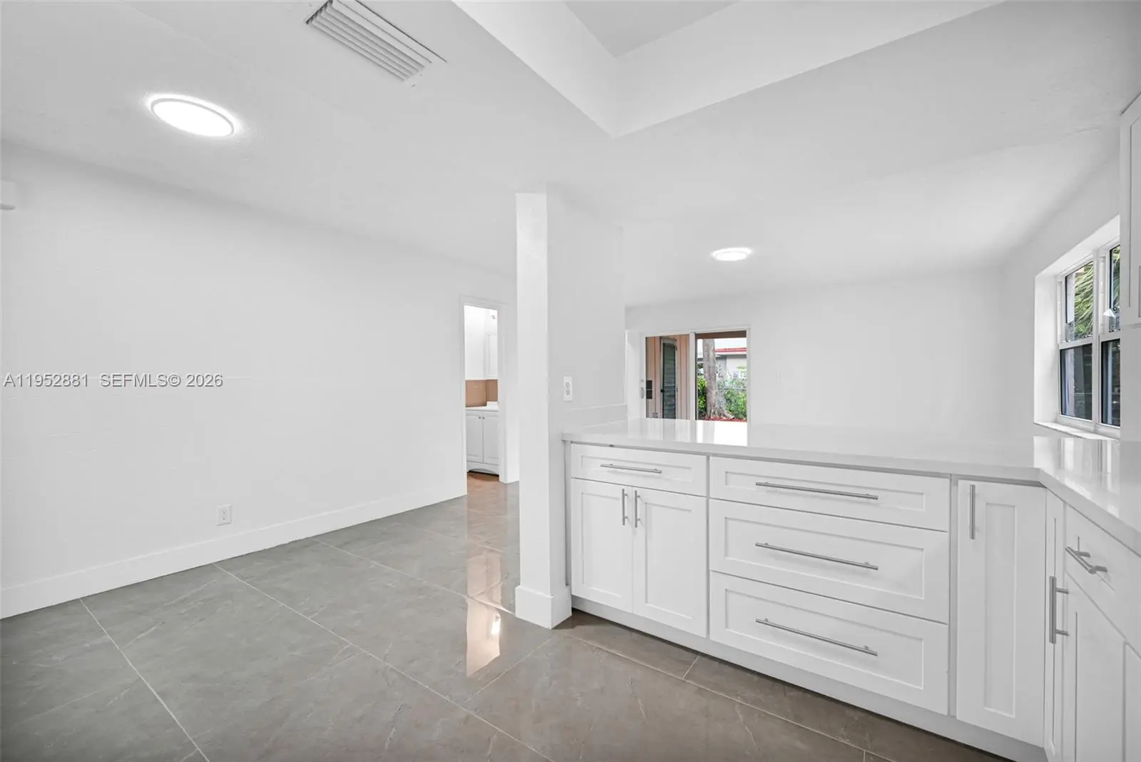 Welcome home to this beautifully remodeled and upgraded 4-bedroom, 2.5-bath residence offering 1,840 total sq ft, tucked away on a quiet cul-de-sac for added privacy. Enjoy peace of mind with hurricane impact windows and sliders (2025), a newer HVAC (2024), and the convenience of an in-unit washer & dryer. The renovated open-concept kitchen features quartz countertops, shaker cabinets, modern finishes, and Samsung appliances including stove, microwave, refrigerator, and dishwasher—perfect for both everyday living and entertaining. Ceramic tile flooring runs throughout the main level for easy maintenance, while laminate wood flooring adds warmth upstairs. The spacious layout includes a large living room, storage room, and dedicated laundry area. One oversized bedroom is located downstairs, ideal for guests, a home office, or multi-generational living. Upstairs, the primary suite offers a generous walk-in closet and a beautifully updated ensuite bath with a frameless glass shower. The second full bathroom includes a tub for added functionality. Step outside to a fenced private backyard with endless potential—create your dream outdoor oasis with space for a patio, play area, garden, and more. Fee simple ownership with NO HOA, making this an excellent opportunity for first-time buyers, homeowners, or investors. Conveniently located near schools, shopping, dining, and major roadways.