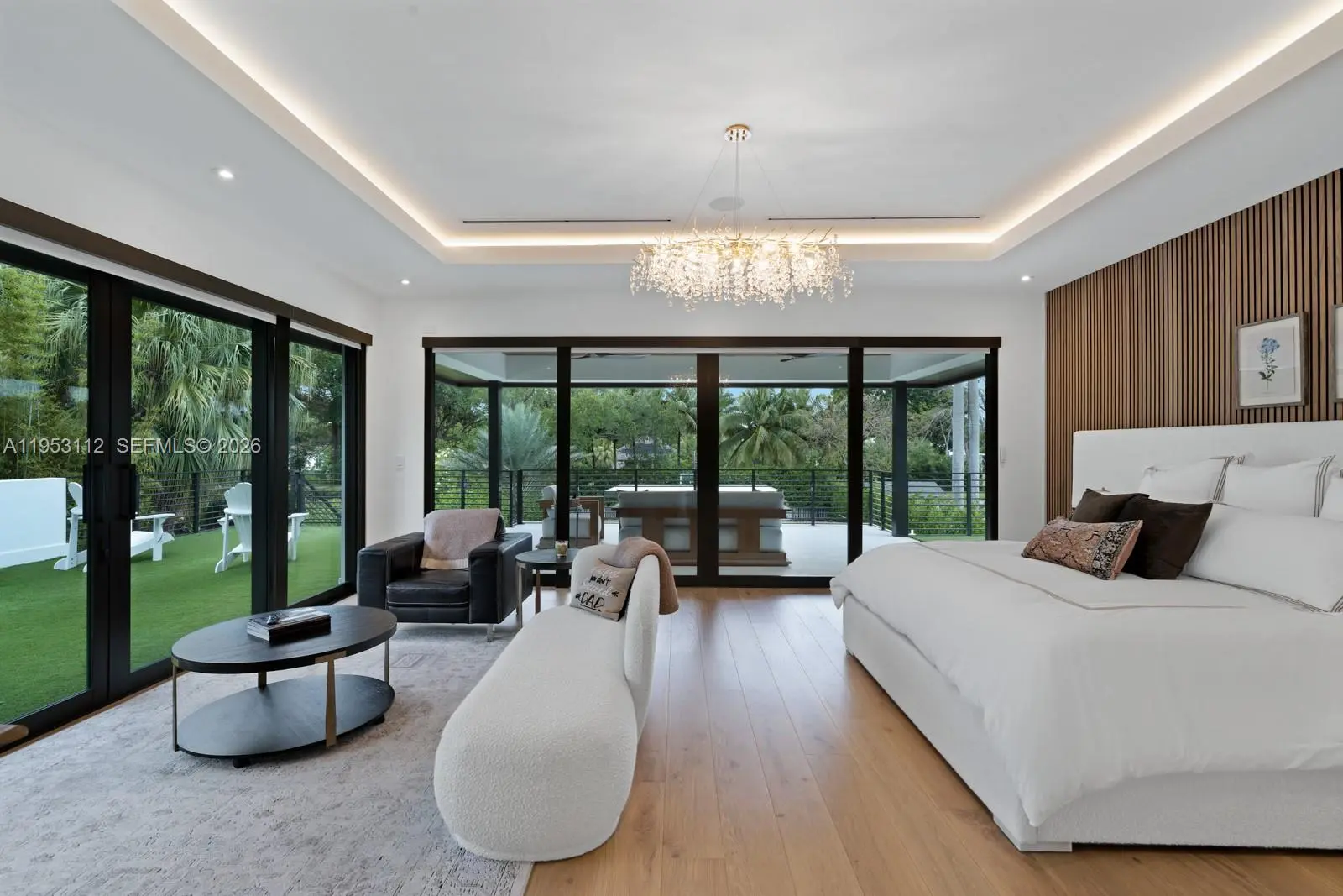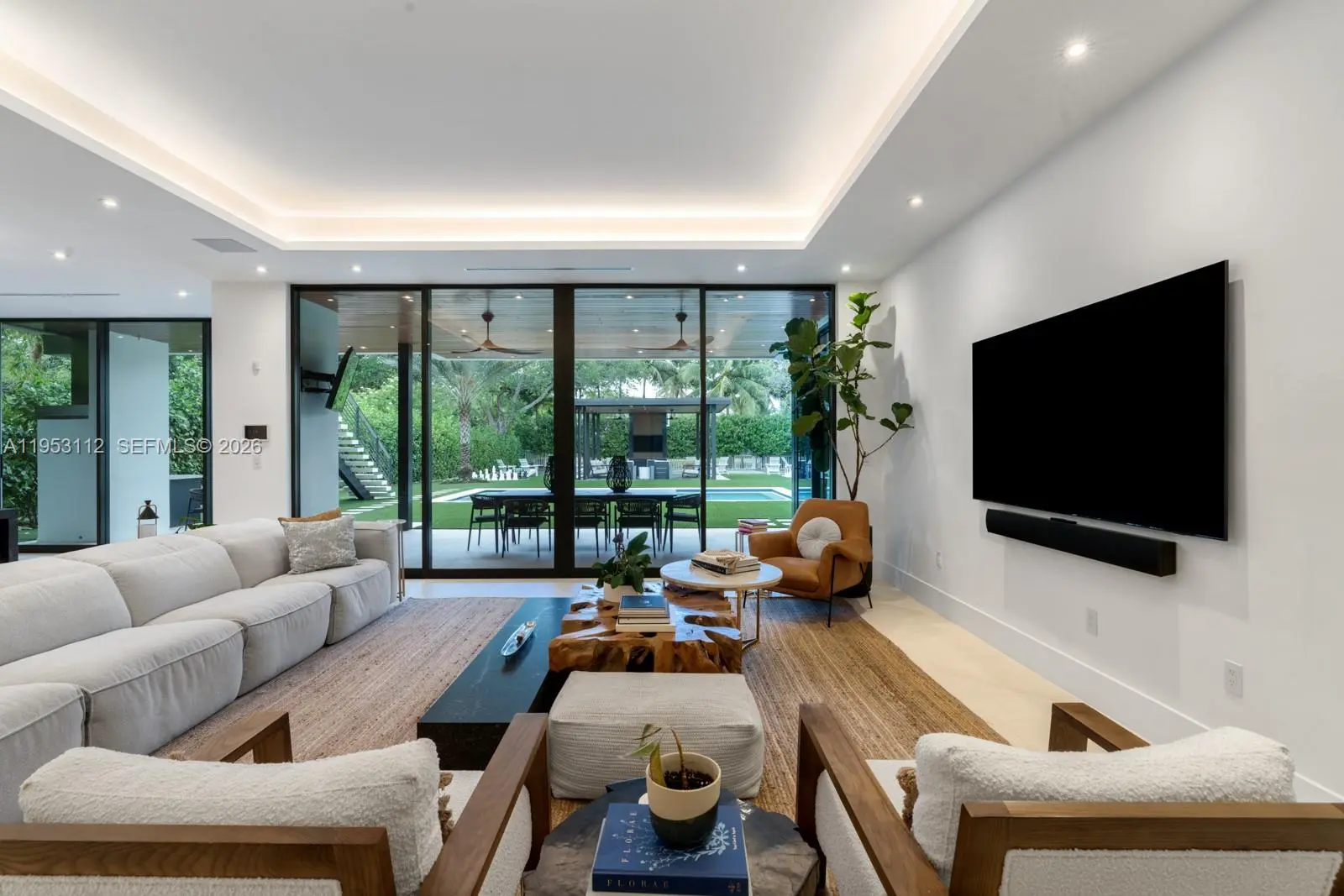 Architectural contemporary estate in the North of Pinecrest, completed in 2023 and set on an expansive canal-front lot offering more living area than shown on the tax roll. This 6-bedroom residence with 5 full and 2 half baths is a fully integrated smart home featuring a bespoke kitchen, statement bar, custom millwork, designer wall coverings, private elevator, and an oversized garage with car lift. The primary suite delivers a true wellness retreat with steam shower and sauna, while a dedicated theater elevates the entertainment experience. The outdoor oasis includes a covered pavilion, resort-style pool, and full pickleball/basketball court. Ideally positioned near top-rated schools, parks, and town centers, this is a standout offering in one of Miami’s most coveted neighborhoods.
