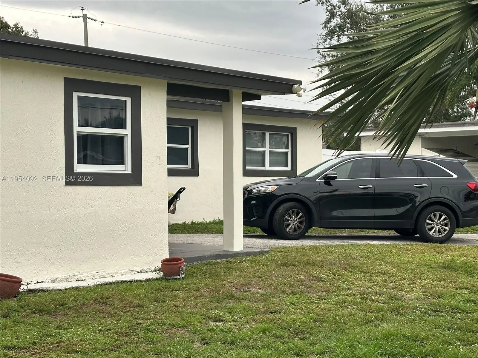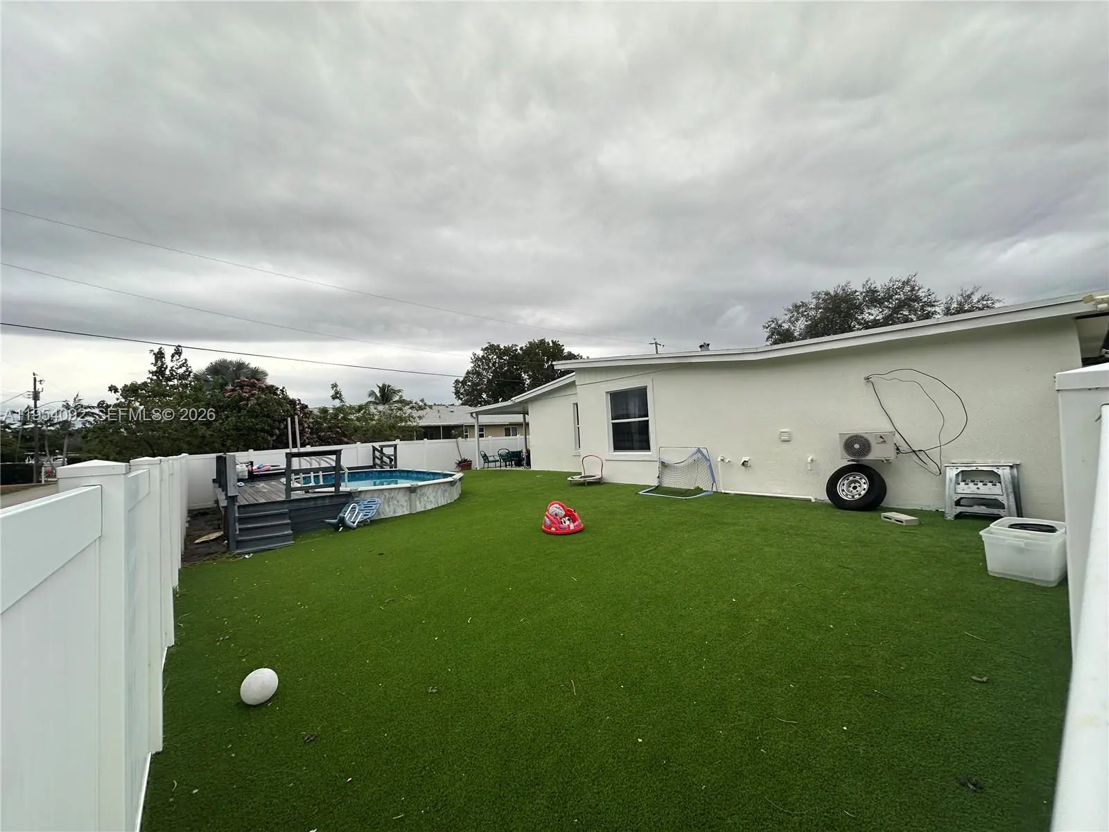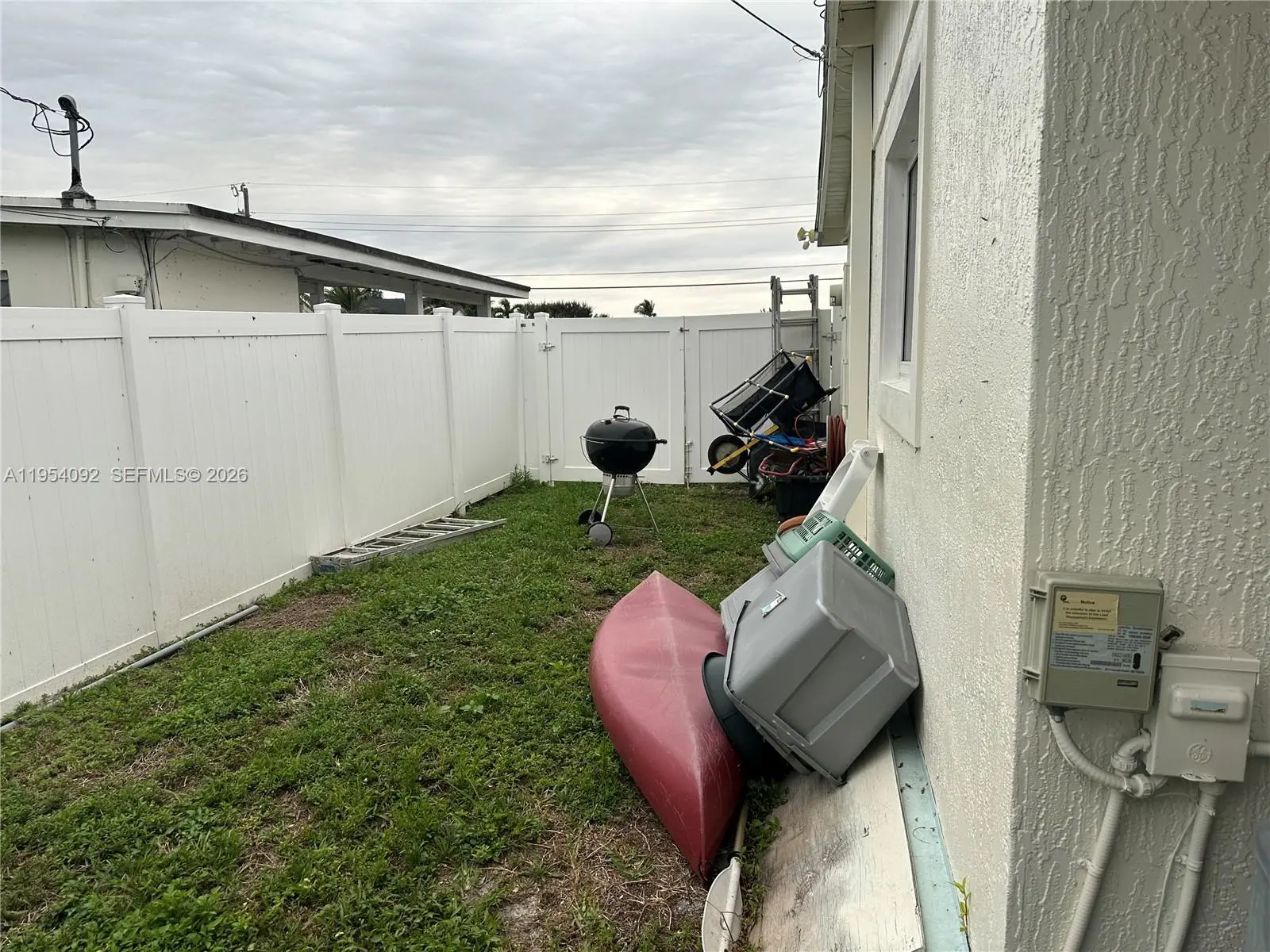 Large corner lot. Lovely kitchen, great for entertaining, connects to living room and to patio with extended roof overhang and on concrete floor, ideal for outdoor socializing. All ''Hurricane Impact" doors and windows. Well maintained 10-year-old roof. Full surround high privacy fence, encloses storage for boat, trailer water toys, etc. Large shed for tools. A 4th room may become a Den, Office or in-law quarters.
