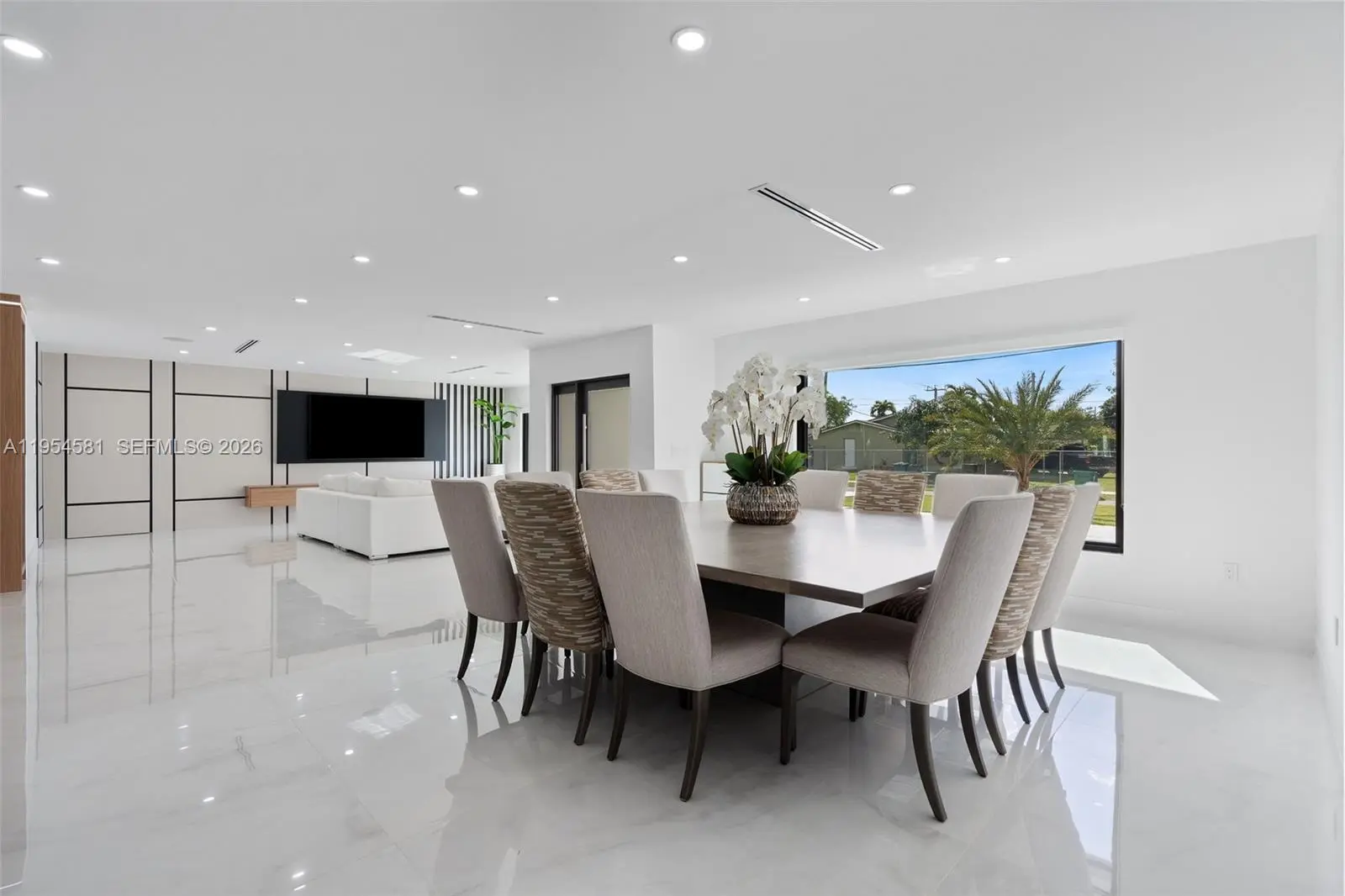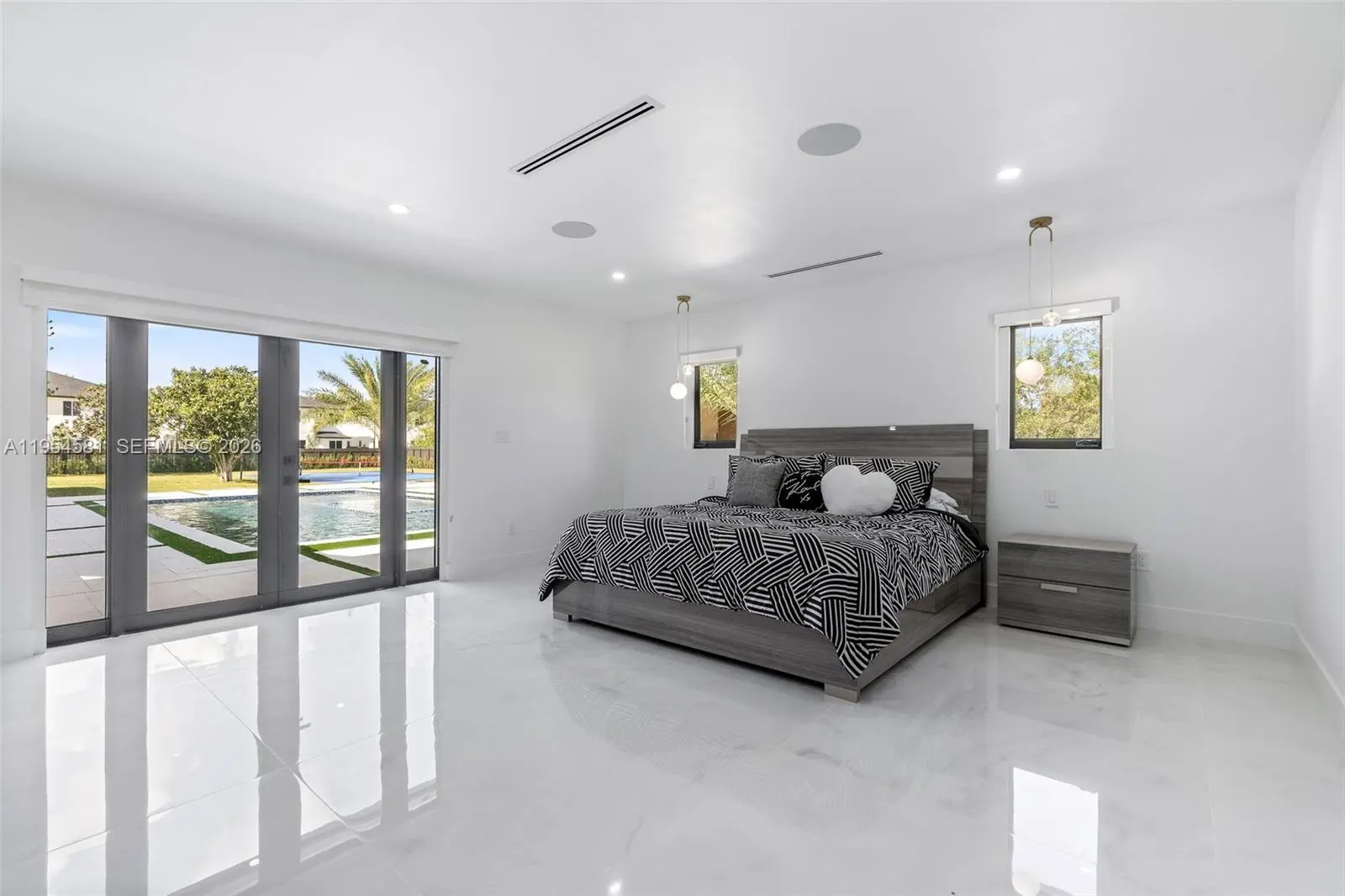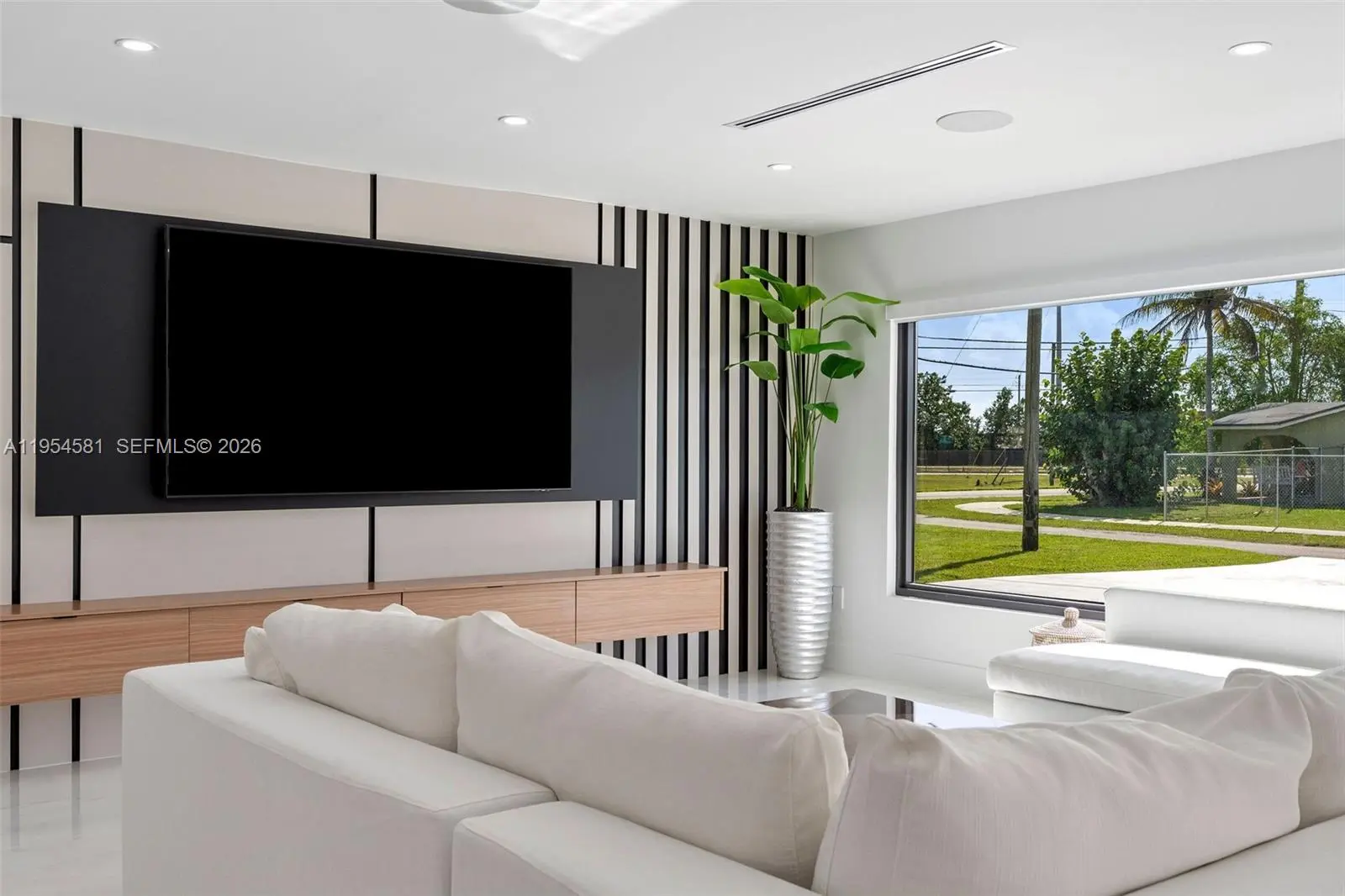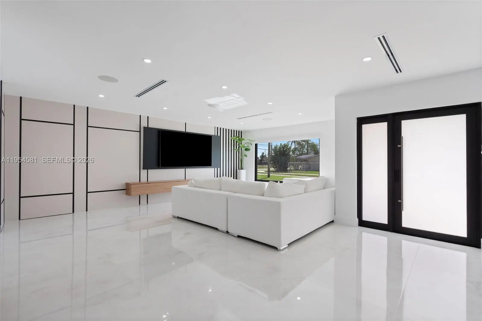Welcome to an extraordinary residence where contemporary design meets unparalleled outdoor living — a sanctuary reimagined from top to bottom on an expansive corner lot. Fully remodeled with no detail spared, this home offers a rare blend of refined interiors and unmatched outdoor living, setting a new benchmark for luxury in the area. The home makes an immediate impression with all-new Low-E impact windows and doors, enhancing both aesthetics and energy efficiency while flooding the interior with natural light. Inside, expansive living areas are unified by 48×48 Spanish porcelain tile, creating a clean, contemporary canvas throughout. The heart of the home is a designer kitchen and living space finished with Taj Mahal quartzite countertops, offering timeless elegance, durability, and visual warmth. Every space has been thoughtfully reimagined to maximize flow, comfort, and functionality. Designed for elevated entertaining and everyday enjoyment, the property opens to a private outdoor oasis that includes a heated smart pool and jacuzzi with app-controlled functionality, a custom pickleball court with professional lighting, and an exterior cabana equipped with a Summerset BBQ and premium appliances delivering a true resort-style experience at home. Manicured landscaping is supported by a sprinkler system. Additional features include a 2-car garage, integrated whole-home audio system, and a modern camera security system.