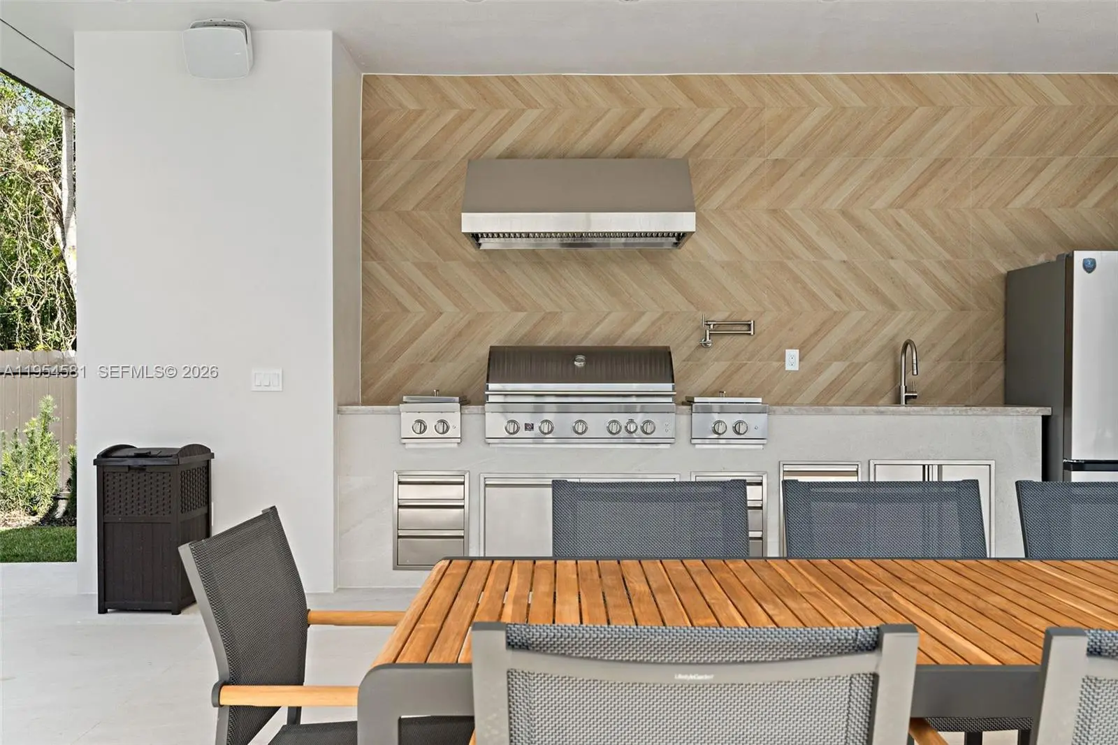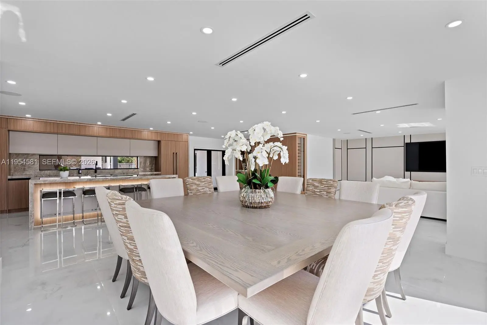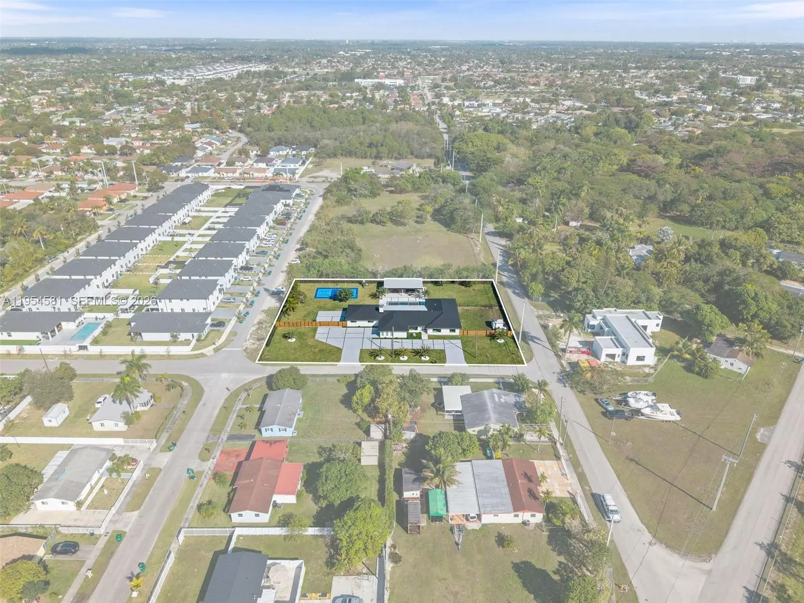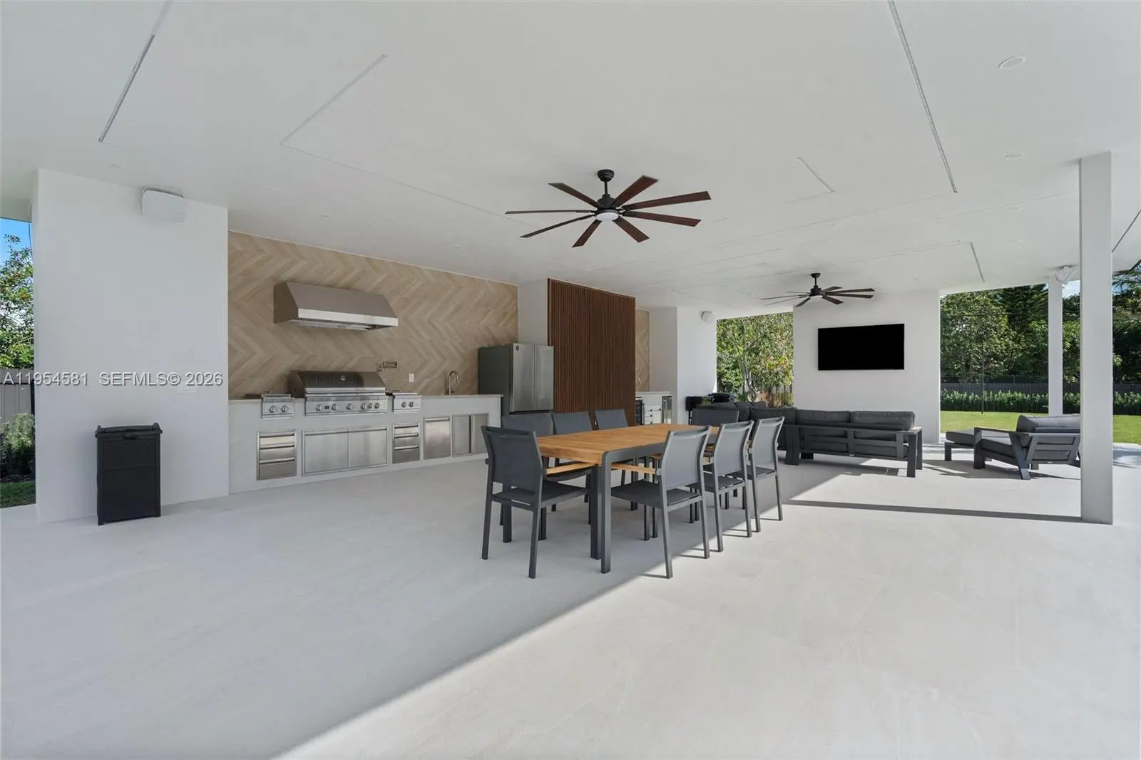 Welcome to an extraordinary residence where contemporary design meets unparalleled outdoor living — a sanctuary reimagined from top to bottom on an expansive corner lot. Fully remodeled with no detail spared, this home offers a rare blend of refined interiors and unmatched outdoor living, setting a new benchmark for luxury in the area. The home makes an immediate impression with all-new Low-E impact windows and doors, enhancing both aesthetics and energy efficiency while flooding the interior with natural light. Inside, expansive living areas are unified by 48×48 Spanish porcelain tile, creating a clean, contemporary canvas throughout. The heart of the home is a designer kitchen and living space finished with Taj Mahal quartzite countertops, offering timeless elegance, durability, and visual warmth. Every space has been thoughtfully reimagined to maximize flow, comfort, and functionality. Designed for elevated entertaining and everyday enjoyment, the property opens to a private outdoor oasis that includes a heated smart pool and jacuzzi with app-controlled functionality, a custom pickleball court with professional lighting, and an exterior cabana equipped with a Summerset BBQ and premium appliances delivering a true resort-style experience at home. Manicured landscaping is supported by a sprinkler system. Additional features include a 2-car garage, integrated whole-home audio system, and a modern camera security system.