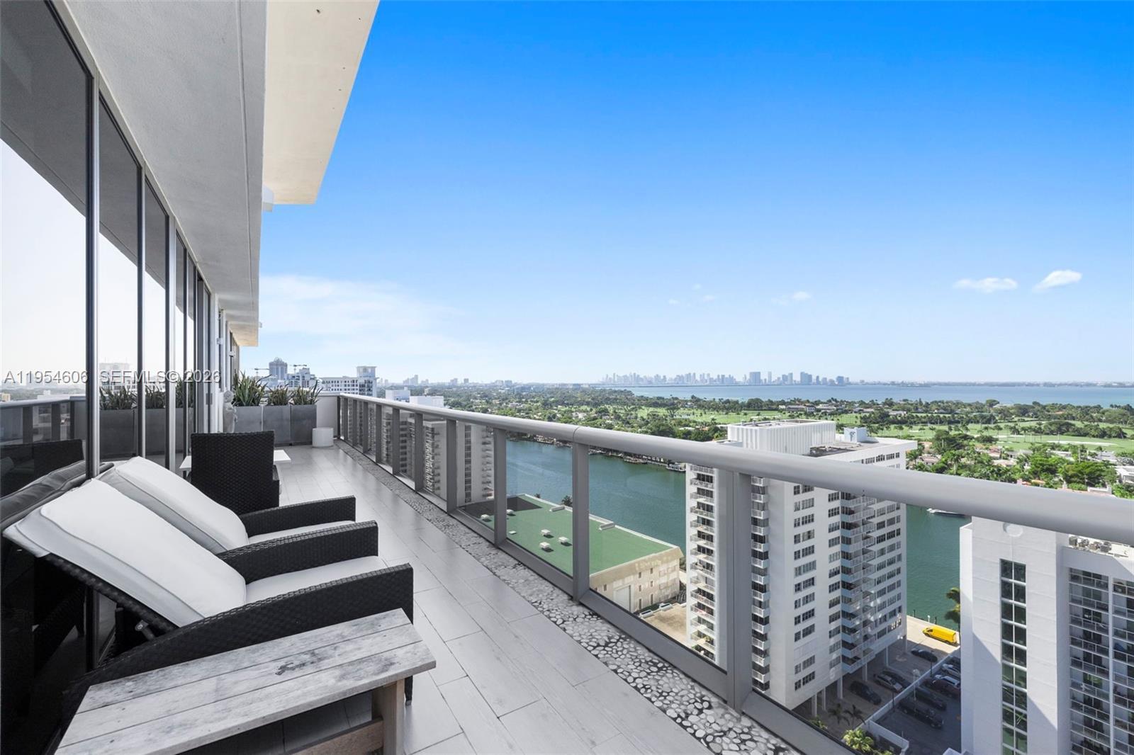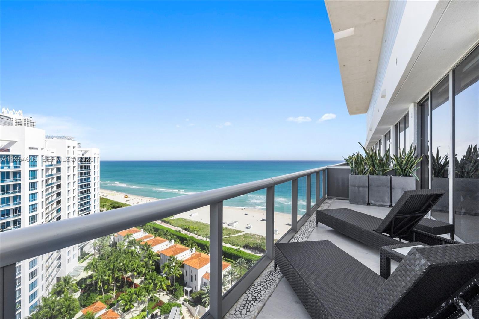 This stunning beachfront penthouse showcases exceptional design and craftsmanship with unobstructed views of the Ocean and LaGorce Country Club. The fully furnished Mid-Beach residence offers 1,323 interior square feet with one bedroom, two full bathrooms, and one half bathroom. An expansive 918-square-foot wraparound terrace is ideal for entertaining, sunbathing, and enjoying sunset views with the downtown Miami skyline as the backdrop. Refined finishes include solid-core oak doors and modern interiors throughout. Residents enjoy premium amenities including a state-of-the-art fitness center, infinity pool, spa, library, tea lounge, and full concierge and doorman services. The building is just steps from the beach. The residence is available from May 1, 2026 through October 31, 2026.