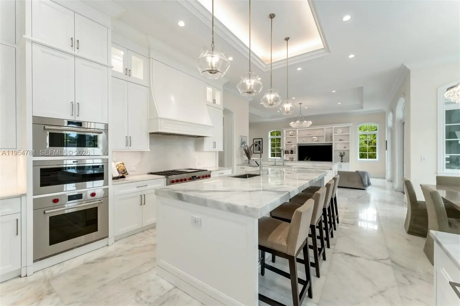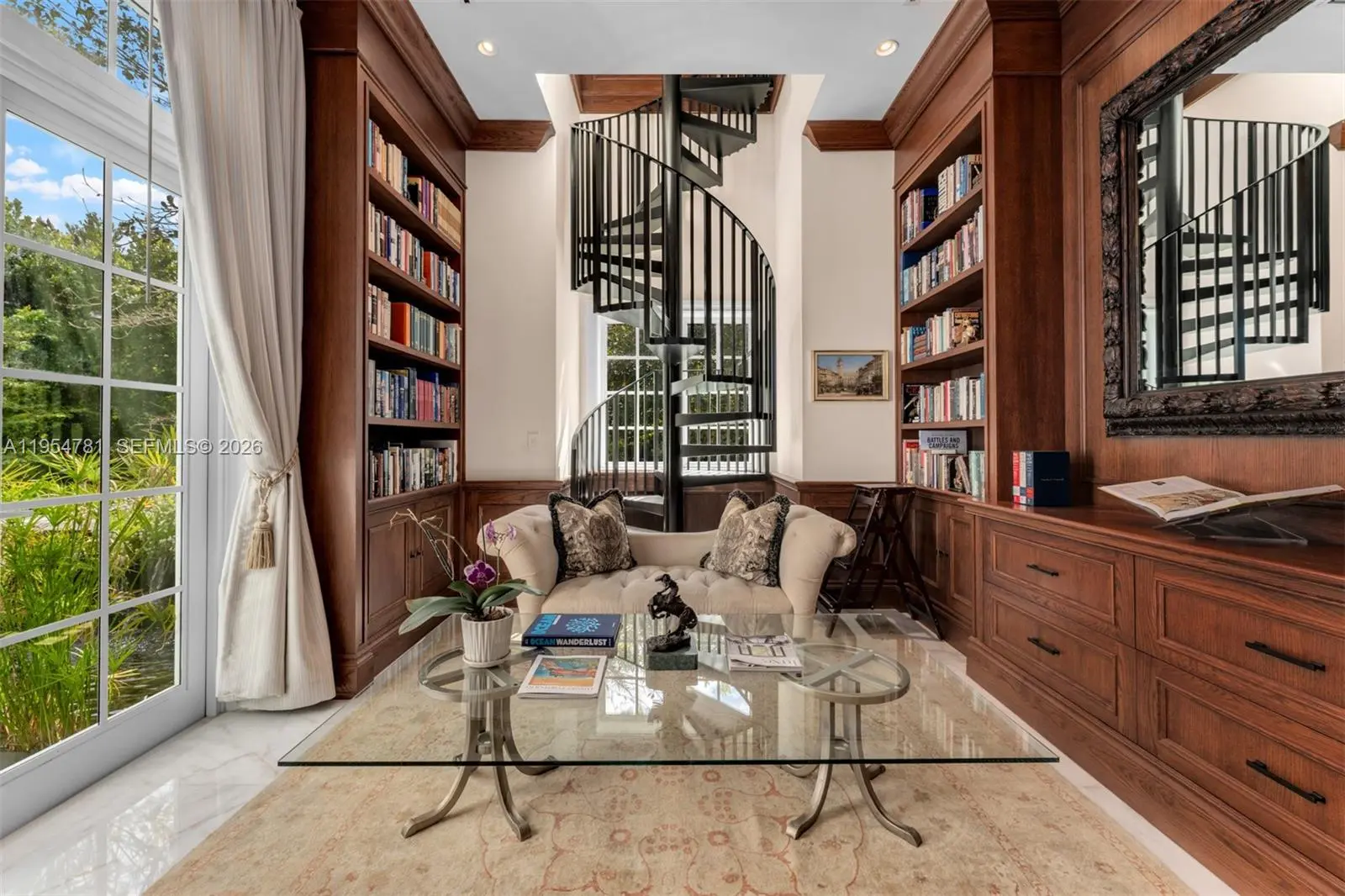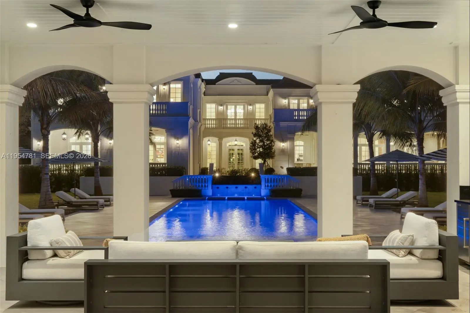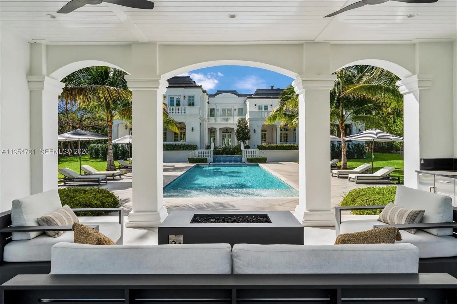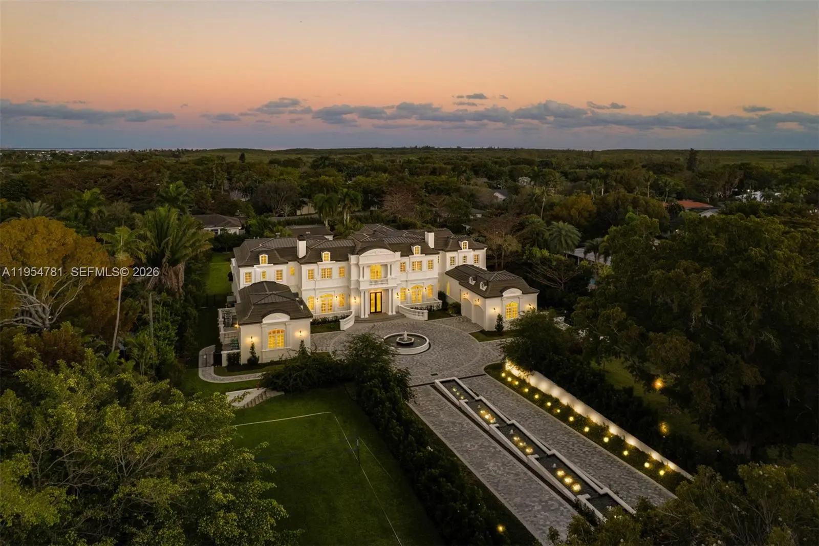 Set on nearly 2 acres and approached by a grand circular driveway with a dramatic 90+ ft cascading fountain, Château du Soleil showcases award-winning architecture by Ramon Pacheco. Inspired by classic French château design, the estate blends timeless elegance with modern luxury, featuring soaring ceilings, fireplaces, dormer windows, and exquisite wall detailing. A striking two-story library anchors the home, complemented by a private theater, gym, elevator, staff quarters, and three staircases. The primary suite offers expansive walk-in closets and a private terrace, while additional suites enjoy balcony views. Resort-style grounds feature lush lawns, koi pond, covered terraces, summer kitchen, gazebo with fire pit, cabana bath, and room for a future sports court near elite Pinecrest schools.