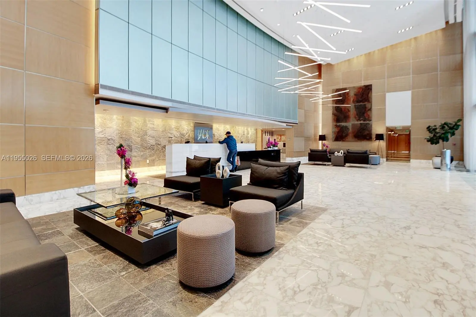 The Jade Brickell offers a lifestyle of exclusively and convenience perfectly located near great dining, shopping and entertainment. This is a stunning 4 bd, 4 1/2 bath condo perched high on the 42 floor boasting pure elegance with unparalleled Bay and Ocean views, immercing in serenity and style. Your private elevator opens directly into your foyer with an expansive living room for entertaining. Chef's kitchen, renovated with top-of-the-line appliances. Sub Zero Refrigerator/Freezer plus cold drawers. Wolf induction stovetop, oven, steam and convection ovens, microwave, Miele coffee makder, Bosche dishwasher, insta hot water dispenser and wine cooler, 2 a/c's (2024). A luxurious primary suite, plus 3 additional bedrooms, each with private baths. Control 4 Smart Home-temperature, sound, lighting and shades.