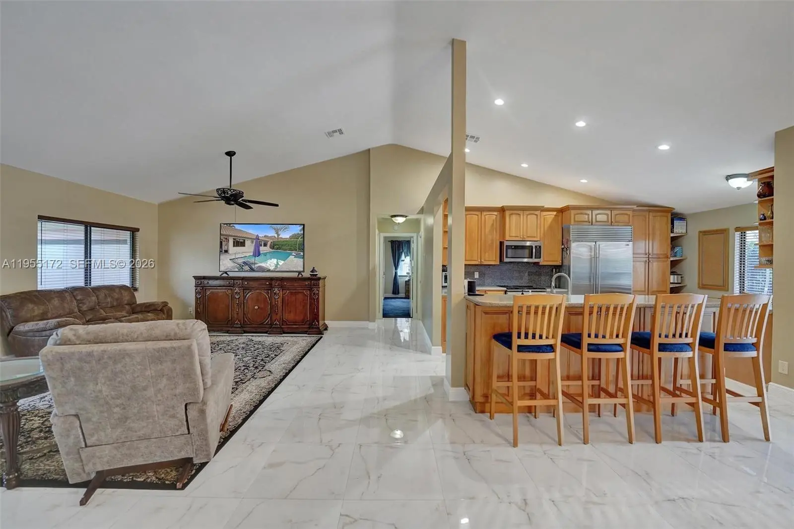 Welcome to this beautifully maintained corner lot featuring a 4-bedroom, 2-bath single-story pool home in the highly desirable Forest Ridge community of Davie. Featuring a split floor plan and open, inviting living spaces, this home offers the perfect balance of privacy and functionality for everyday living and entertaining. The remodeled kitchen is a standout with a brand-new 48” refrigerator, separate KitchenAid ice maker, and updated finishes that flow seamlessly into the freshly painted interior. Both bathrooms have been tastefully renovated, creating a bright, move-in-ready atmosphere. Major upgrades include A/C (2024), water heater (2026), impact windows and doors (2020), and roof (2009) — giving buyers peace of mind. Step outside to your private backyard retreat featuring a heated saltwater pool and spa (2021) with marble decking, new navigator, salt cell, and filters. The beautiful corner lot is enhanced with fresh landscaping, a black aluminum fence (2021), and 9-foot clusia hedges exceptional privacy. Forest Ridge offers low HOA fees, no HOA approval process, and outstanding amenities including a community pool, pickleball, tennis, and basketball courts. Ideally located near Bamford Sports Complex, Davie Multi-Purpose Center, and scenic trails leading into Tree Tops Park, this home provides endless recreation and outdoor enjoyment.