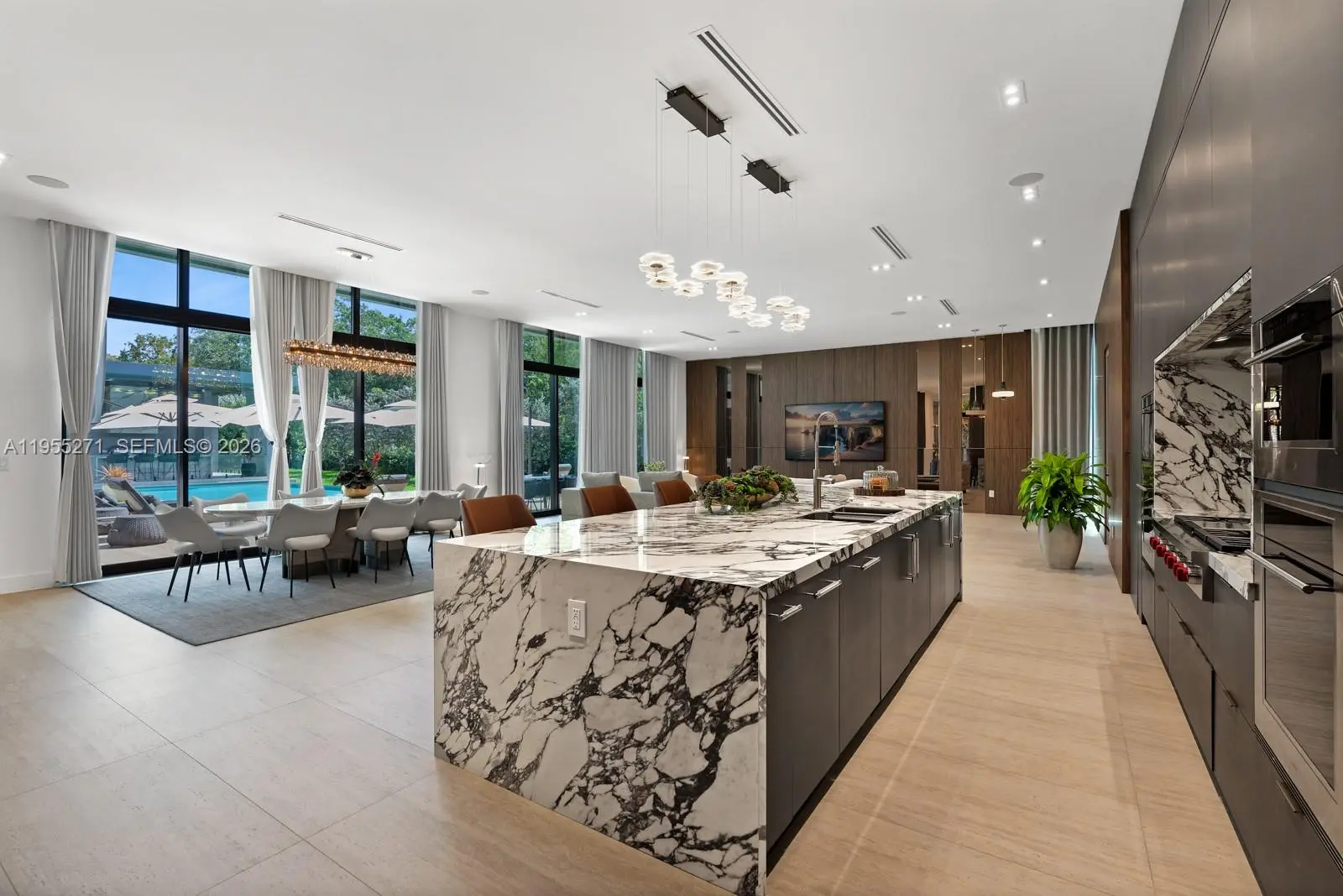 This unparalleled turnkey masterpiece in the heart of Pinecrest redefines luxury living. Boasting a pristine pool and expansive backyard, the estate is designed for ultimate comfort and effortless entertaining. The state-of-the-art open kitchen features custom built-ins and is complemented by a fully equipped back kitchen, ideal for seamless hosting. Additional highlights include staff quarters for privacy and convenience, elegant bar built-ins perfect for gatherings, a private gym, custom library, and an immersive movie theater. Every detail exudes sophistication—move in now and experience the pinnacle of refined living.