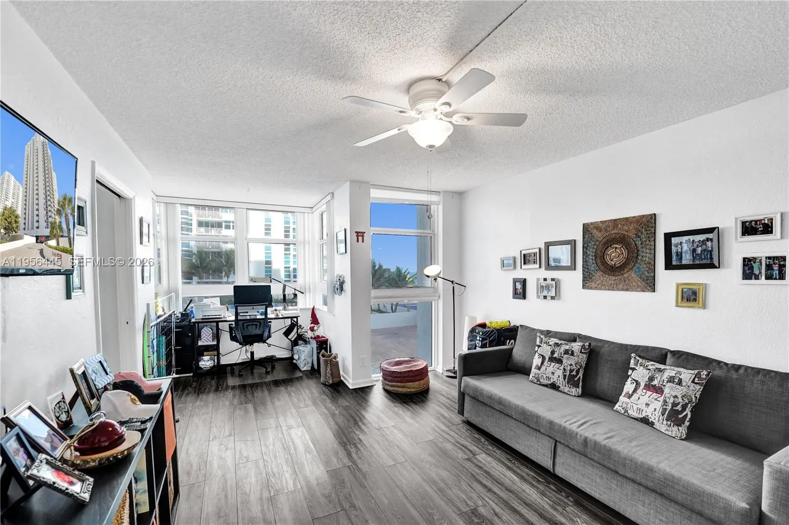 Step into this exquisite 2 bedroom, 2 bath beachfront residence offering 1,630 sq ft of living space and panoramic ocean views that greet you from the moment you enter. Floor-to-ceiling impact glass windows flood the home with natural light while providing peace of mind and effortless indoor-outdoor living. The expansive open living and dining area flows seamlessly onto an oversized private balcony, perfect for enjoying sunrise coffees, sea breezes, or evening relaxation with ocean vistas as your backdrop. Retreat to the spacious primary suite, complete with a large walk-in closet and a beautifully updated marble-accented ensuite bathroom. The second bedroom, also showcasing ocean views, can double as an impressive home office or guest suite. Throughout the unit, you'll find tile and woodgrain laminate flooring and thoughtful design touches that elevate the living experience. An additional separate storage unit is included. Resort-style amenities: heated pool, spa, tennis, pickleball, sauna, fitness center, covered parking, BBQ area, and a spectacular Sky Lounge with panoramic views and kitchen/entertainment space. Building features impact glass, secure entry, and well-maintained common areas. Prime oceanfront location with direct ocean access! Tenant occupied until August.