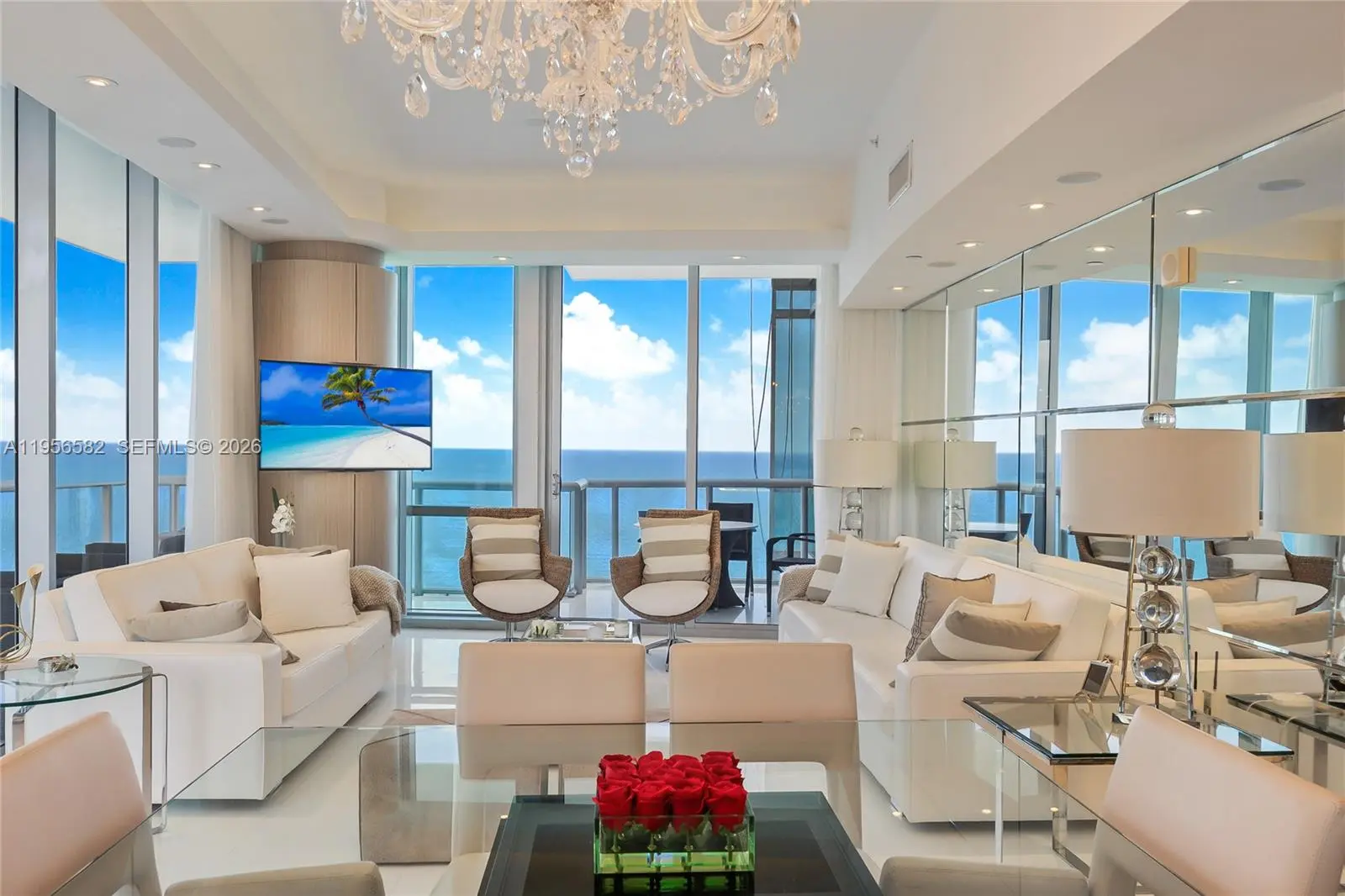 Stunning corner residence at Jade Ocean, the iconic Sunny Isles Beach tower designed by renowned architect Carlos Ott. This sophisticated 3-bedroom, 3.5-bath home spans 1,956 square feet and offers sweeping, unobstructed views of the Atlantic Ocean, Intracoastal, and city skyline. The residence has been featured in DECOR Magazine and professionally curated by Infinity Design’s Ronny Constansi, showcasing refined interiors and thoughtful detailing throughout. Highlights include a private elevator entry, floor-to-ceiling impact glass, marble flooring, smart home technology, surround sound, automated window treatments, and premium appliances. Offered furnished or unfurnished. Jade Ocean delivers a true five-star lifestyle with resort-style amenities, including dual infinity-edge pools, a state-of-the-art fitness center, full-service spa with relaxation lounge, private cinema, children’s playroom, 24-hour concierge, valet services, and an exclusive beach club. An exceptional opportunity to experience modern coastal luxury at its finest.