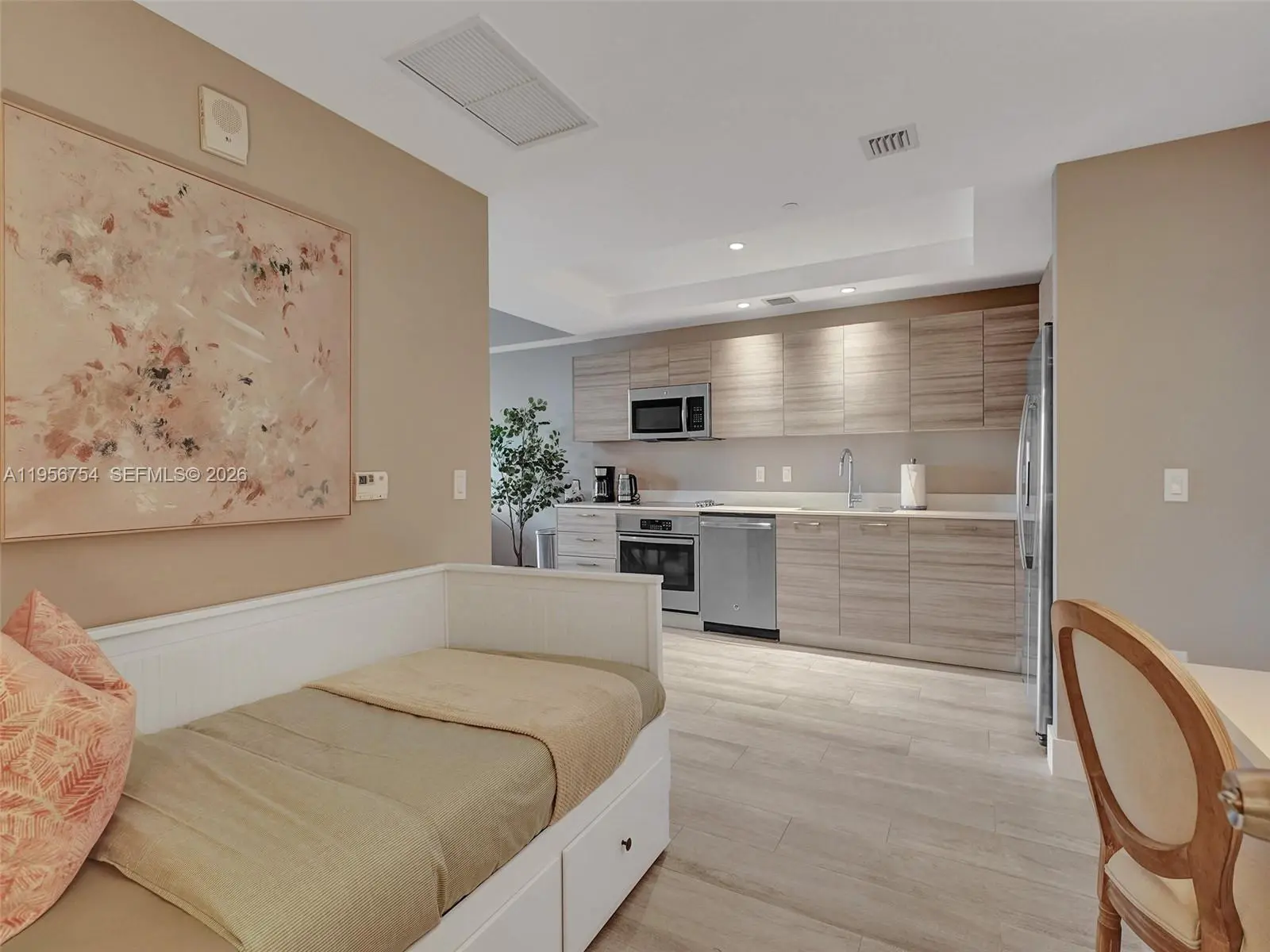 This 1 bdrm 1 bath plus DEN is rich with remarkable features. The efficient galley kitchen features ITALKRAFT cabinetry and GE appliances. Beautiful waterproof luxury vinyl plank flooring & custom window treatments provide a stately feel throughout. The neutral color palette of this GORGEOUS condo will accommodate any style of décor. The tranquil bedroom includes two walk-in closets & a private entrance into the bathroom. Enjoy a beautiful view of the Edgewater Skyline from the balcony. Hyde Midtown has 5-star amenities that truly make you feel like you are always on vacation. PRIME LOCATION steps away from the Shops & Restaurants of Midtown, minutes away from, Wynwood, Design District & much more.