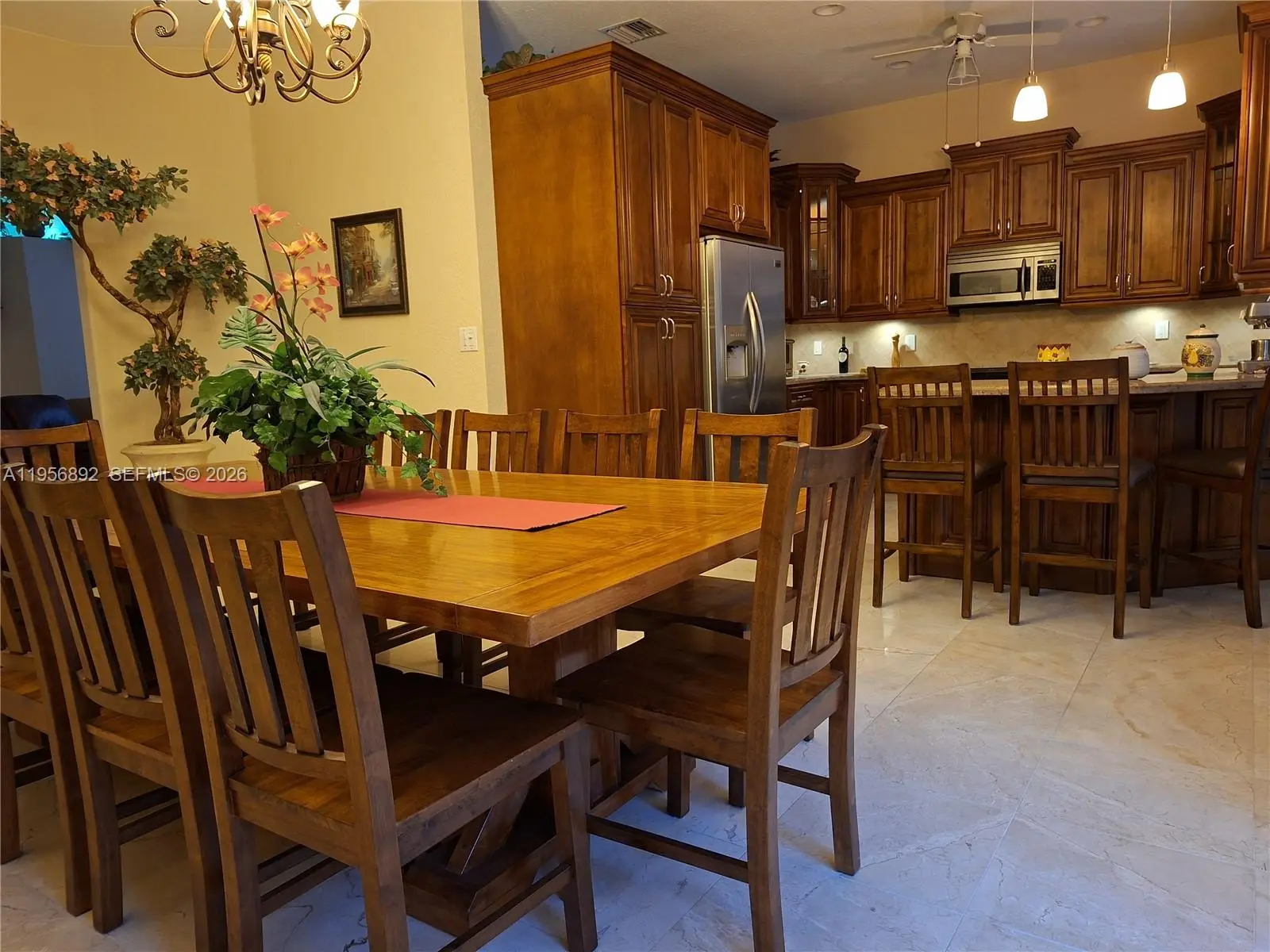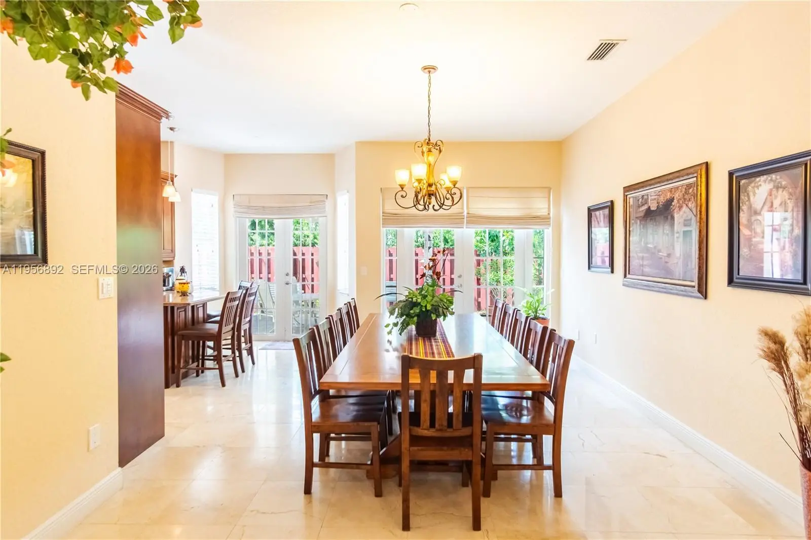 Charming one-story home in the highly desirable community of Doral Sands, a gated community with very low HOA. High-quality upgrades throughout with marble floors, wood cabinets, granite & marble tops, stainless. Roof tiles were replaced in 2021. Patio with beautiful ornamentals and fruit trees is ideal for entertainment: concrete pavers, brick BBQ, fountain, covered roof with fan, swings and lights. Doral Park Country Club offers restaurant, sport bar, gym, sauna, pool, jacuzzi, tennis & pickleball courts, and a beautiful children's playground. Doral, considered a premier location with family-friendly neighborhoods and luxury living, is often ranked for its high quality of life, top-rated schools, booming business environment, parks, diverse dining, and entertainment options.