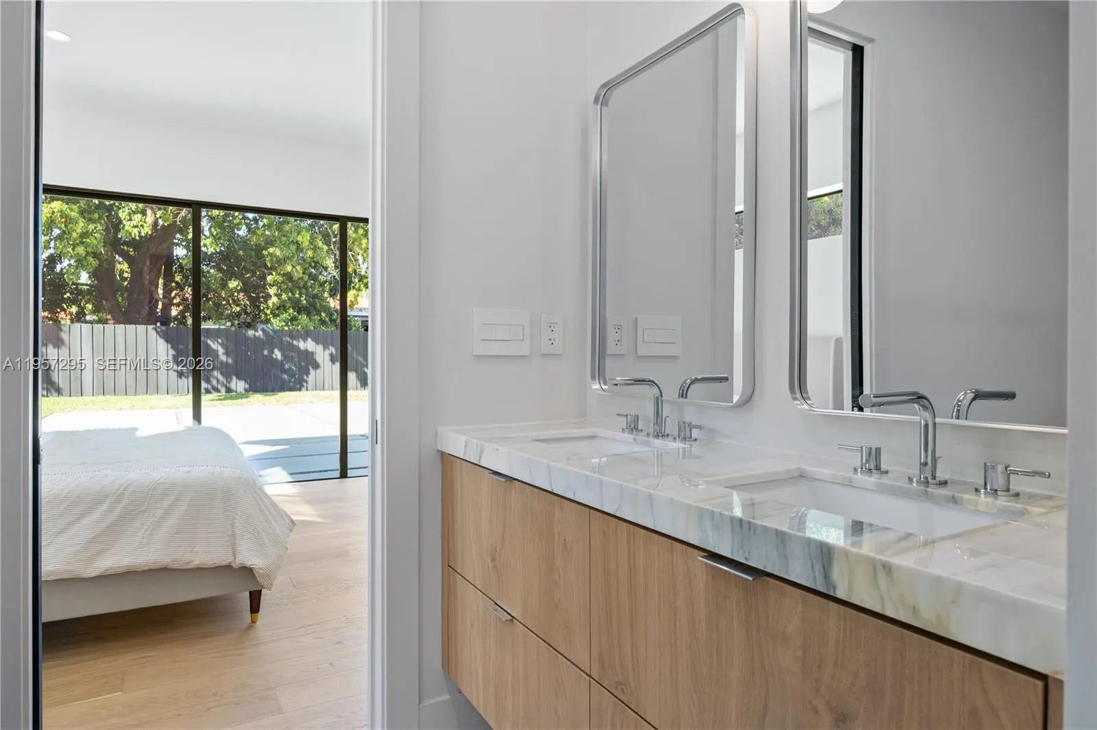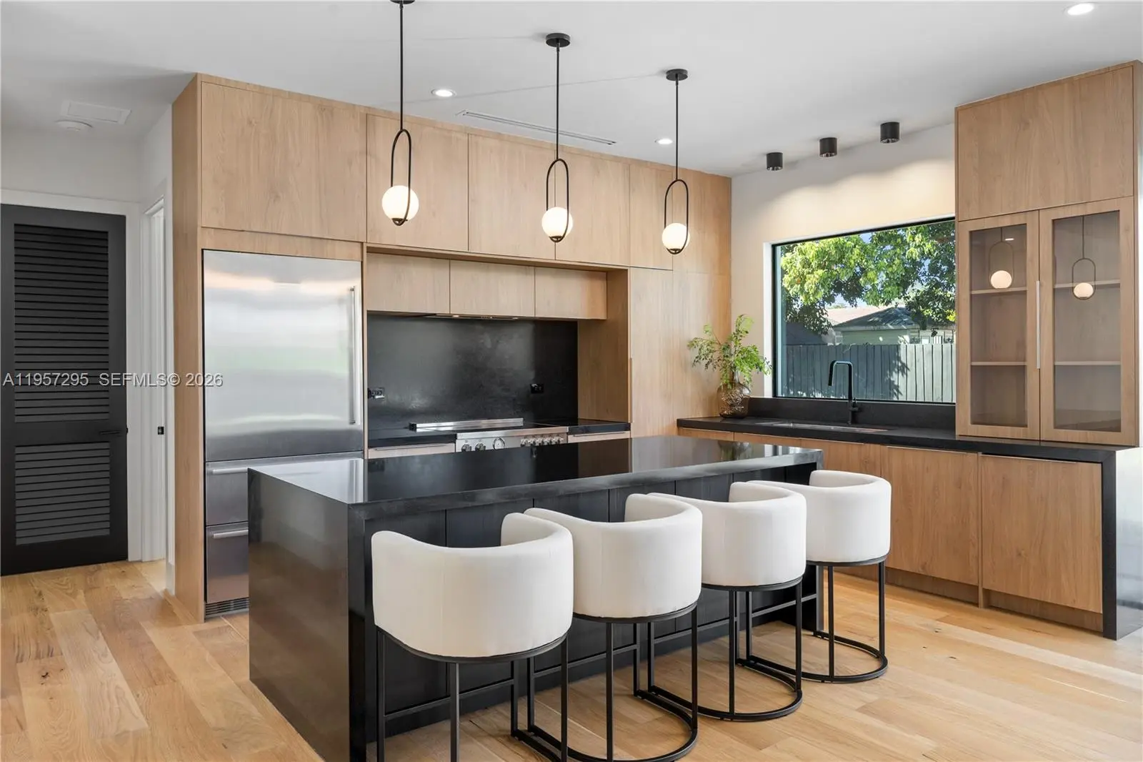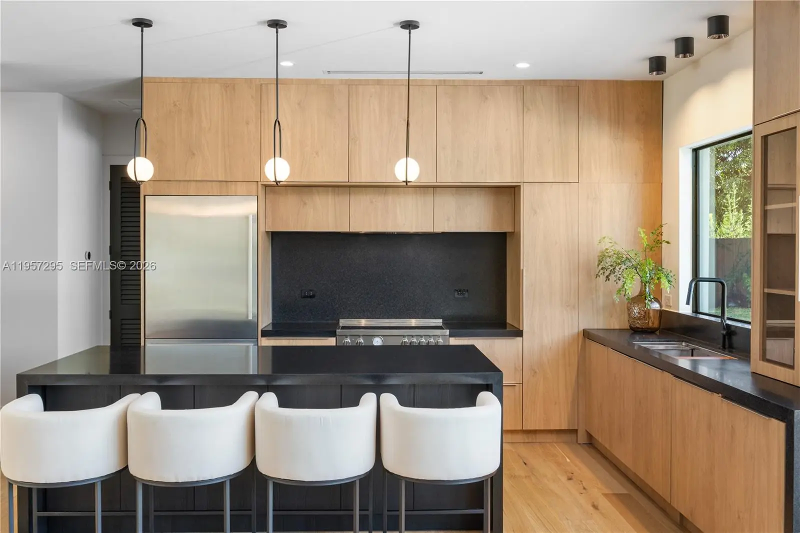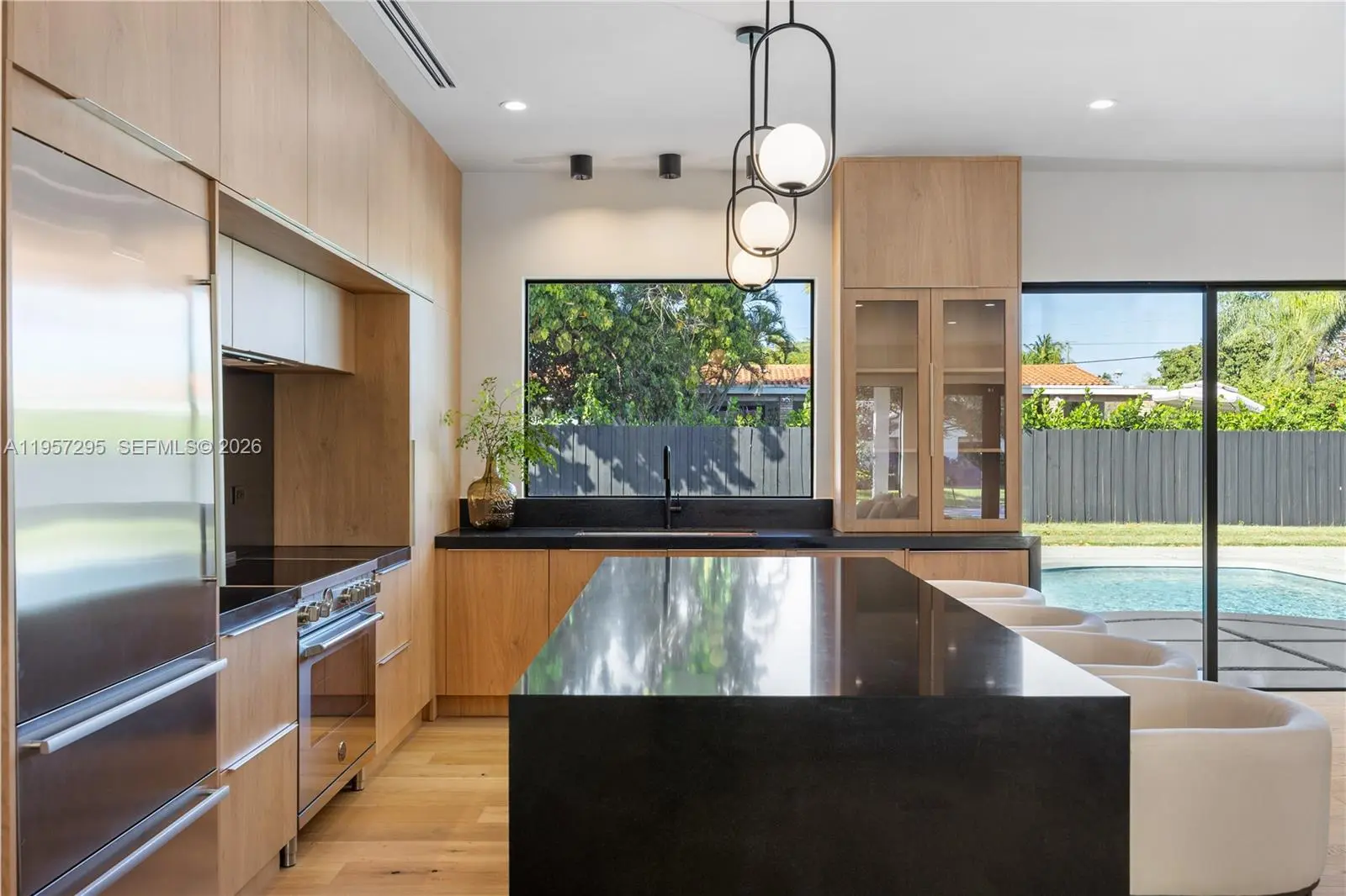 Be the first to live in this recently completed, luxurious Miami home. Crafted by the expertise of leading interior designers; This 5 bedroom / 4 bathroom home encompasses 2825 total sq.ft. on a 15,600 sq.ft. lot. Upon entering, you are greeted with a spacious open floor-plan featuring 10-ft ceilings, white-oak hardwood flooring, and a European kitchen with custom cabinetry & natural granite countertops. The master suite offers a large walk-in closet and spa-inspired bathroom with dual showers and soaking tub. All bathrooms feature custom floating vanities with marble countertops, and Grohe / Hansgrohe shower trims and fixtures. This beautiful Miami home also includes controllable / dimmable lighting throughout, dual A/C & climate control, dual tankless water heaters, 2-car garage, sprinkler systems, and 8 ft tall impact-resistant windows and doors. Additionally, this home has brand new plumbing, HVAC, and electrical systems. Outside, the lush front / back yards feature a large 14 car driveway, and a saltwater-chlorinated swimming pool.