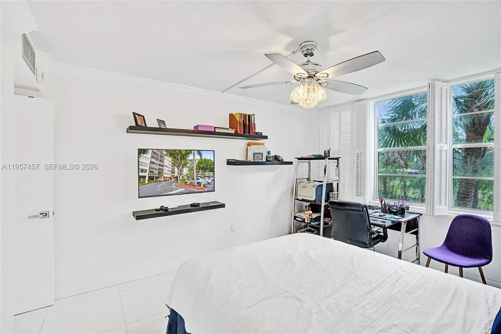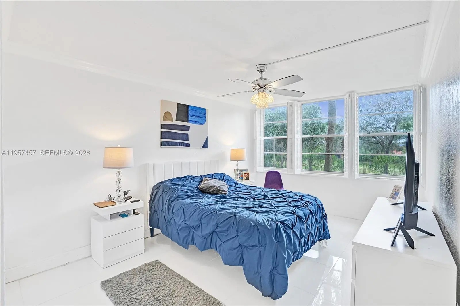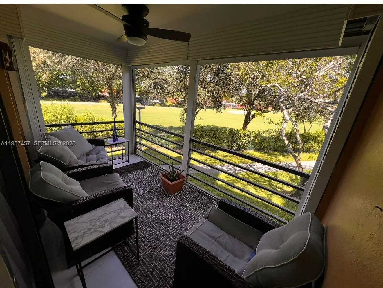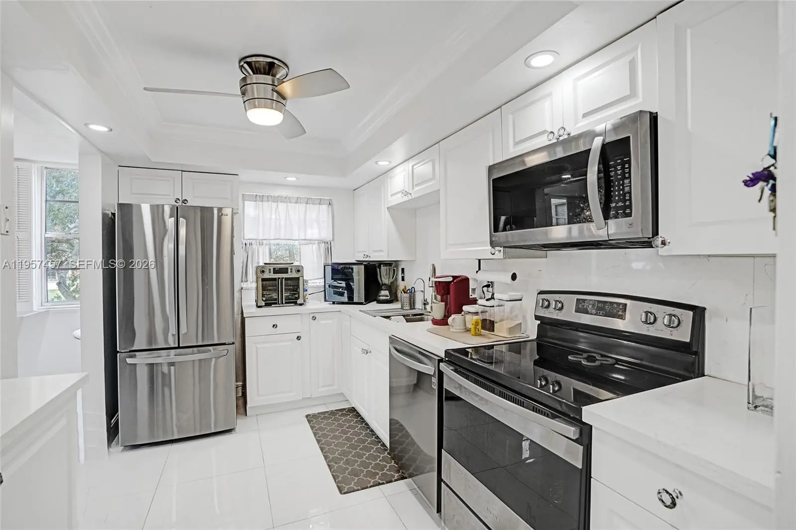 A stunning, fully renovated corner-unit condo featuring serene garden and golf course views from every window. This bright 2-bedroom, 2-bath residence is impeccably maintained and offers abundant closet space. The kitchen boasts quartz countertops and backsplash, along with brand-new stainless steel appliances. The spacious primary suite includes a generous walk-in closet. Enjoy the large screened balcony with breathtaking views. Tile flooring throughout enhances the light-filled interior. Residents enjoy exceptional amenities including golf course access, clubhouse, pools, tennis courts, walking and biking paths, fitness classes, sauna, game rooms, free shuttle service, and security patrol. Ideally located near hospitals, shopping, dining, and supermarkets. HOA covers internet, cable, water, and trash.