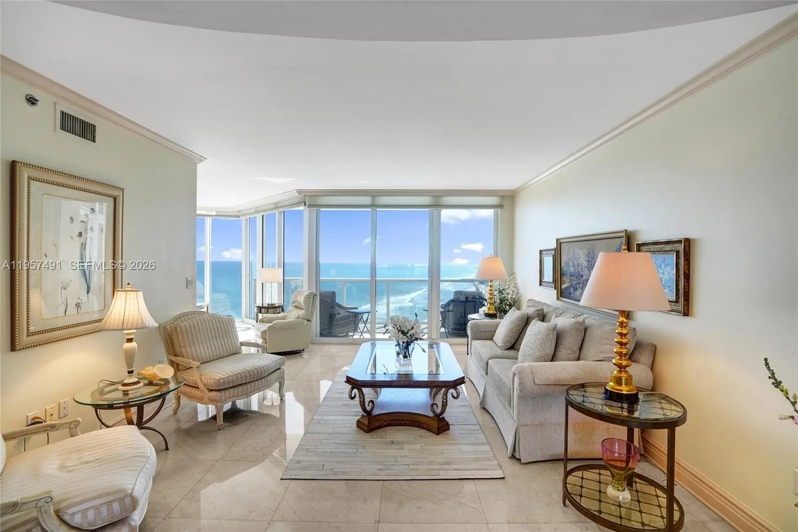 Luxurious living from this 2 bed 2 1/2 bath plus den unit with stunning ocean front and intra coastal views! Private elevator entry into foyer leads you to this open spacious floor plan with floor to ceiling windows, huge dining area, beautiful living room space, kitchen with breakfast area, 2 balconies, Marble through out, carpet in bedrooms, oversized jacuzzi tub in master a with double sinks, custom walk-in closets, and laundry room. Come enjoy beachfront resort living with beach chairs, towel service and cafe, here at Ocean One in beautiful Sunny isles!!