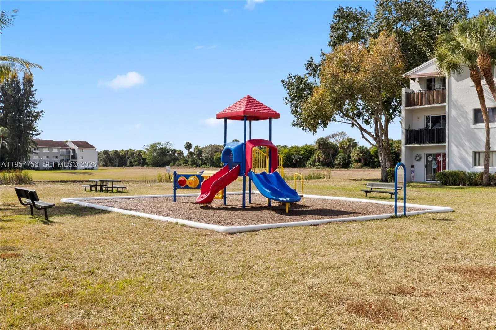 1/1 unit on the first floor, enjoy the convenience of easy access and a private, peaceful setting! Step right out onto your patio, which opens to a spacious green lawn—perfect for relaxing and enjoying the outdoors. This home is vacant and move-in ready! Community amenities includes a fitness center, laundry facilities and two playgrounds.