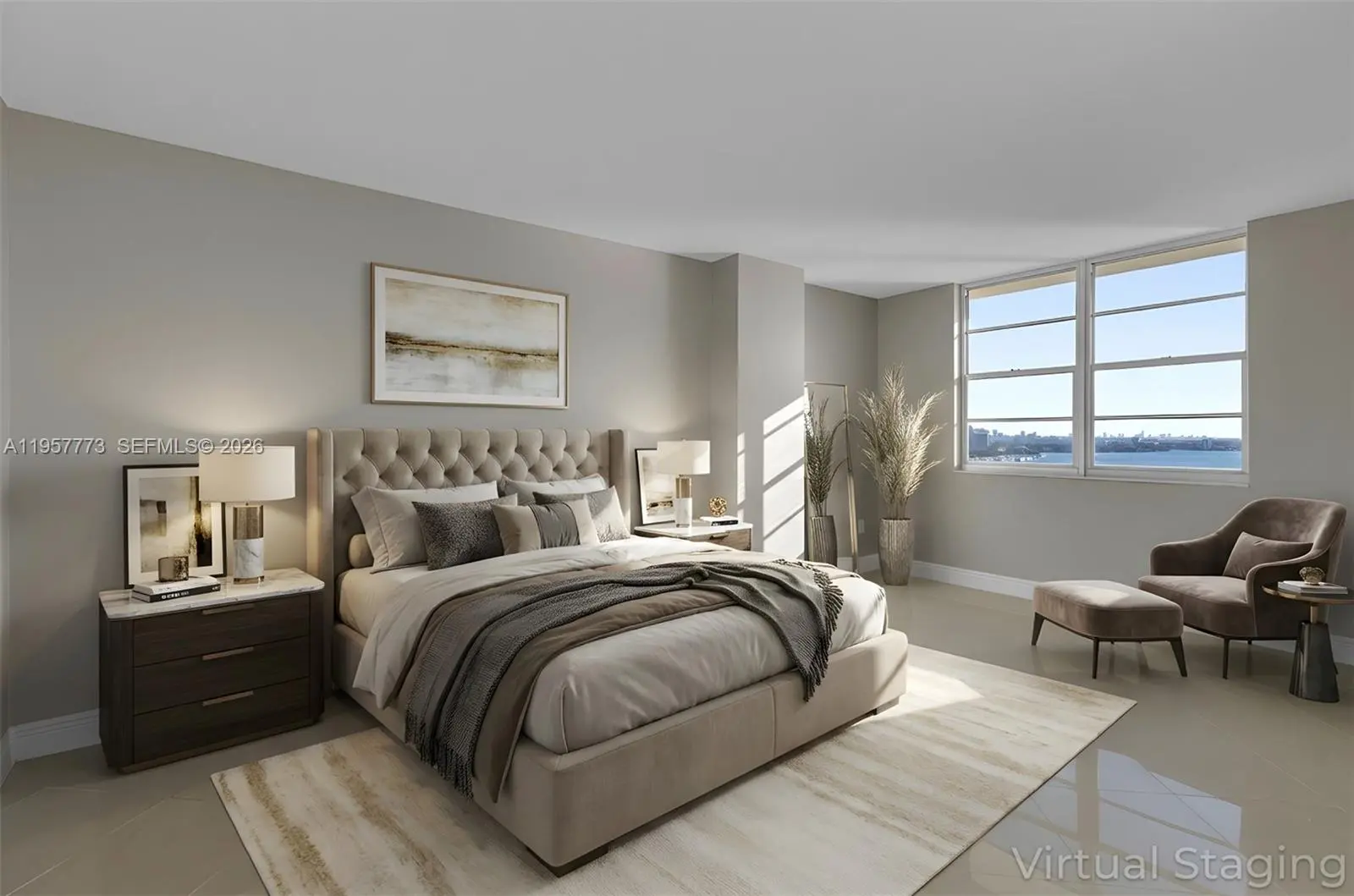 The most desirable residence in Arlen House, this exceptional corner home offers sweeping, unobstructed panoramic views and effortless showings. Originally designed as a true three-bedroom, two-and-a-half-bath residence, the layout was thoughtfully reimagined to create an expansive two-bedroom, two-and-a-half-bath home, highlighting an oversized primary suite and generous entertaining spaces. A spectacular wraparound balcony frames breathtaking vistas of Intracoastal Waterway, ocean, city skyline, and Oleta River State Park. With exposures from East, Southeast, South, Southwest, West, and Northwest, this residence captures both sunrise and sunset, an extraordinary and rare experience. Located directly across from the beach in Sunny Isles, with convenient access to a nearby marina, this home embodies the essence of refined coastal living. Arlen House offers a full suite of amenities including a resort-style pool, fitness center, on-site market, game room, and tennis courts. Assigned parking: #240 Storage: #2206 A truly remarkable offering, best experienced in person. Photos may include virtual staging for illustrative purposes.